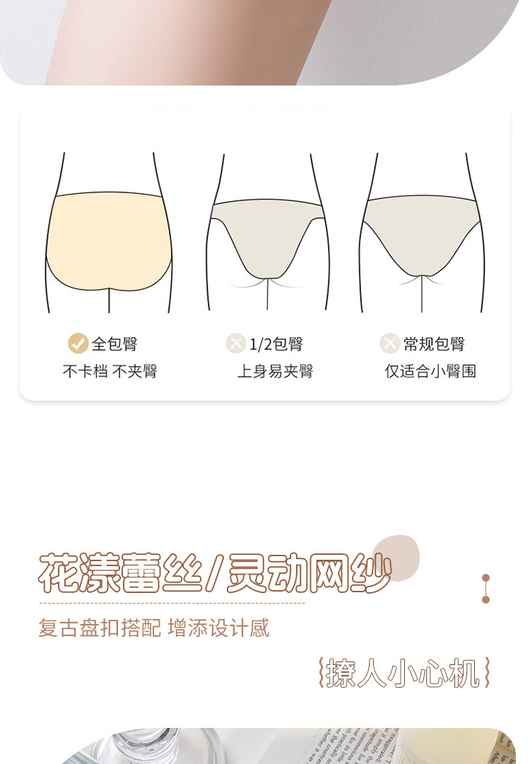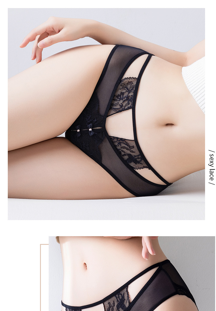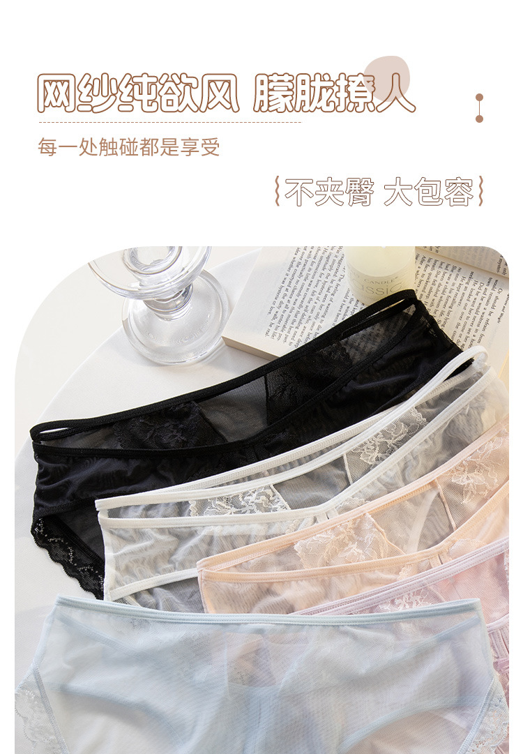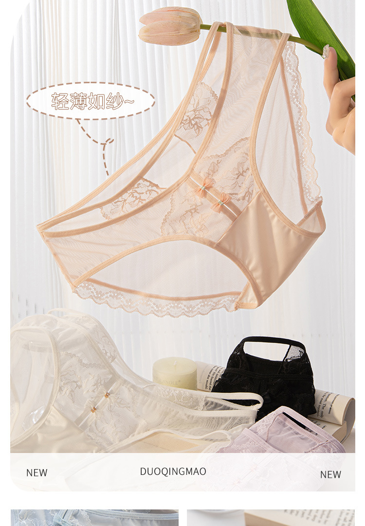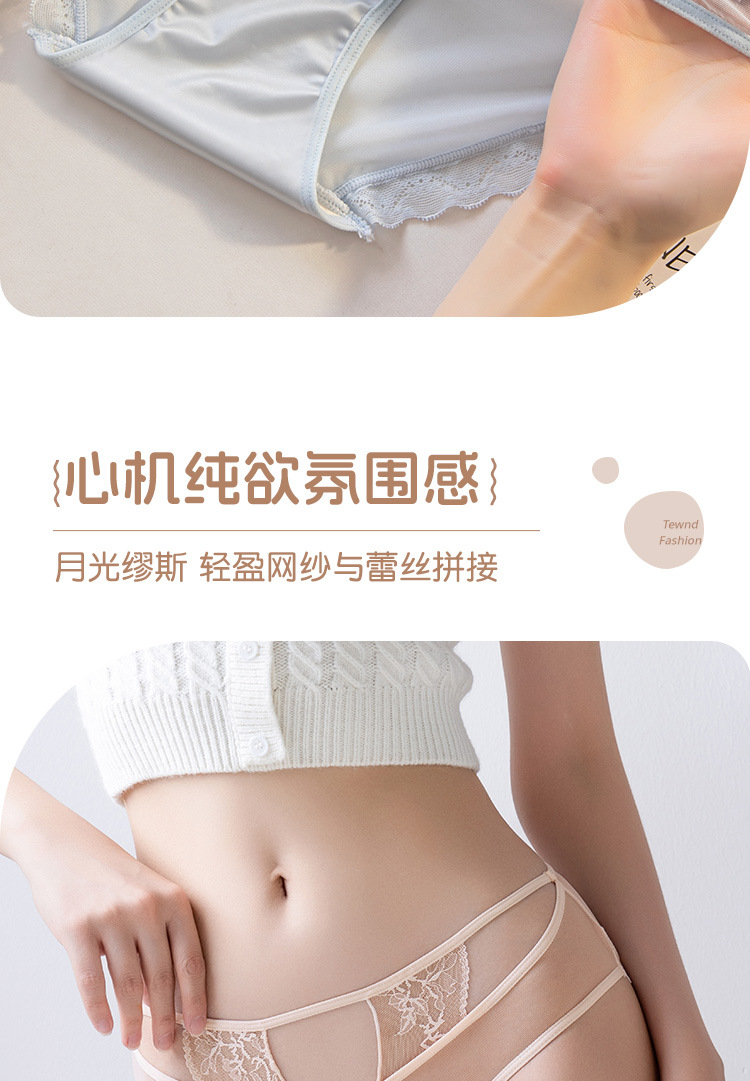 新款国风蕾丝女纯欲性感高弹舒适内裆中腰三角裤女拼接少女内裤
