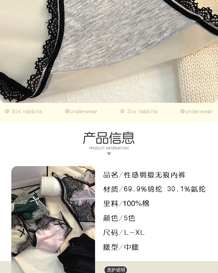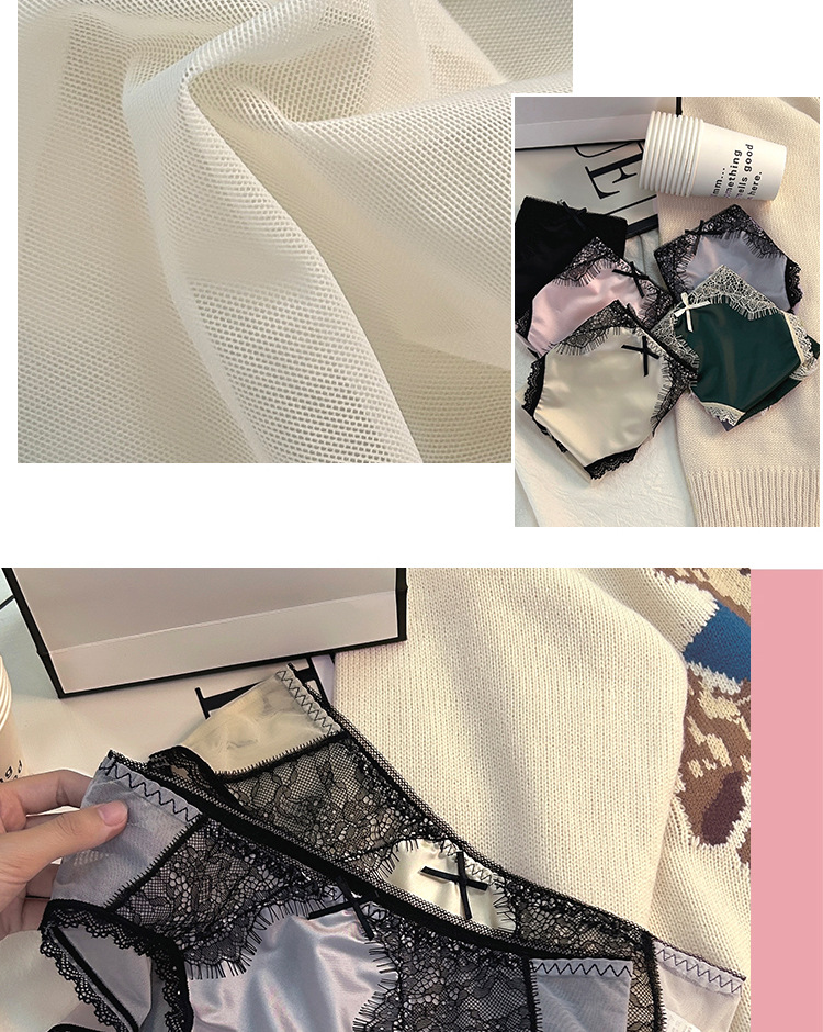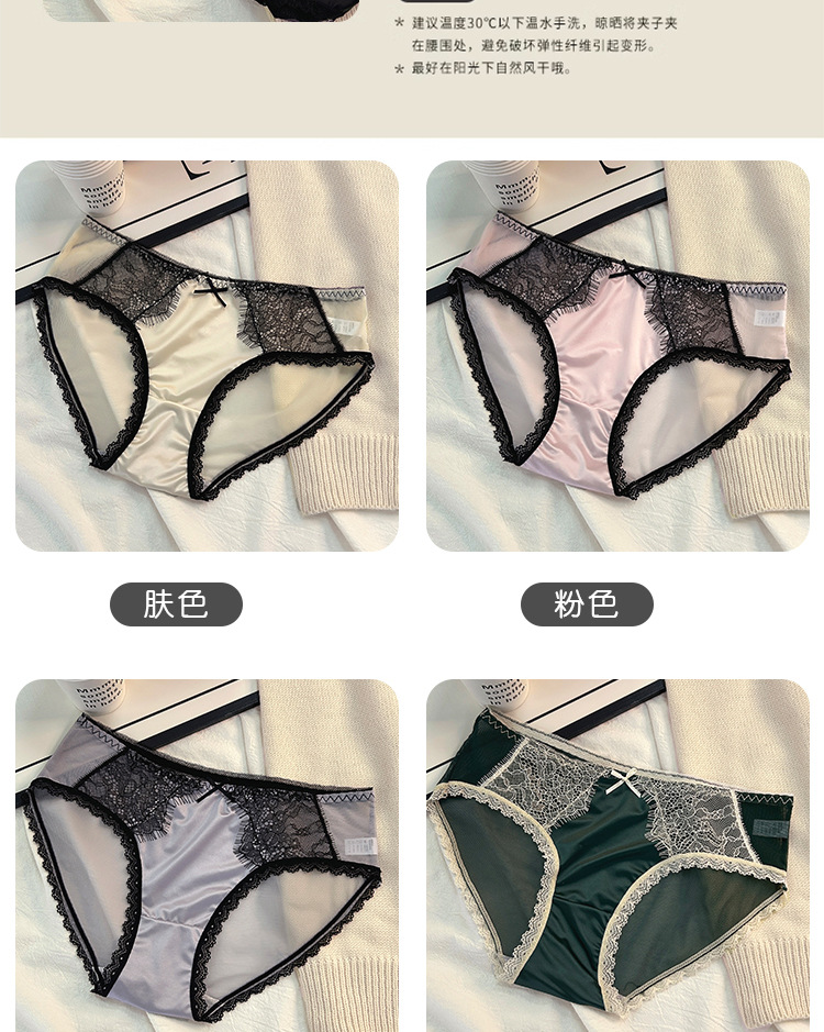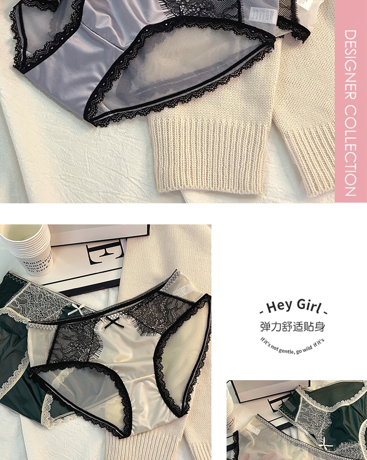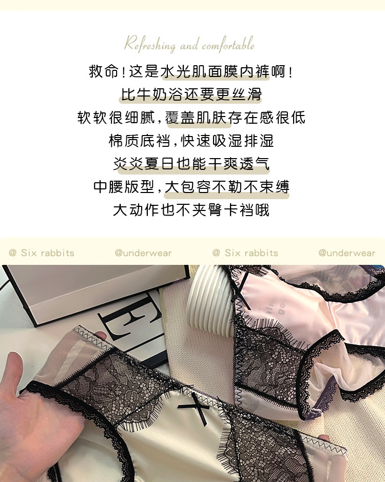 轻奢缎面女士中腰蕾丝内裤女纯欲风少女款纯棉全棉女式批发
