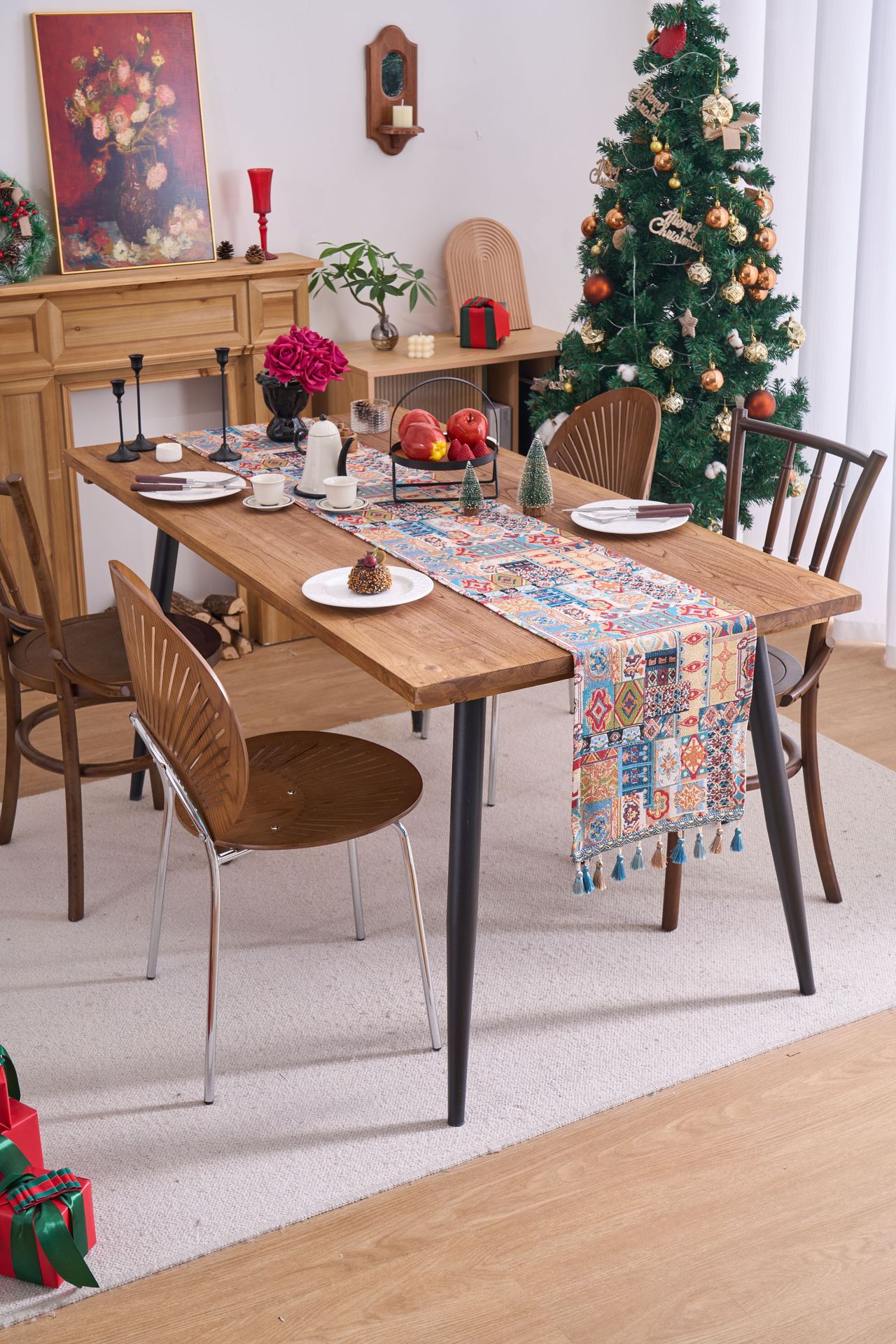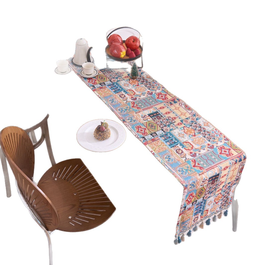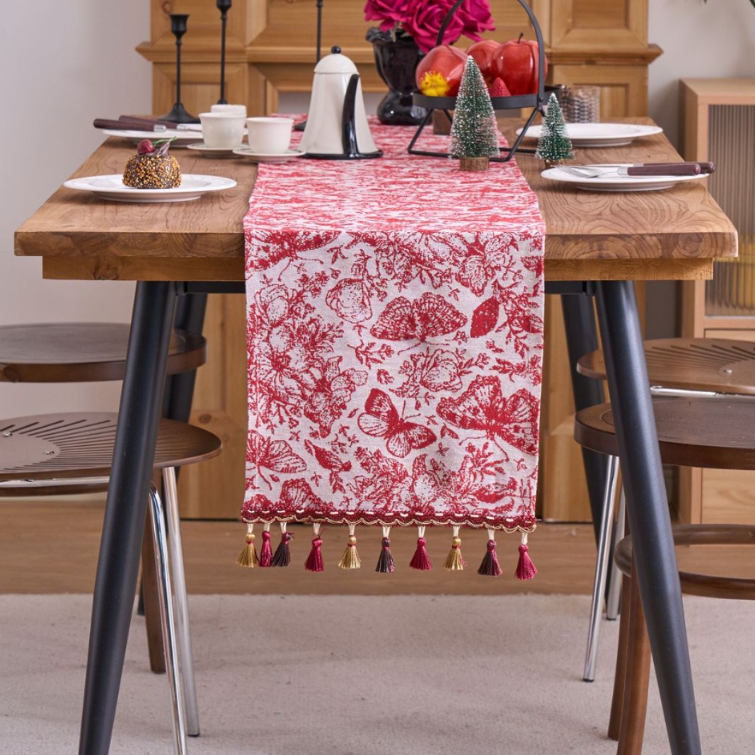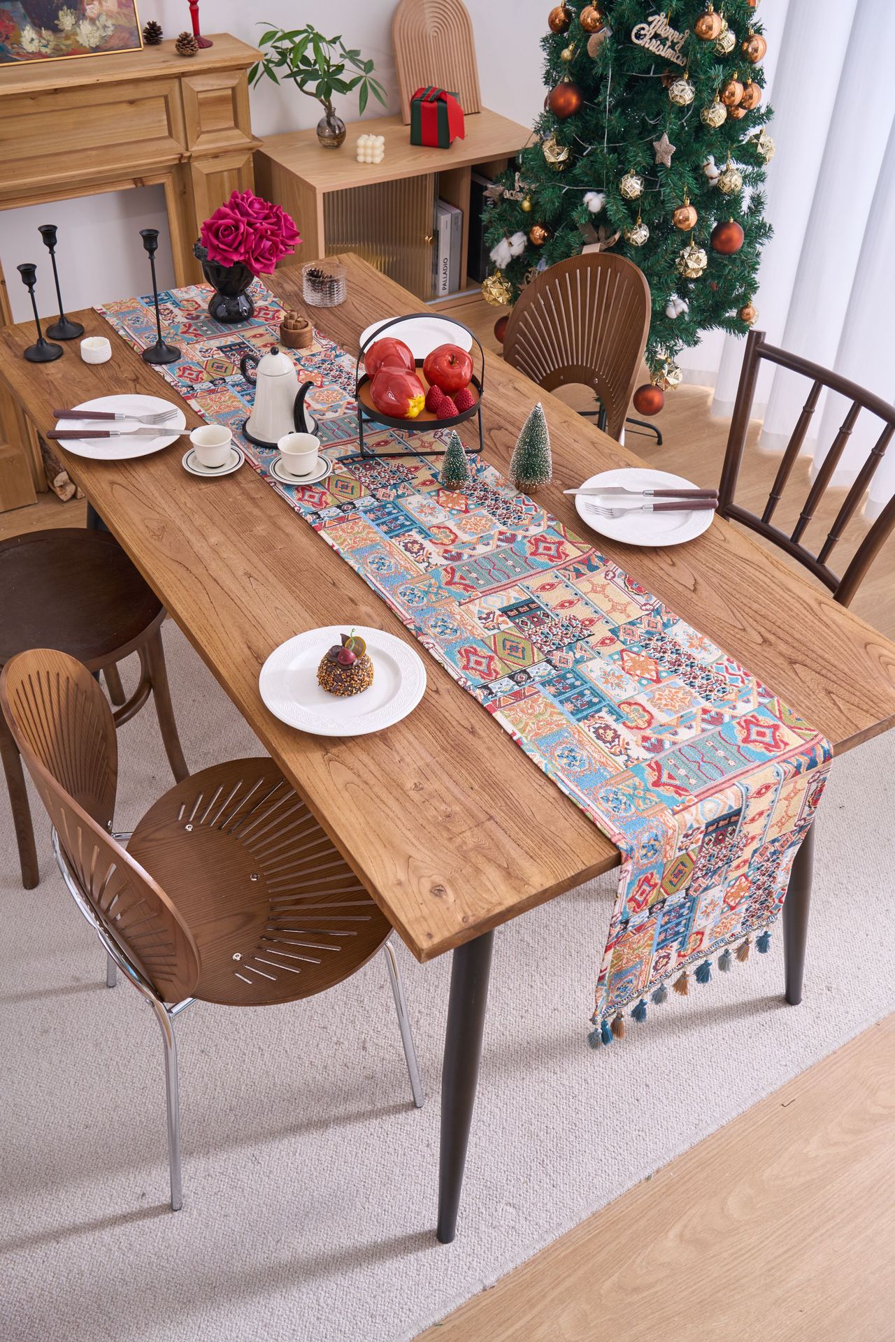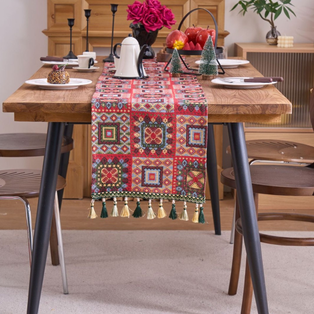 聚家新款北欧提花红色节日几何桌旗流苏茶旗餐旗长条工厂直供