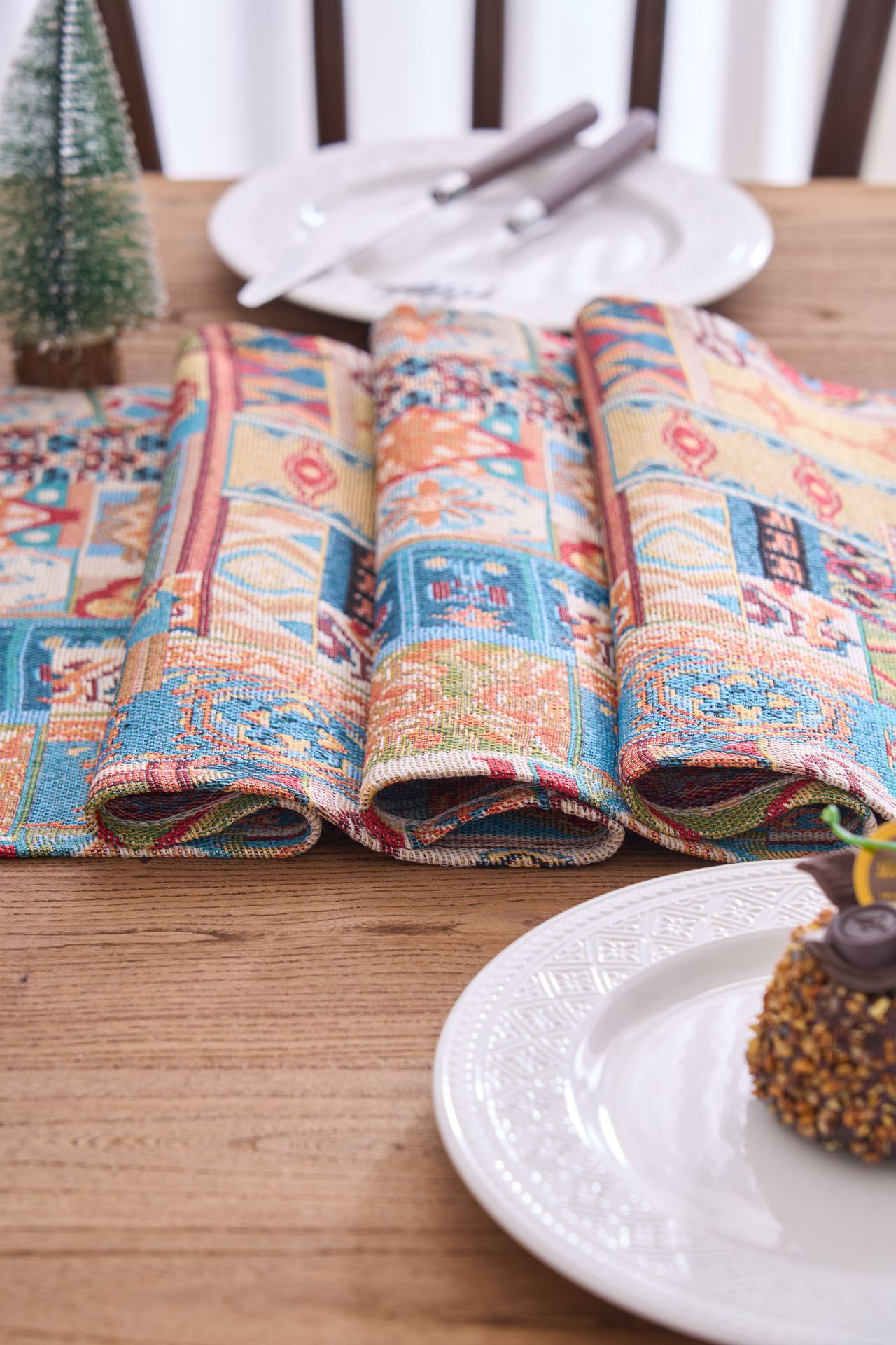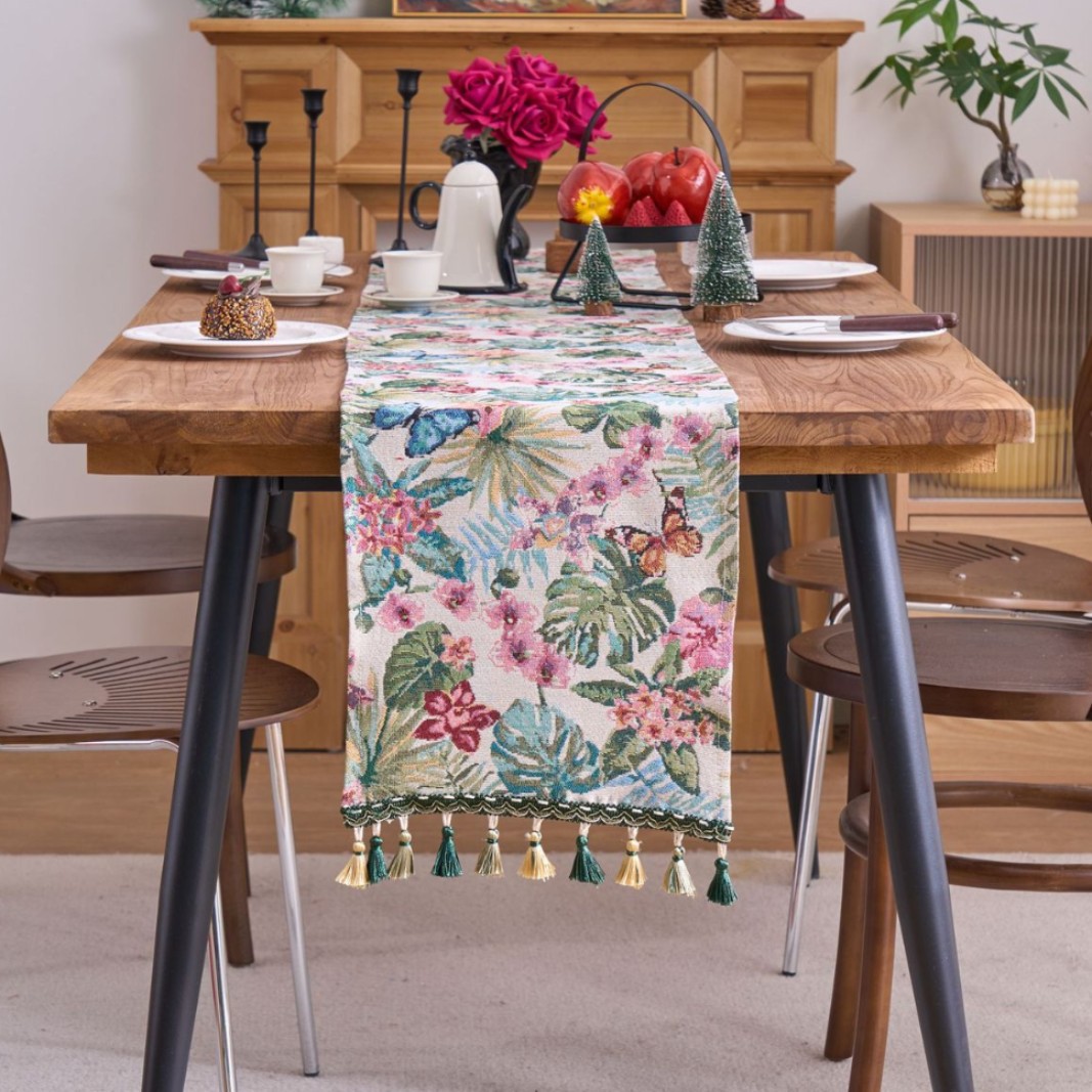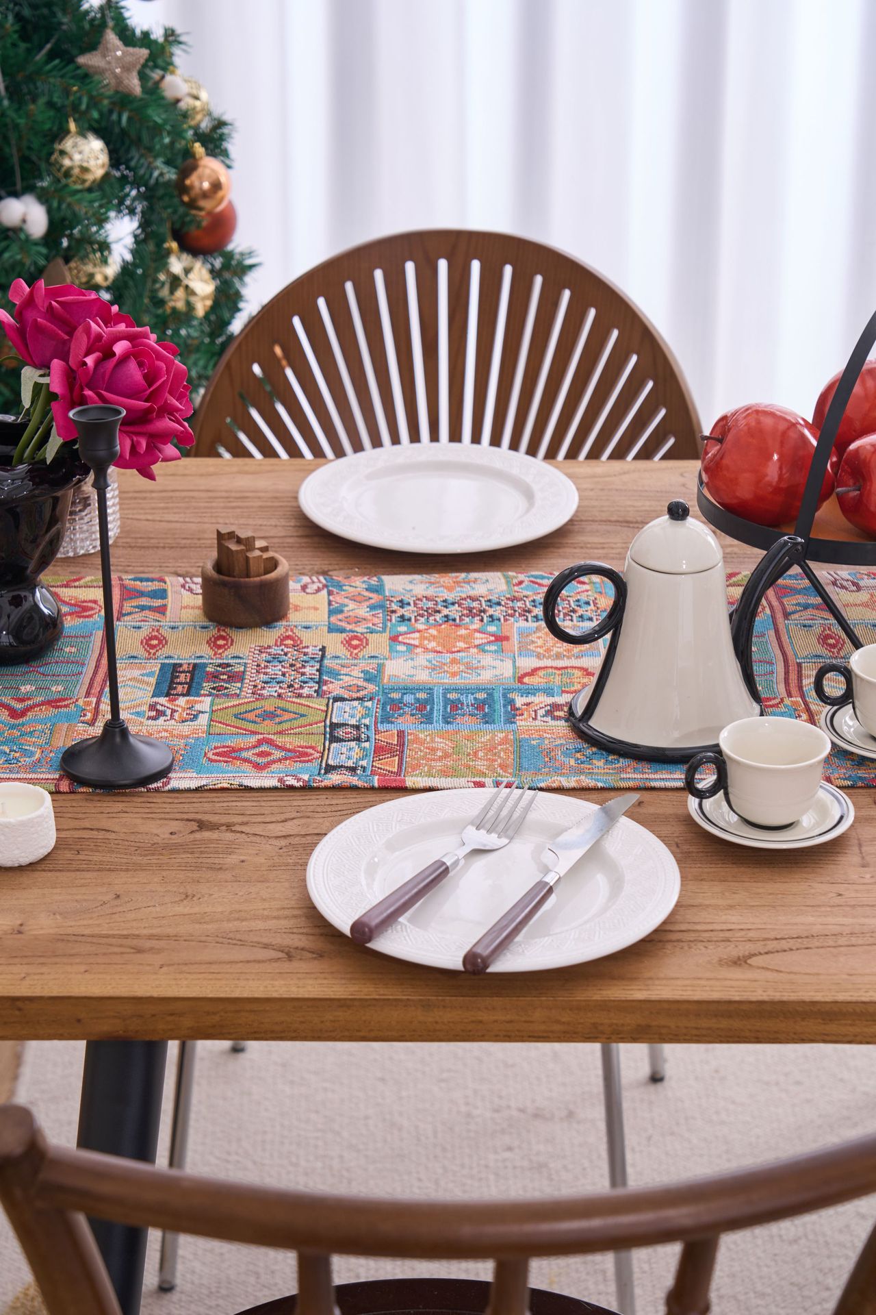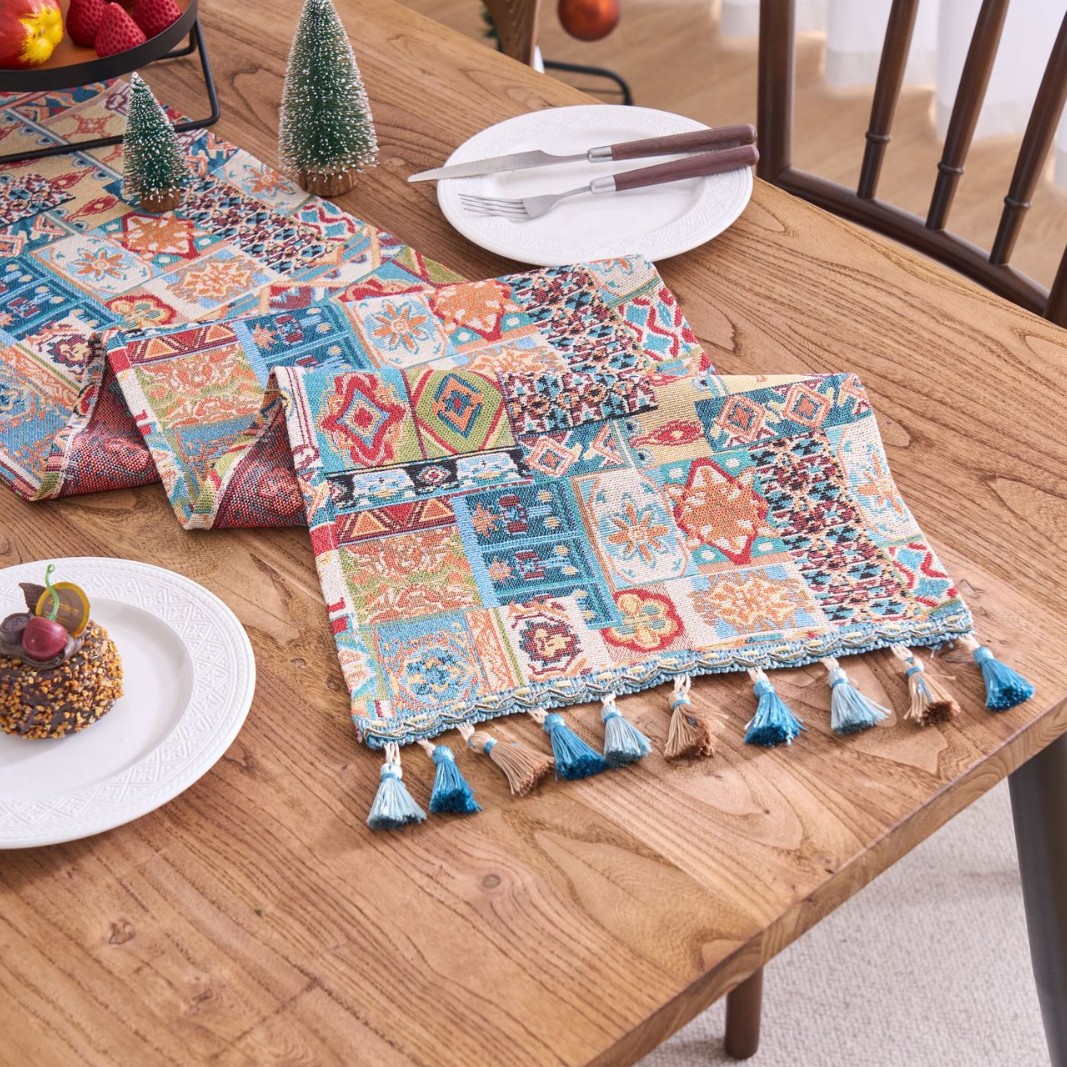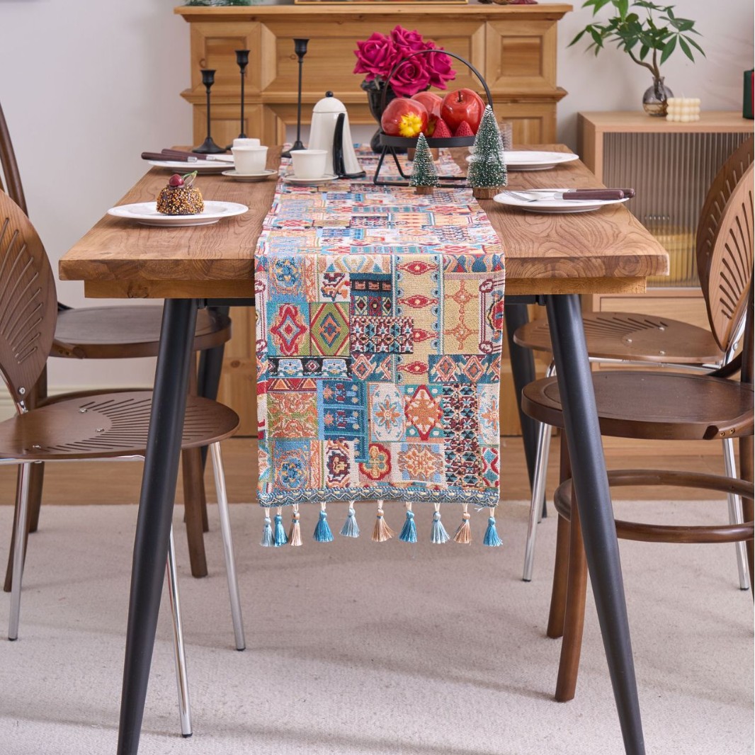 聚家新款北欧提花红色节日几何桌旗流苏茶旗餐旗长条工厂直供