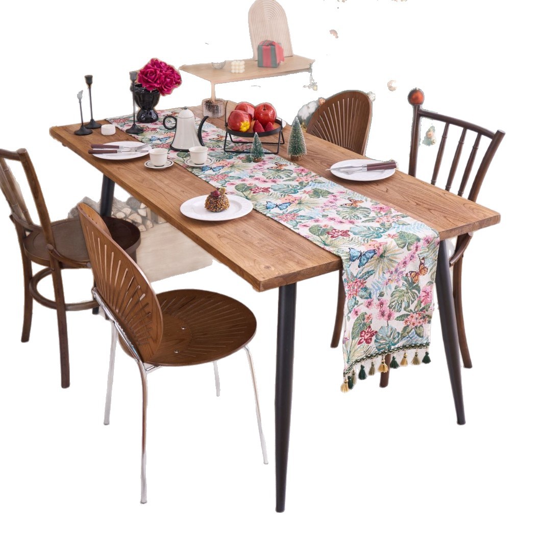 jujia new nordic jacquard red holiday geometric table runner tassel tea table mat dining flag strip factory direct supply