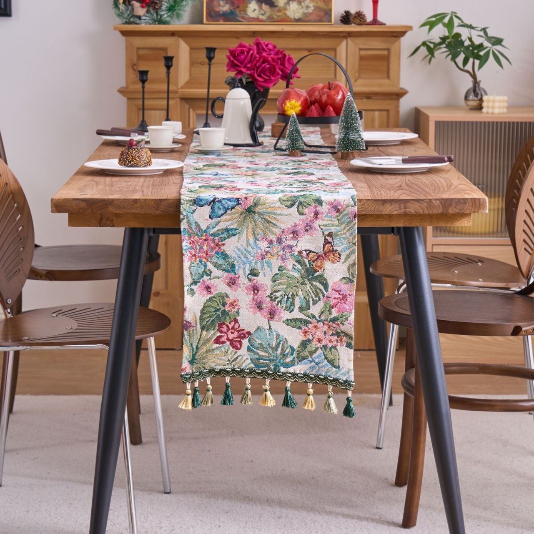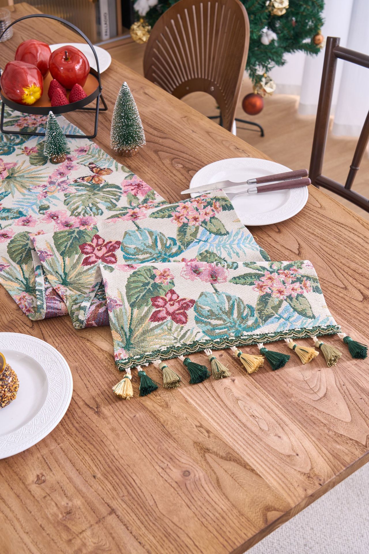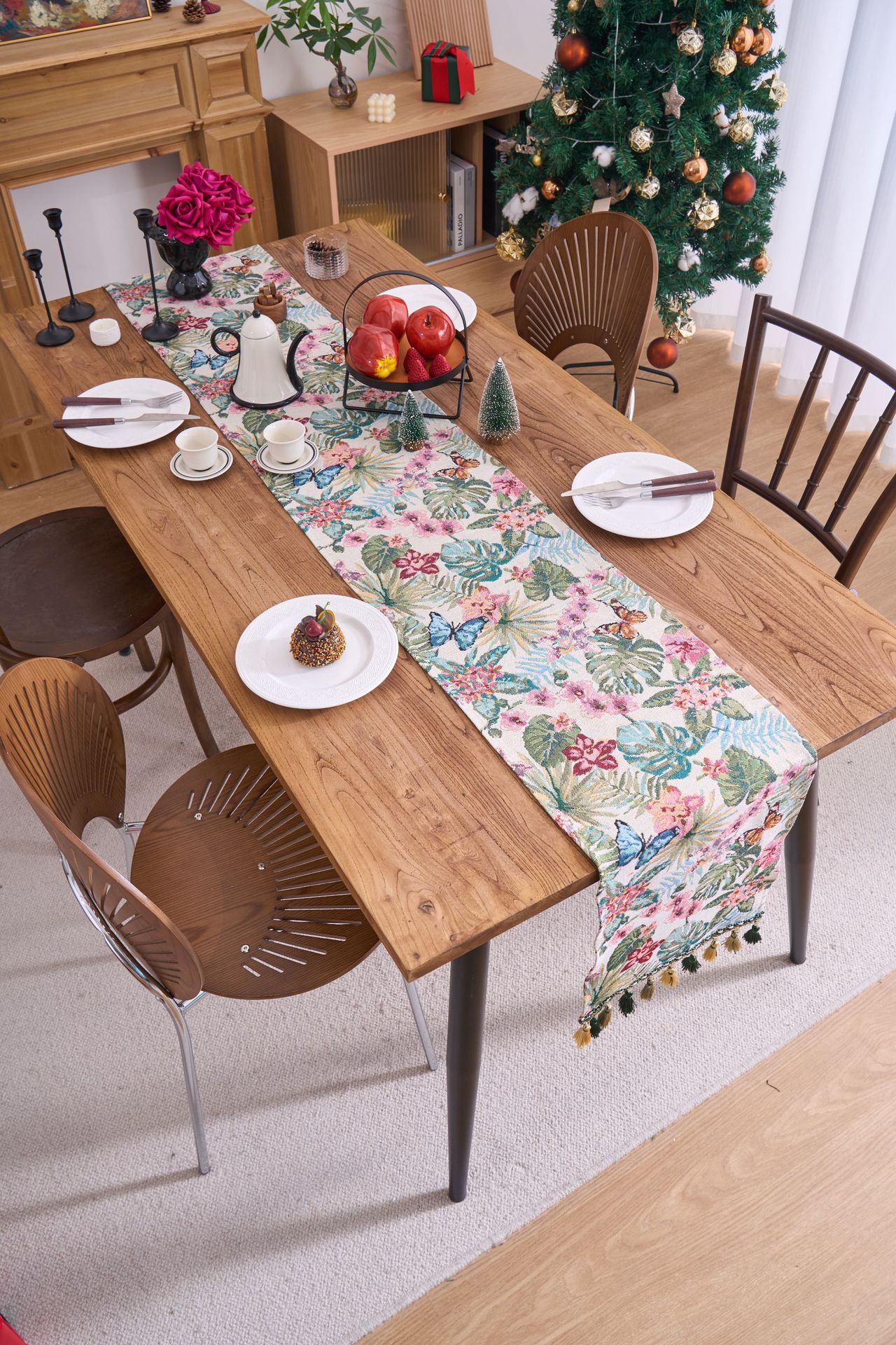 聚家新款北欧提花红色节日几何桌旗流苏茶旗餐旗长条工厂直供