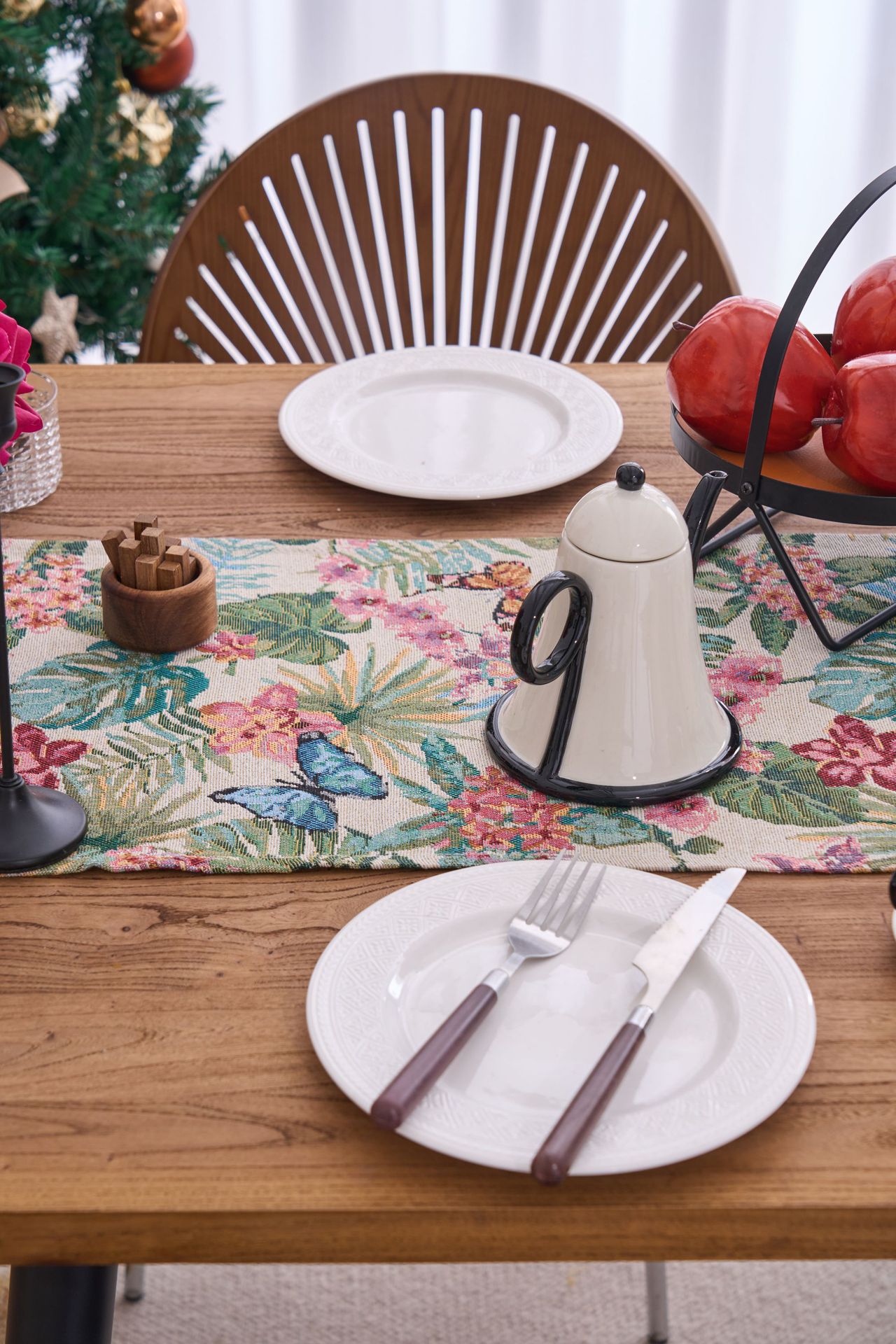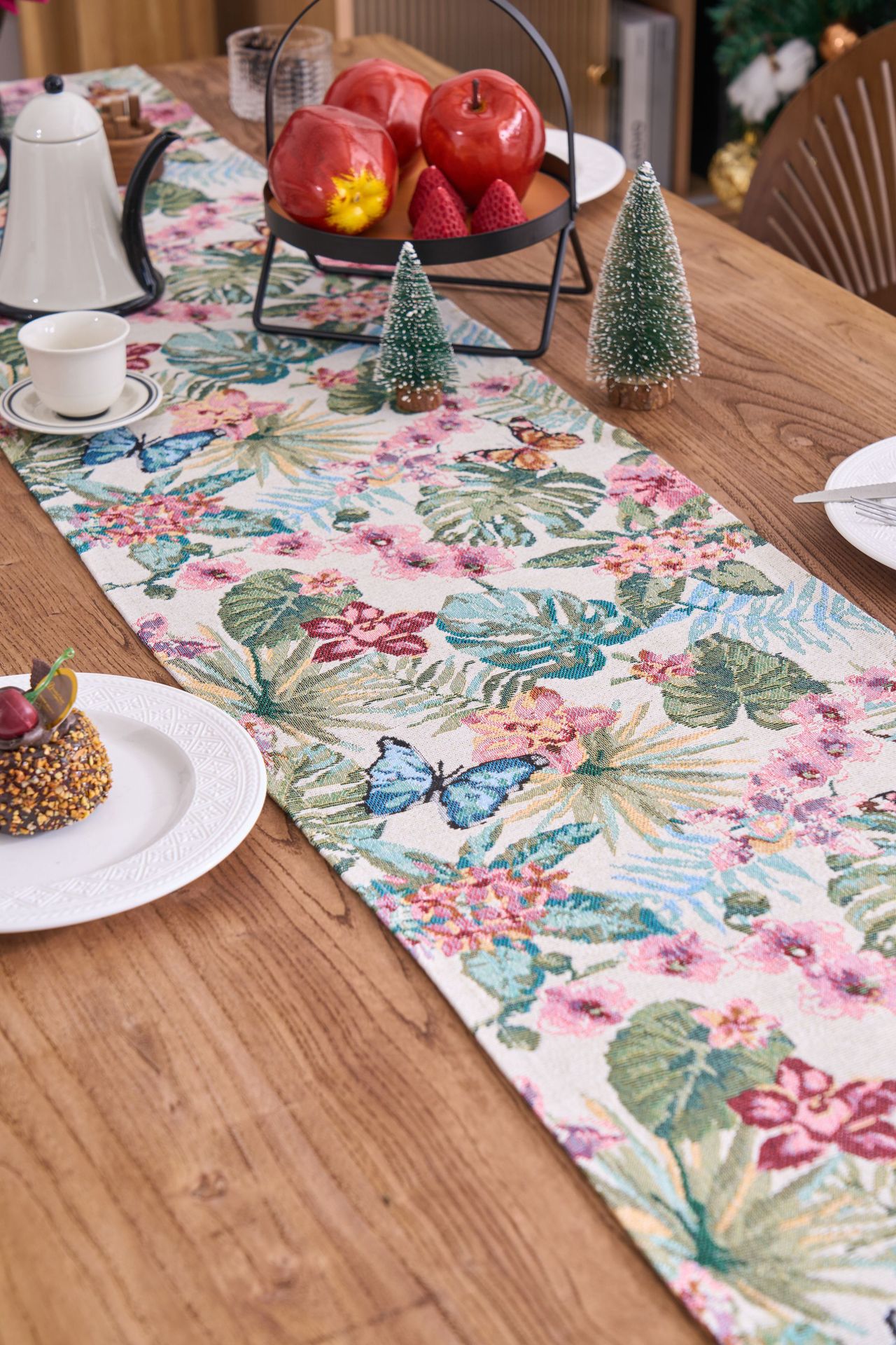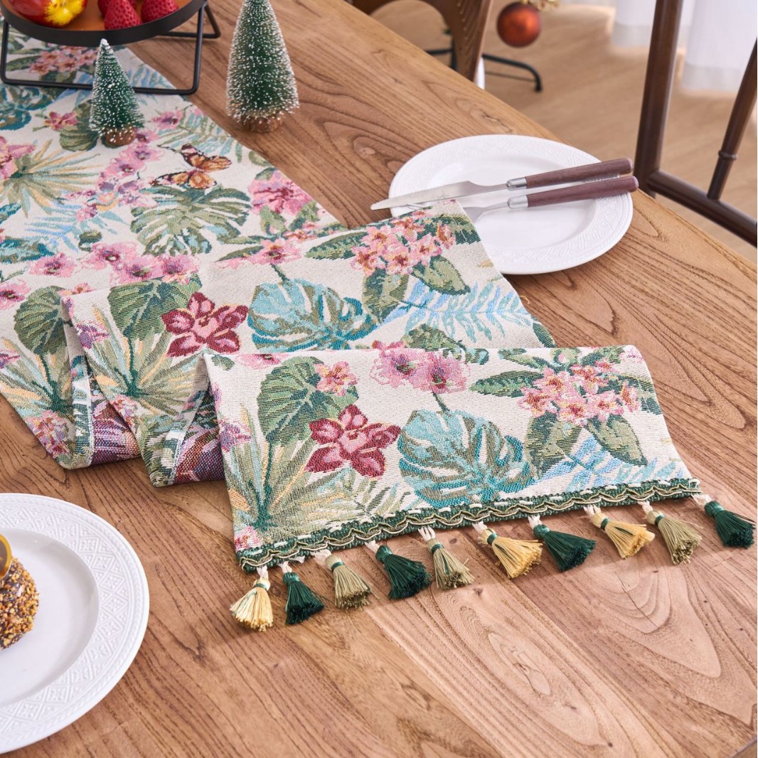 聚家新款北欧提花红色节日几何桌旗流苏茶旗餐旗长条工厂直供