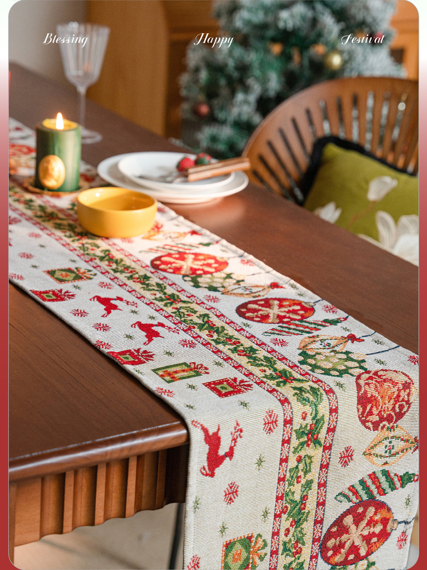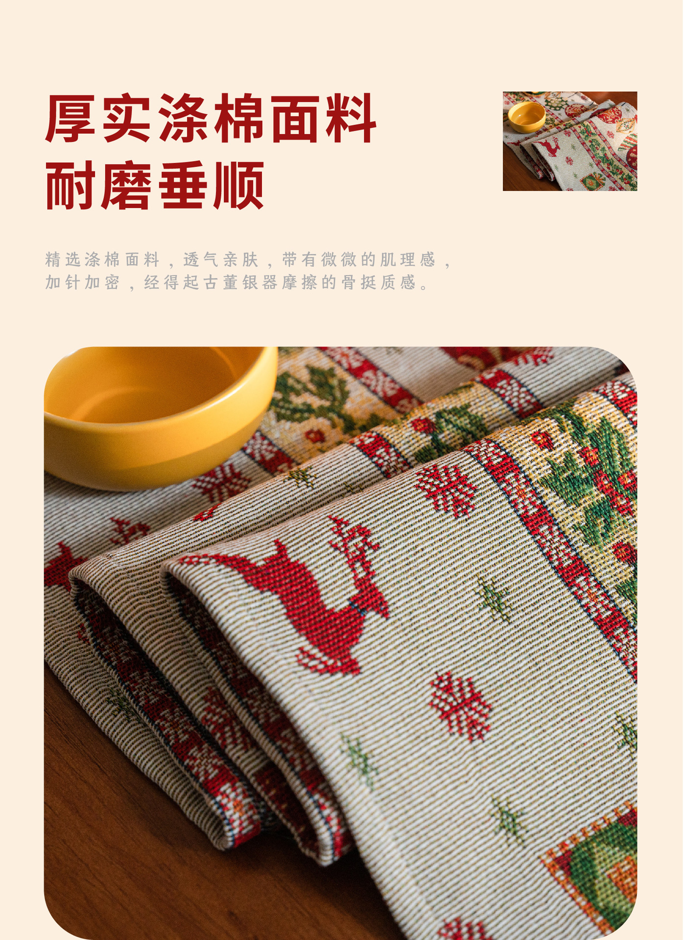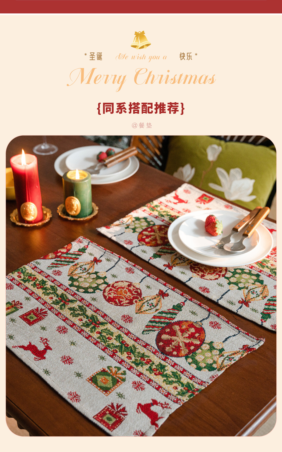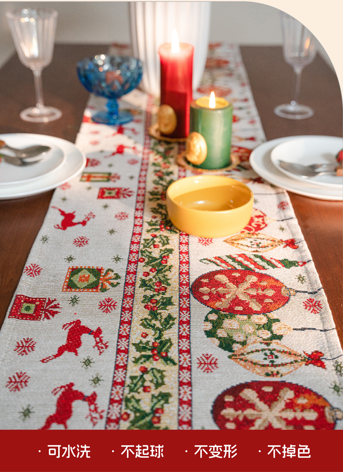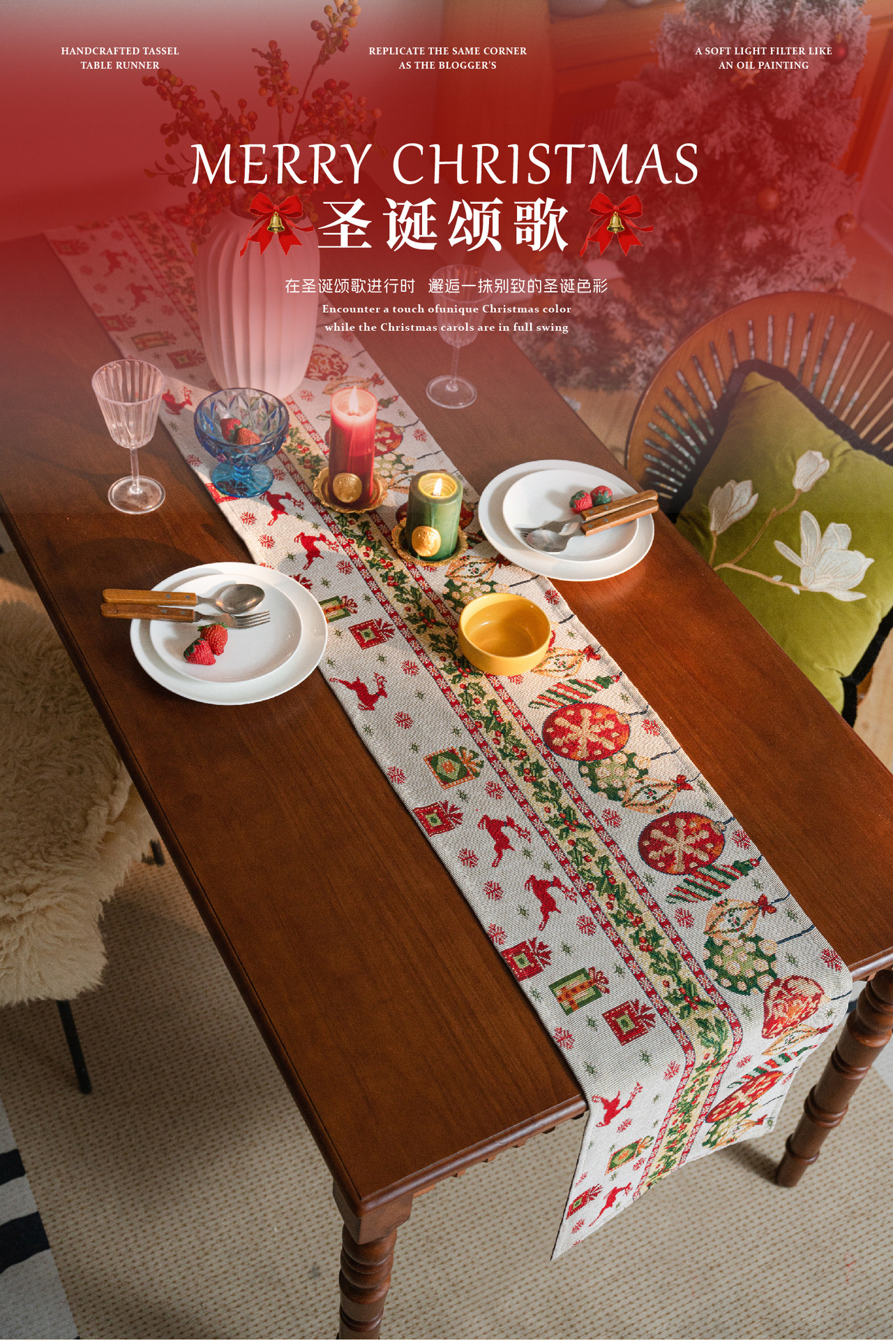 聚家新款桌旗美式复古彩灯提花圣诞节氛围装饰茶几电视柜长条盖布