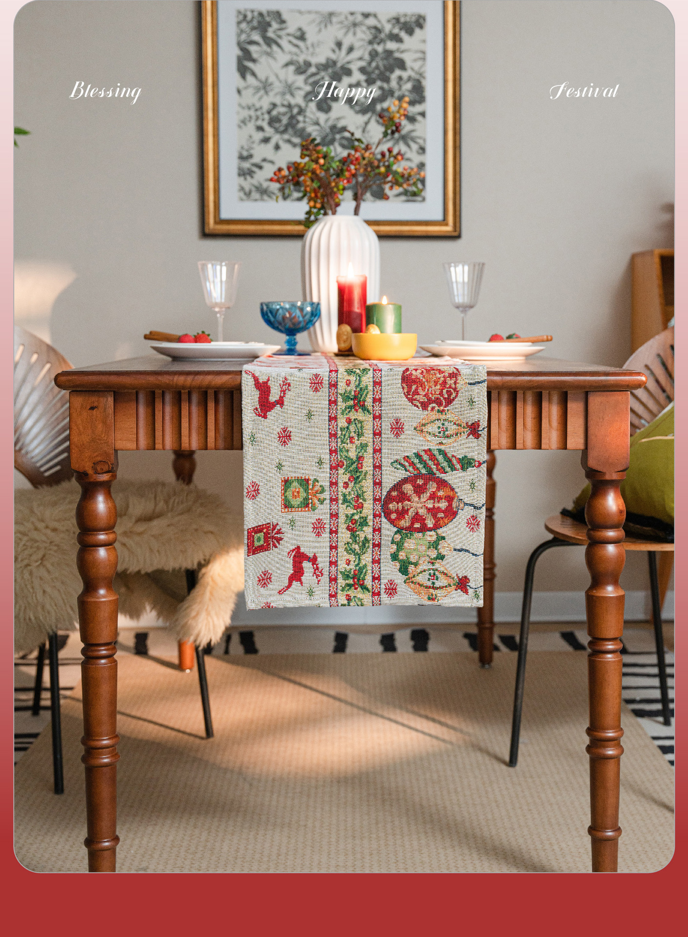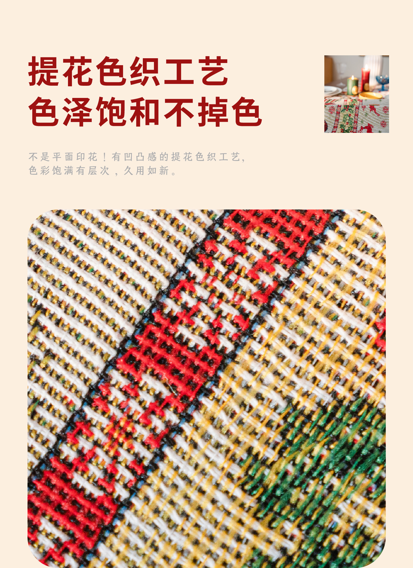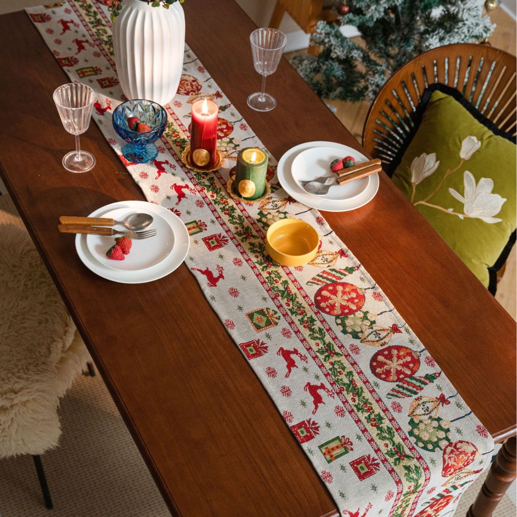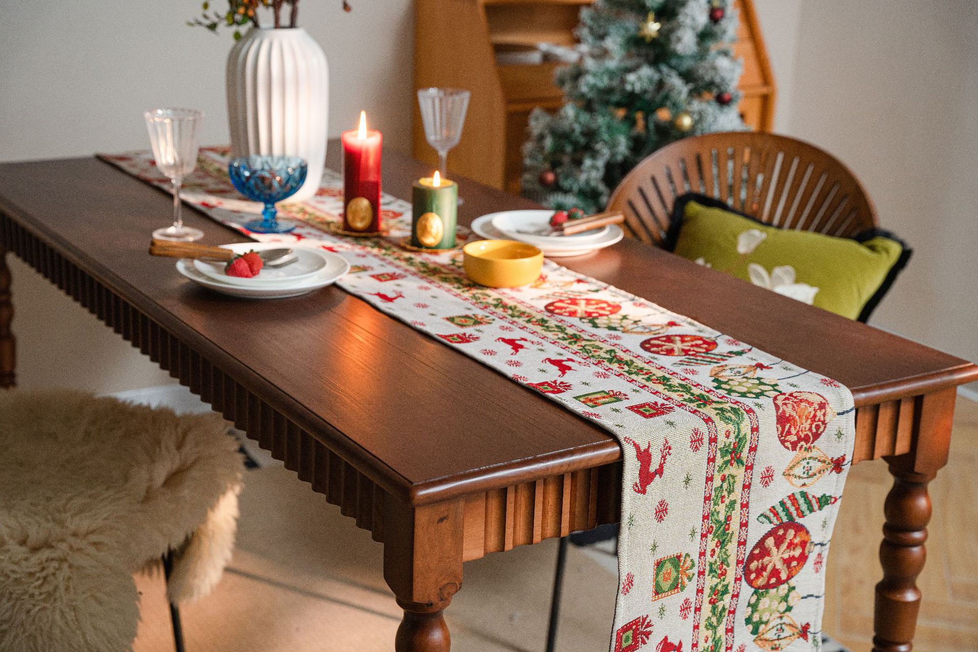 聚家新款桌旗美式复古彩灯提花圣诞节氛围装饰茶几电视柜长条盖布