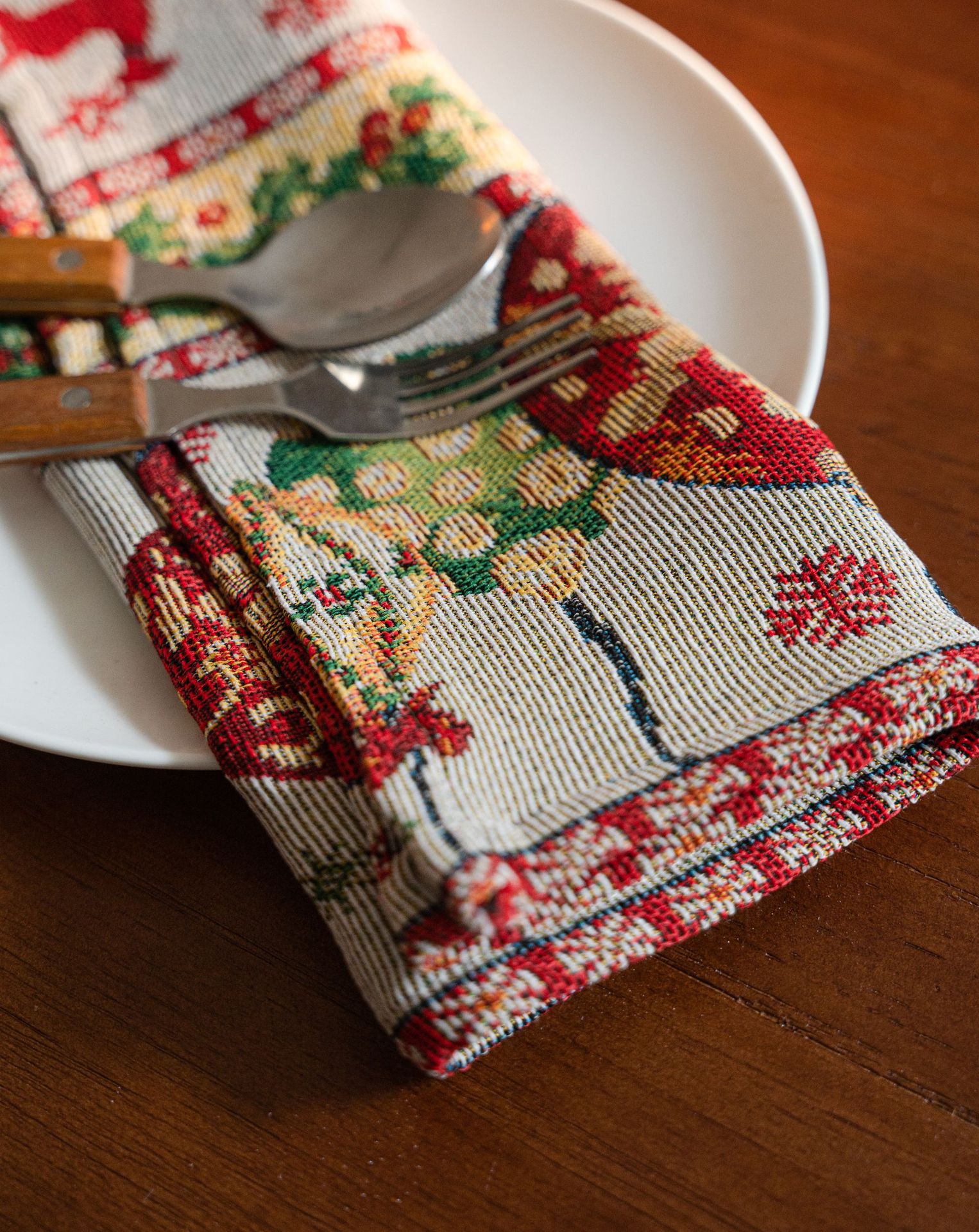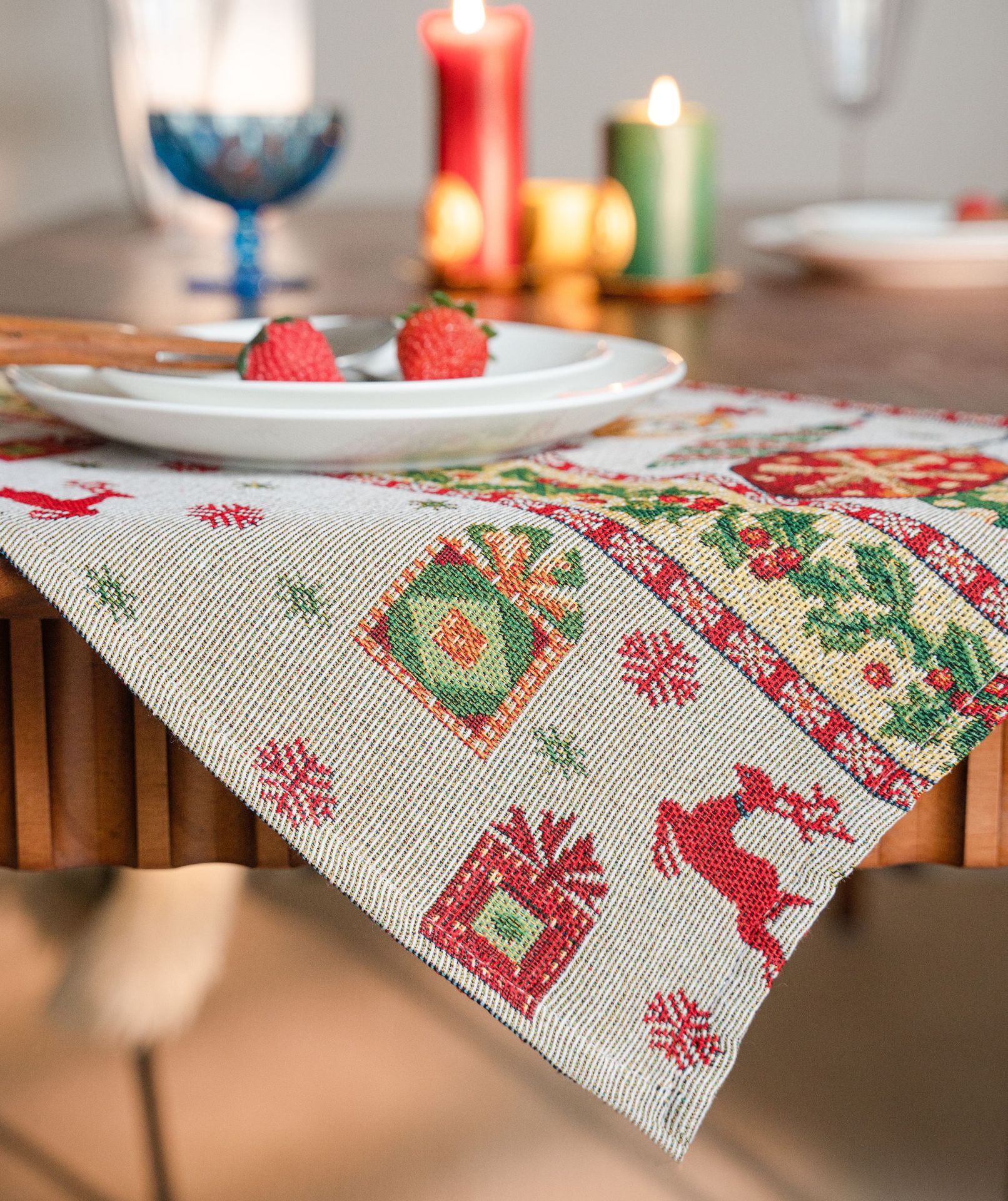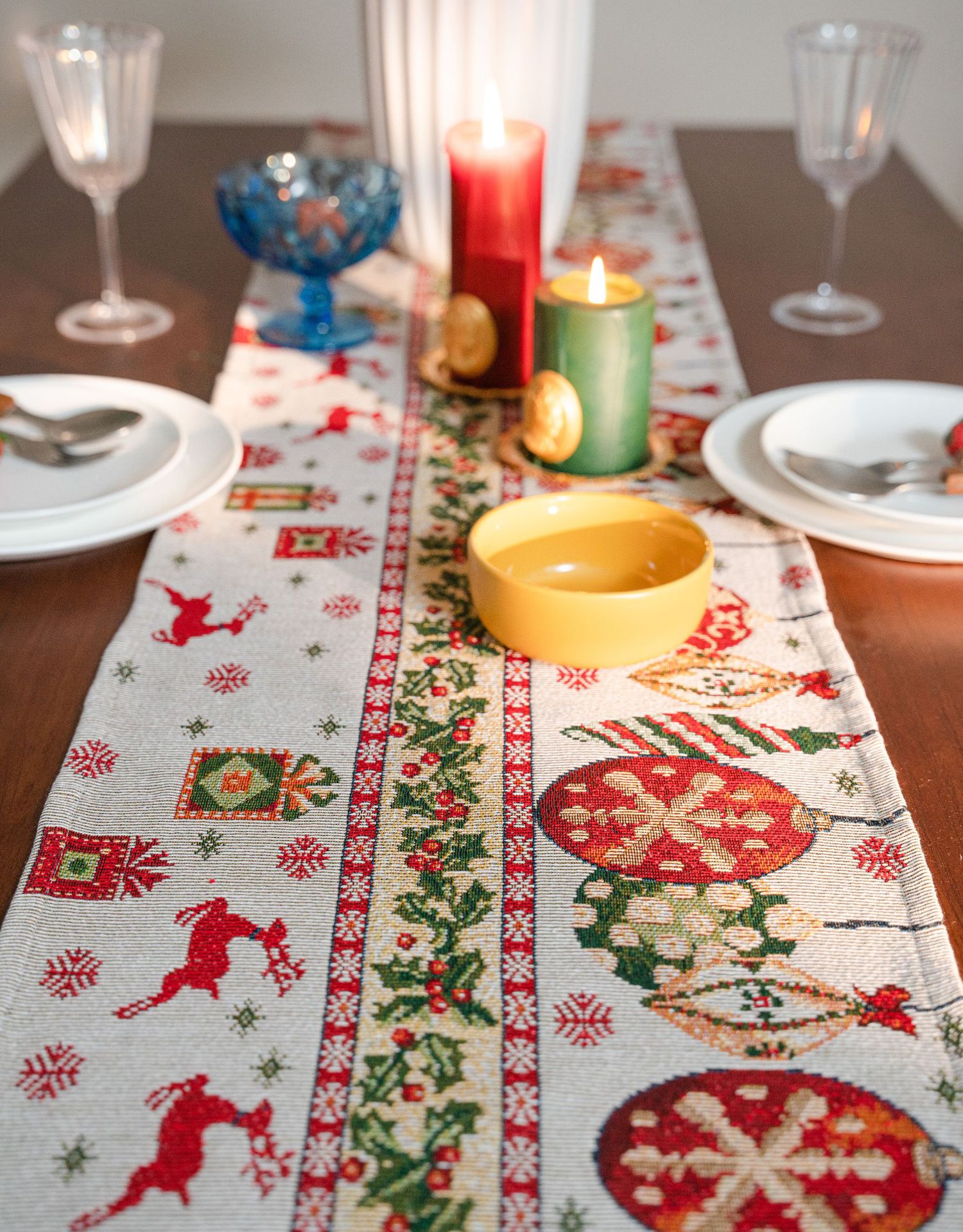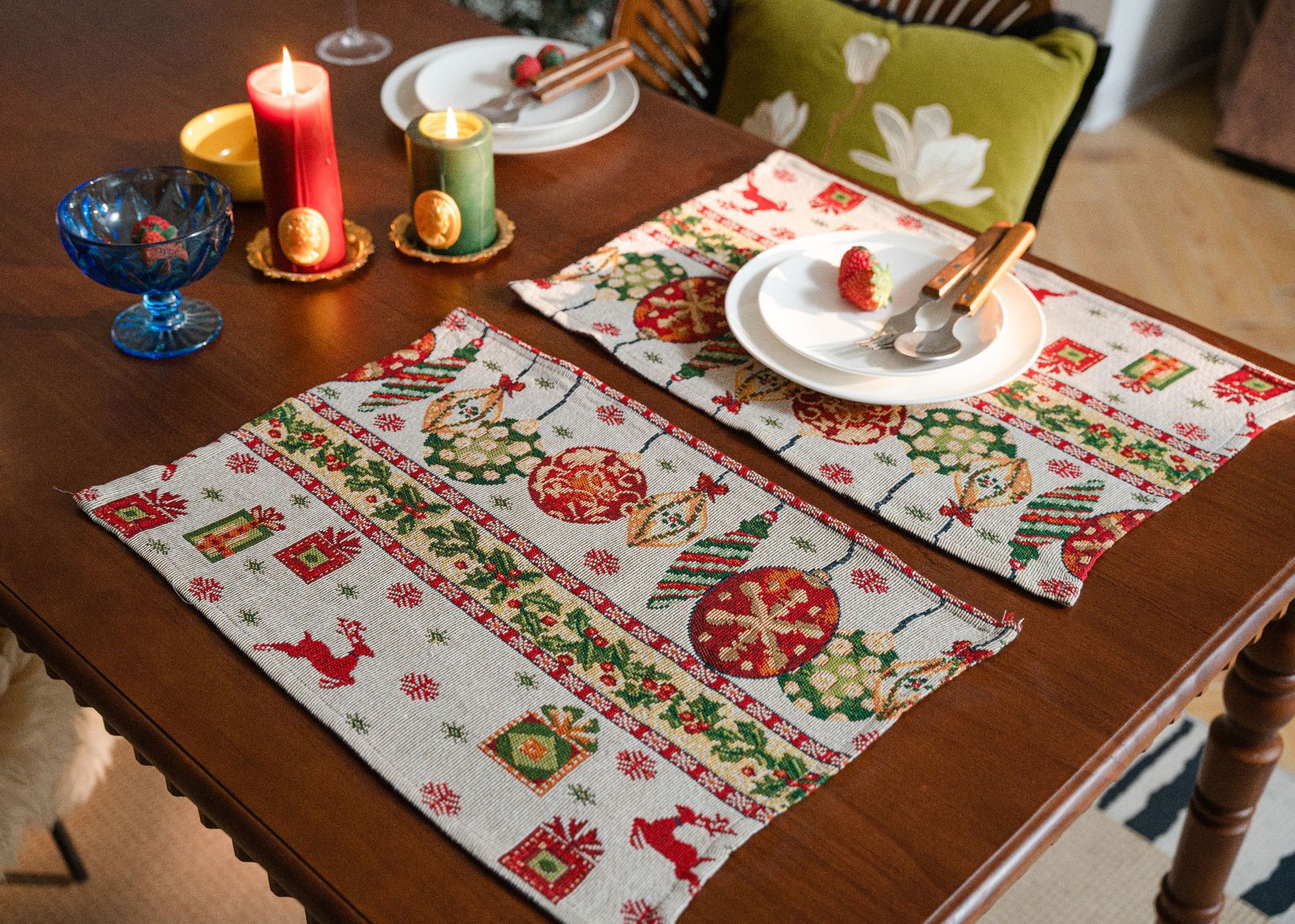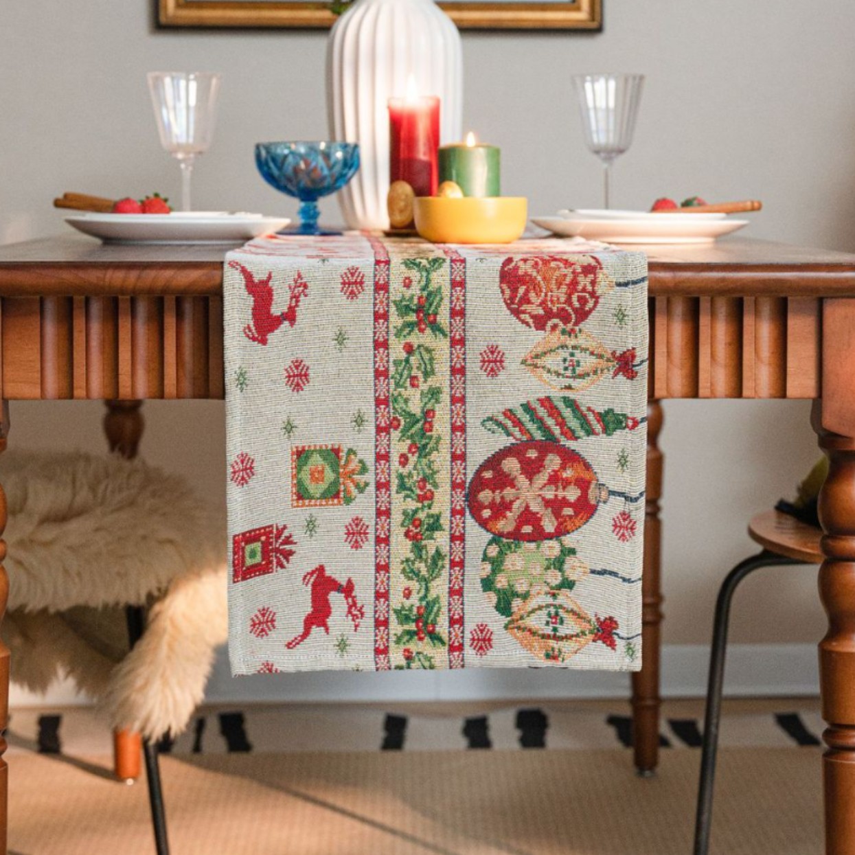 聚家新款桌旗美式复古彩灯提花圣诞节氛围装饰茶几电视柜长条盖布