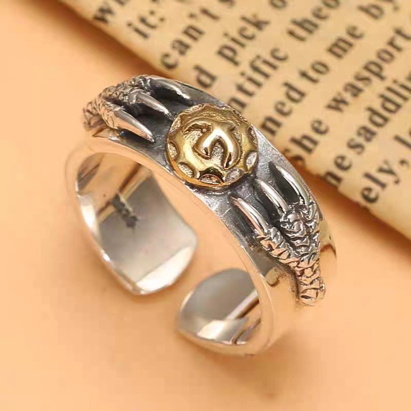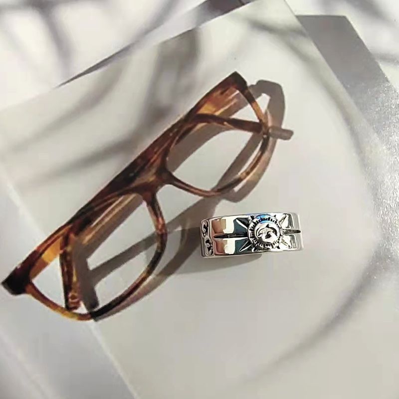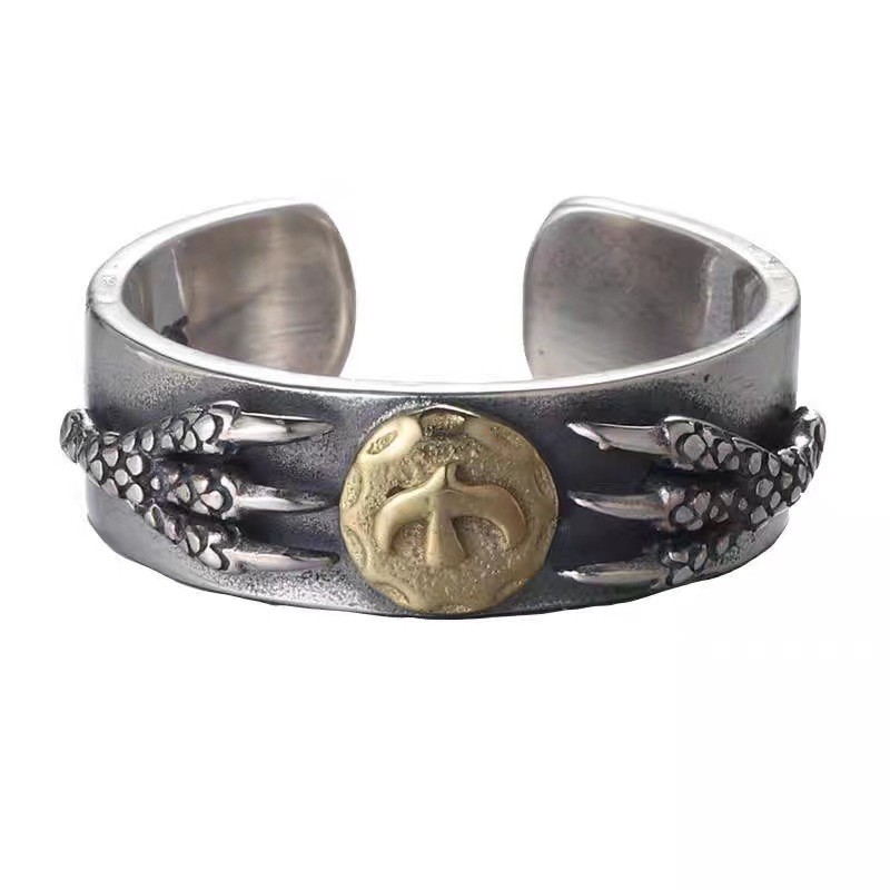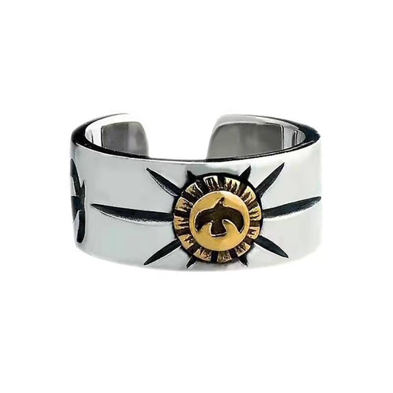 新款跨境潮男指环高桥镶铜飞鹰射线图腾印记开口男女款简约戒指