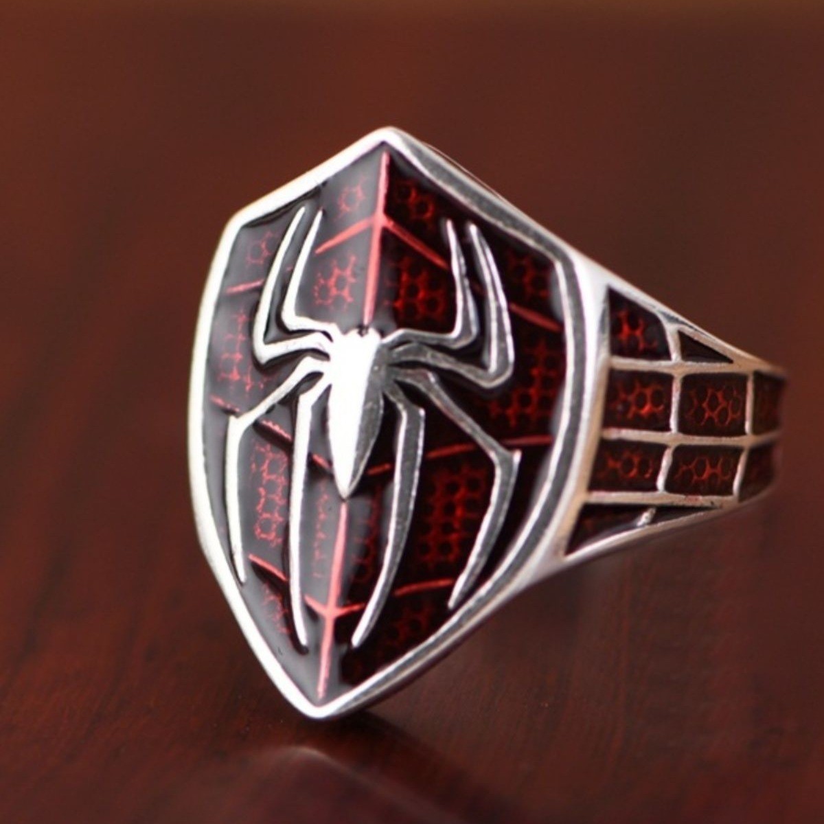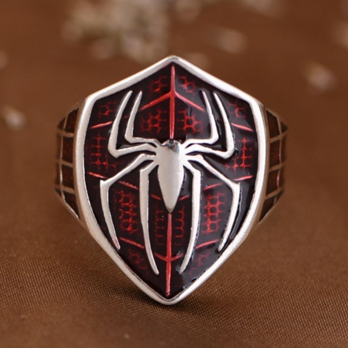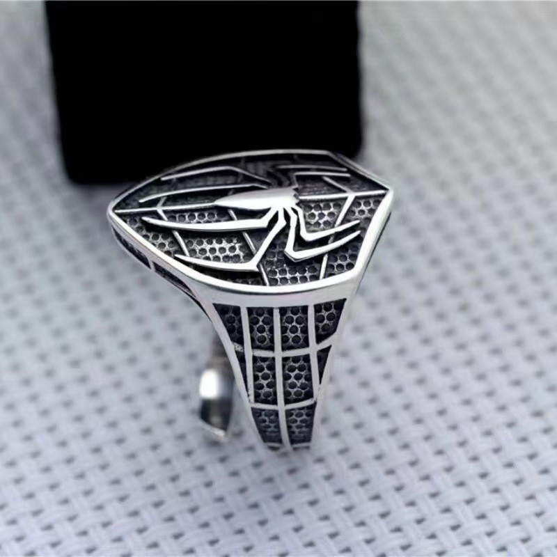 新款跨境泰银蜘蛛侠戒指时尚个性漫威小蜘蛛指环男女复古开口可调