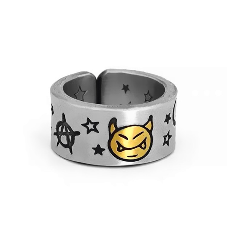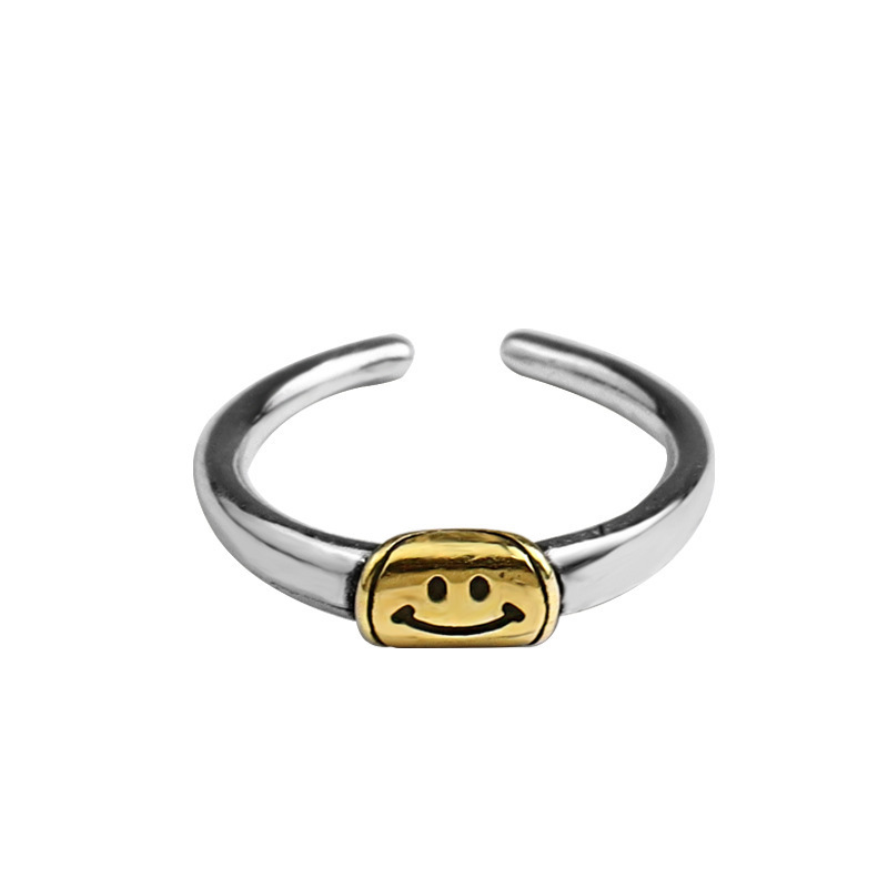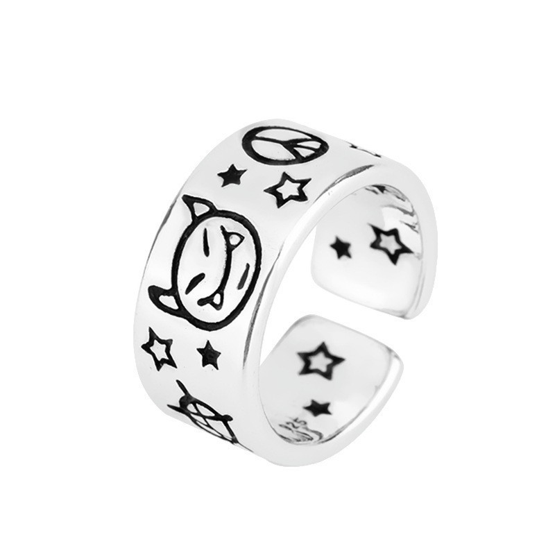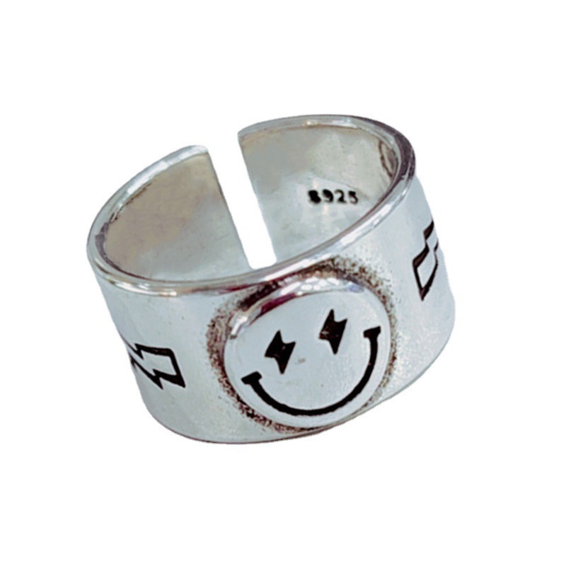 韩版森系泰银闪电五角星戒指女时尚个性复古金色笑脸开口戒指批发