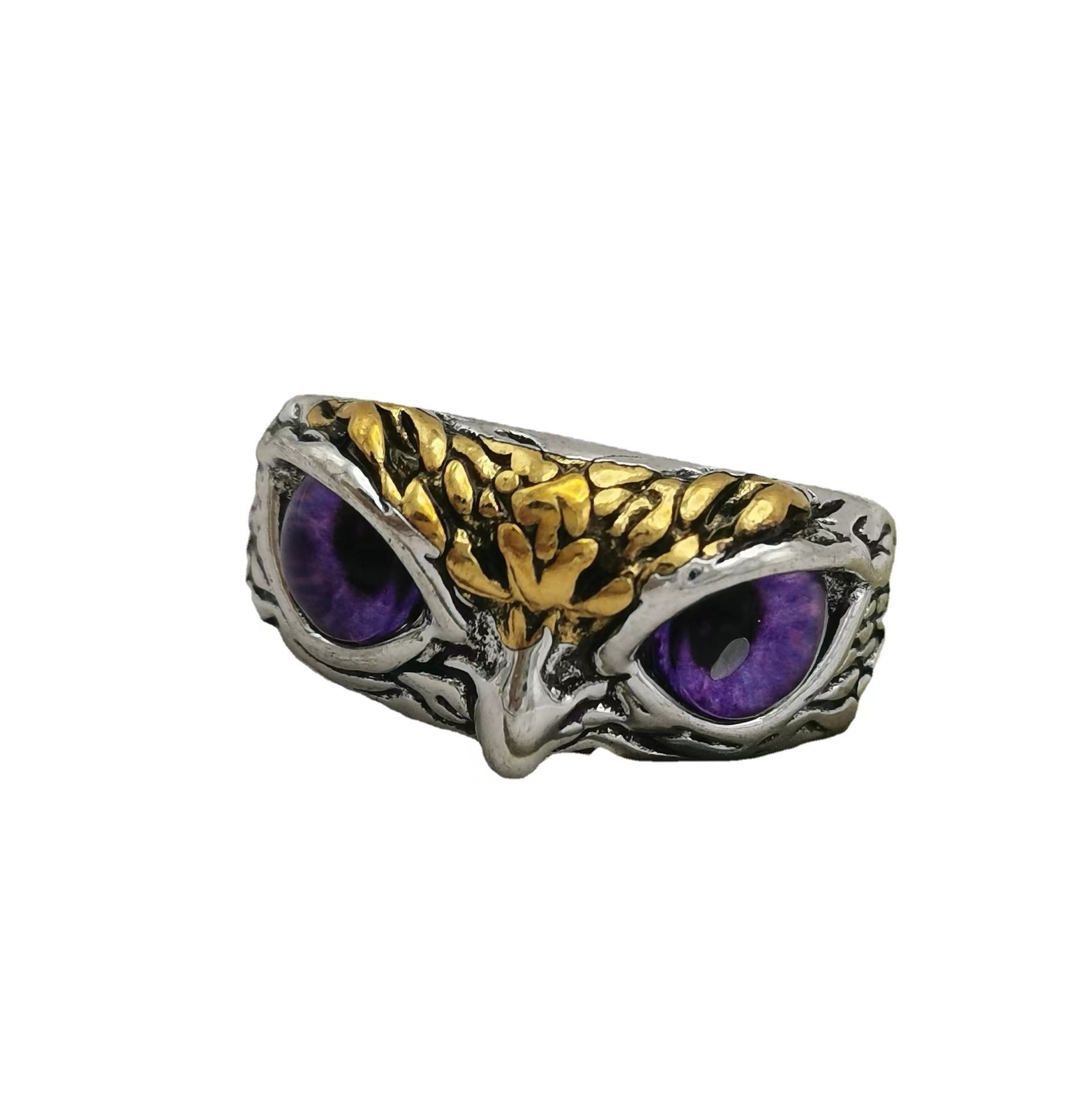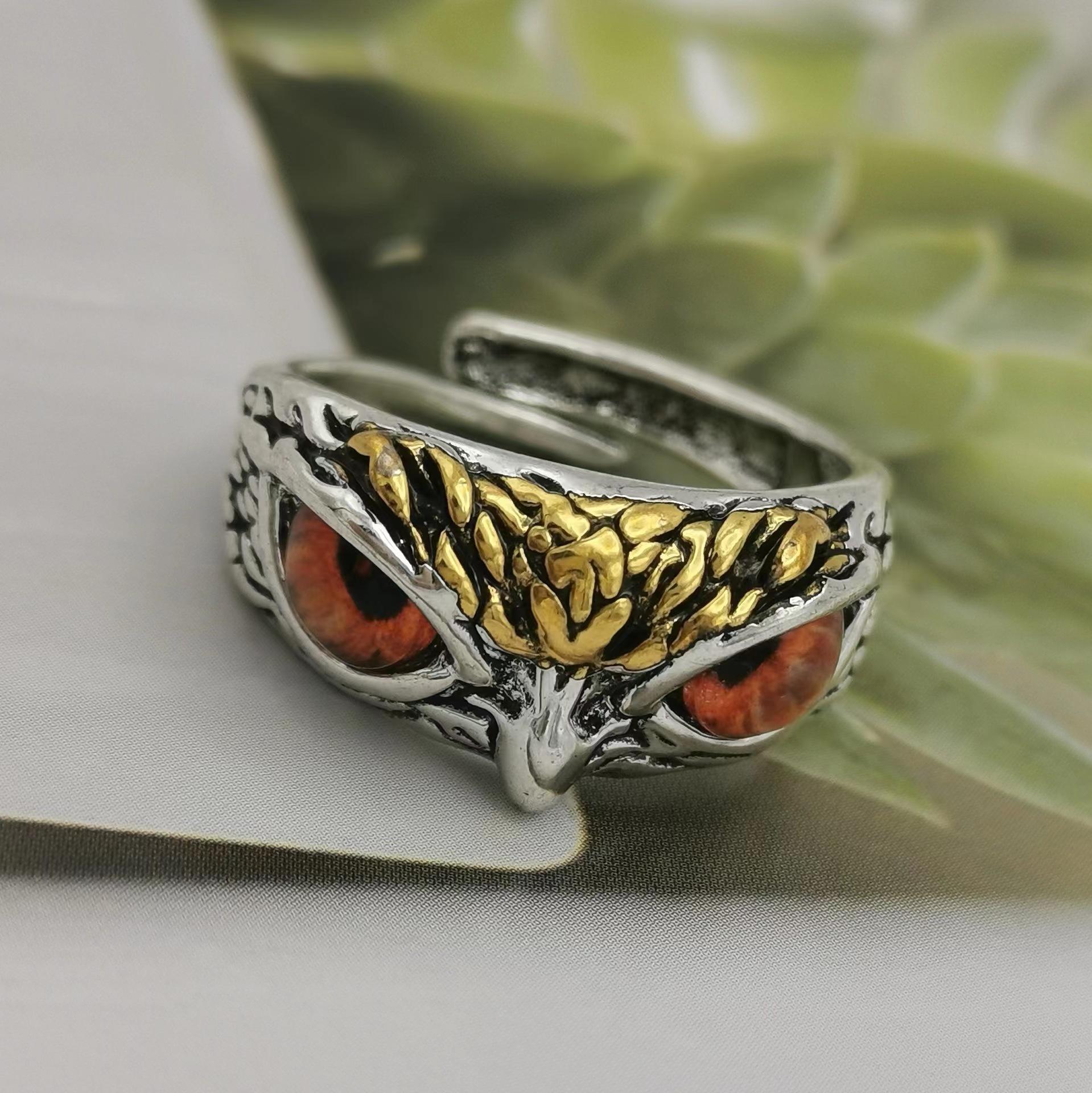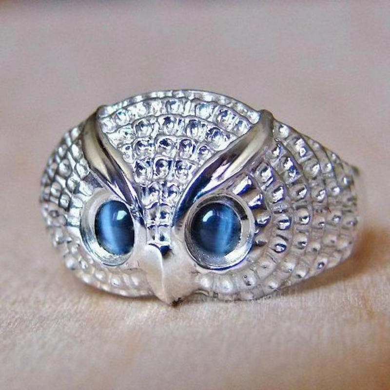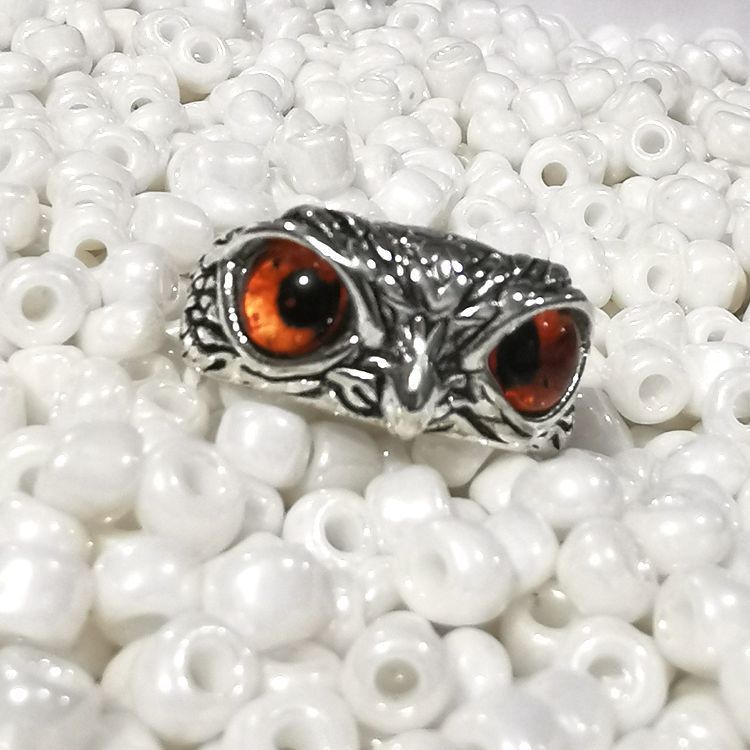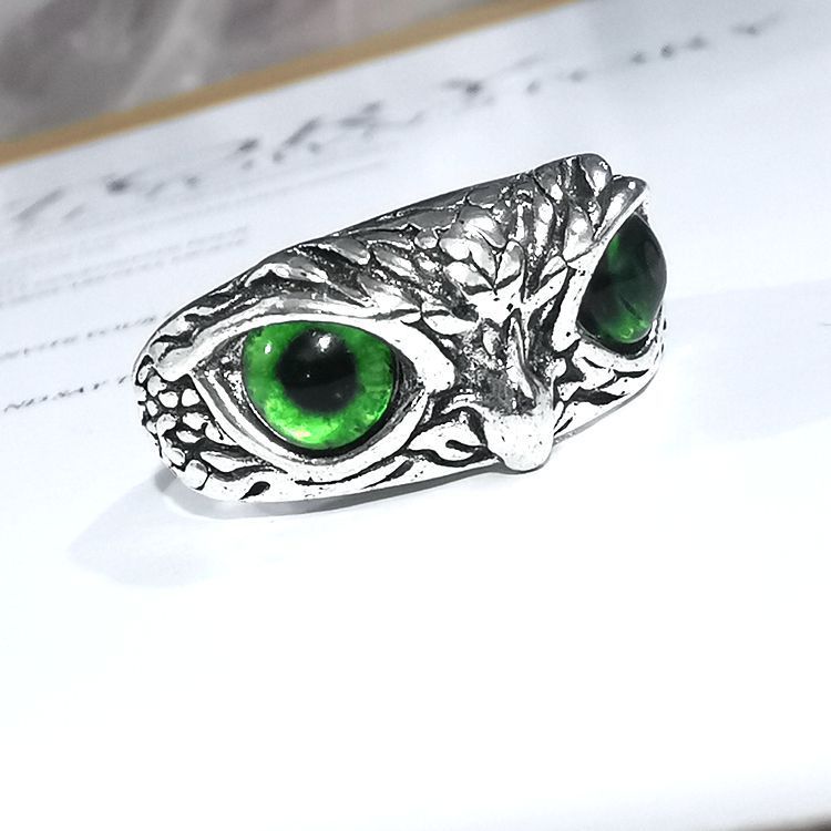 新款复古素银彩色蓝色眼睛猫头鹰戒指恶魔之眼指环饰品女厂家批发