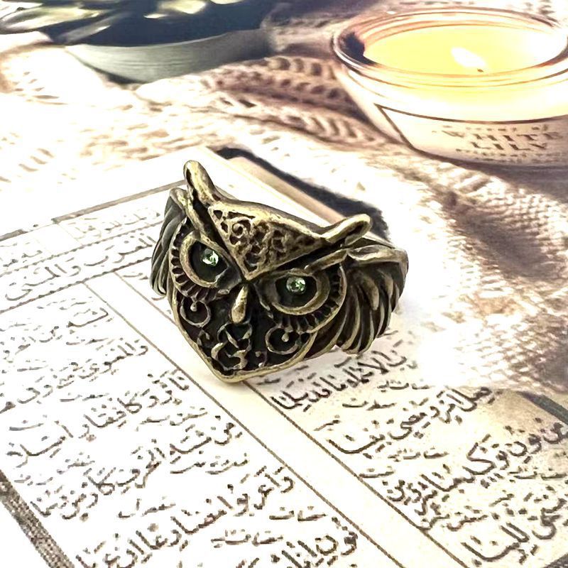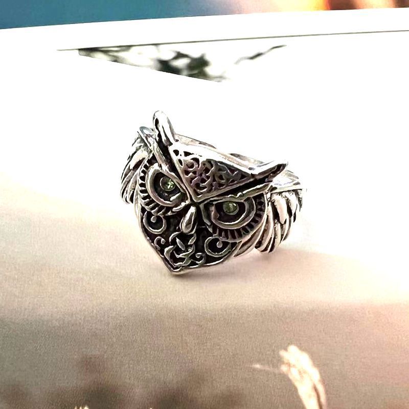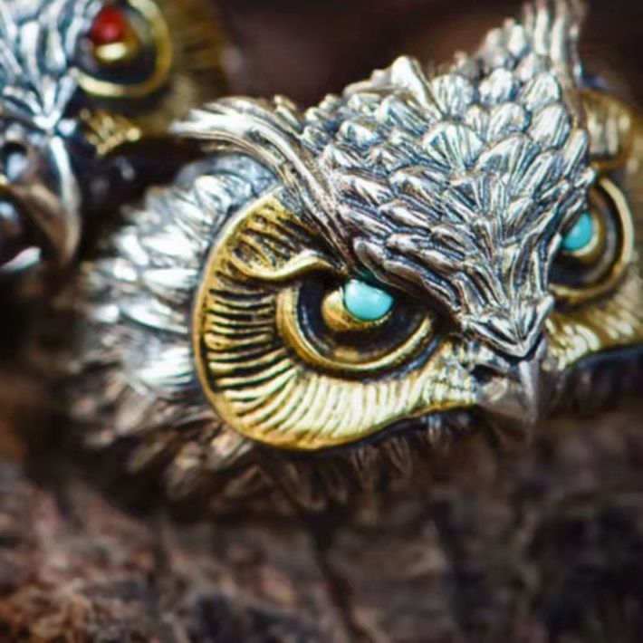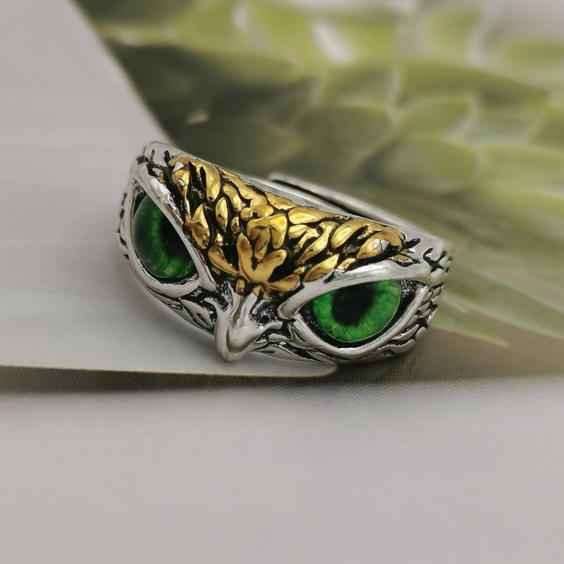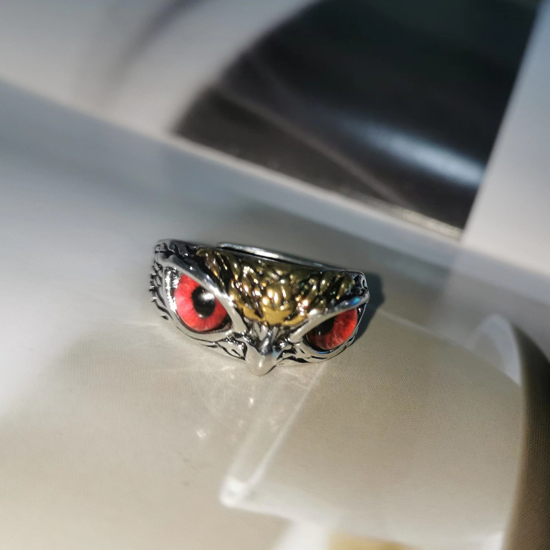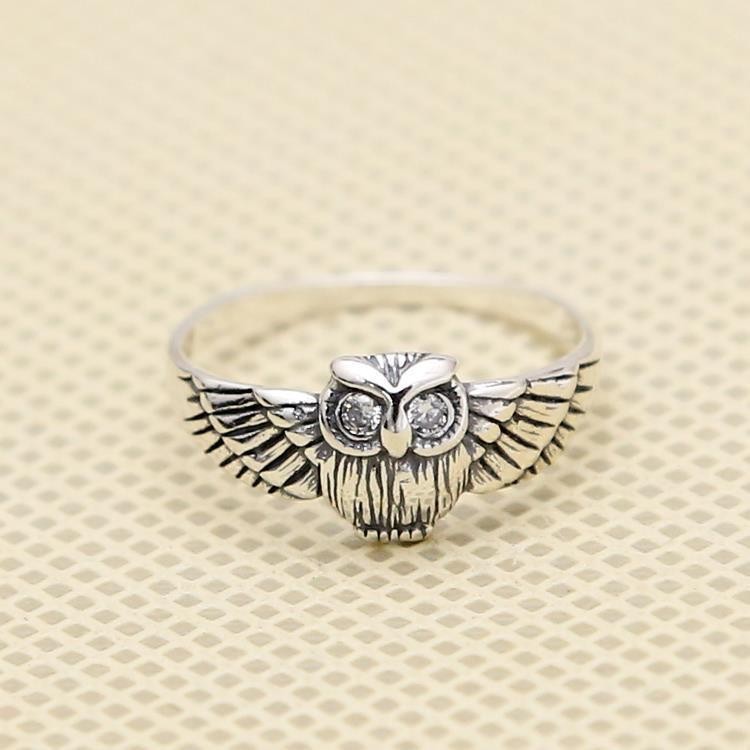 新款复古素银彩色蓝色眼睛猫头鹰戒指恶魔之眼指环饰品女厂家批发