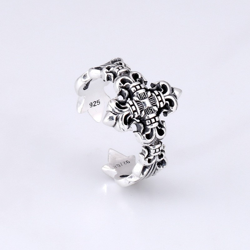 新款跨境剋罗芯十字架跨境开口戒指男个性时尚简约指环女复古戒