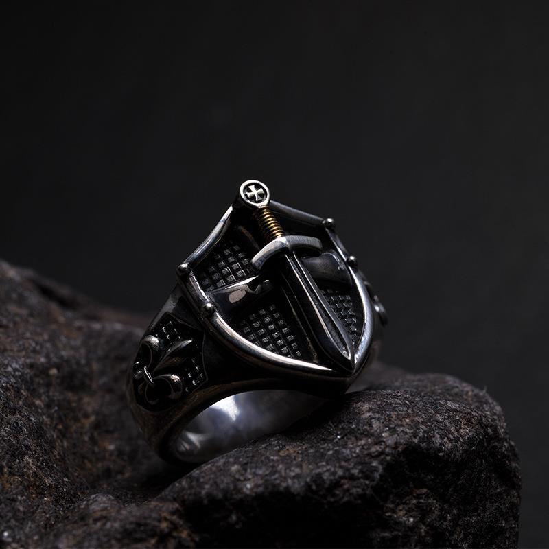 新款跨境偶屿信条系列之剑盾牌戒指中世纪复古风宝剑个性指环
