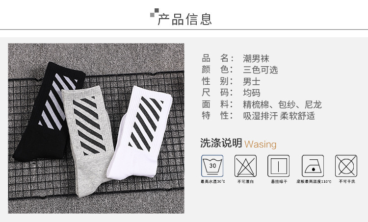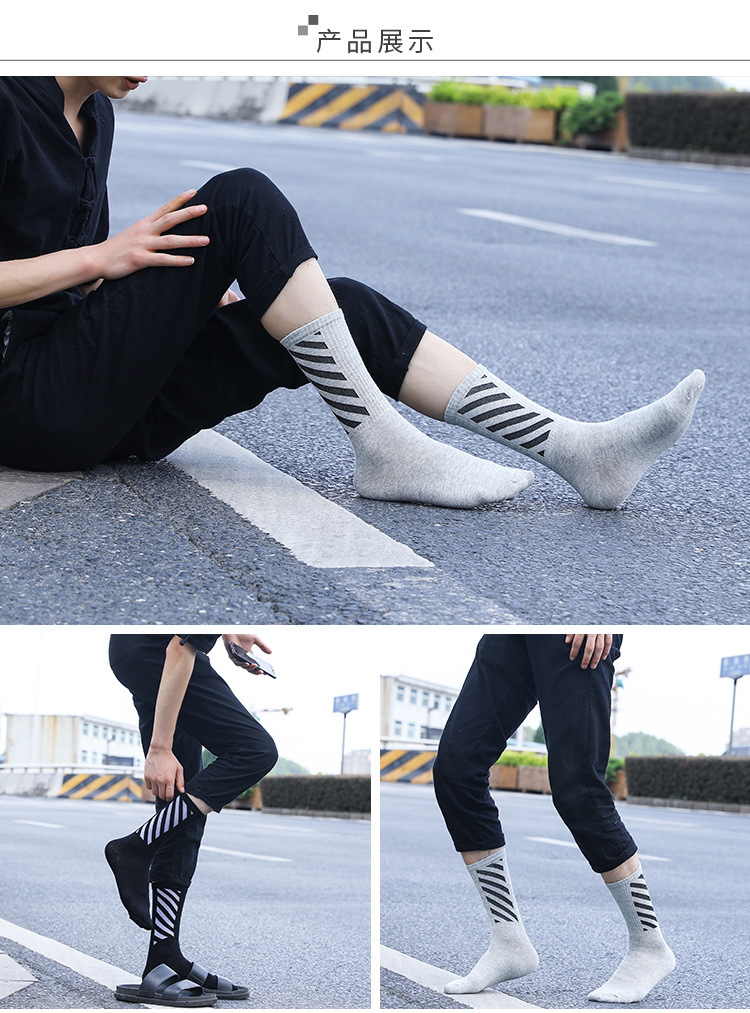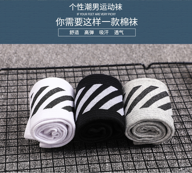 秋冬款男士字母潮流运动袜时尚全棉透气吸汗中长筒男袜简约棉袜子