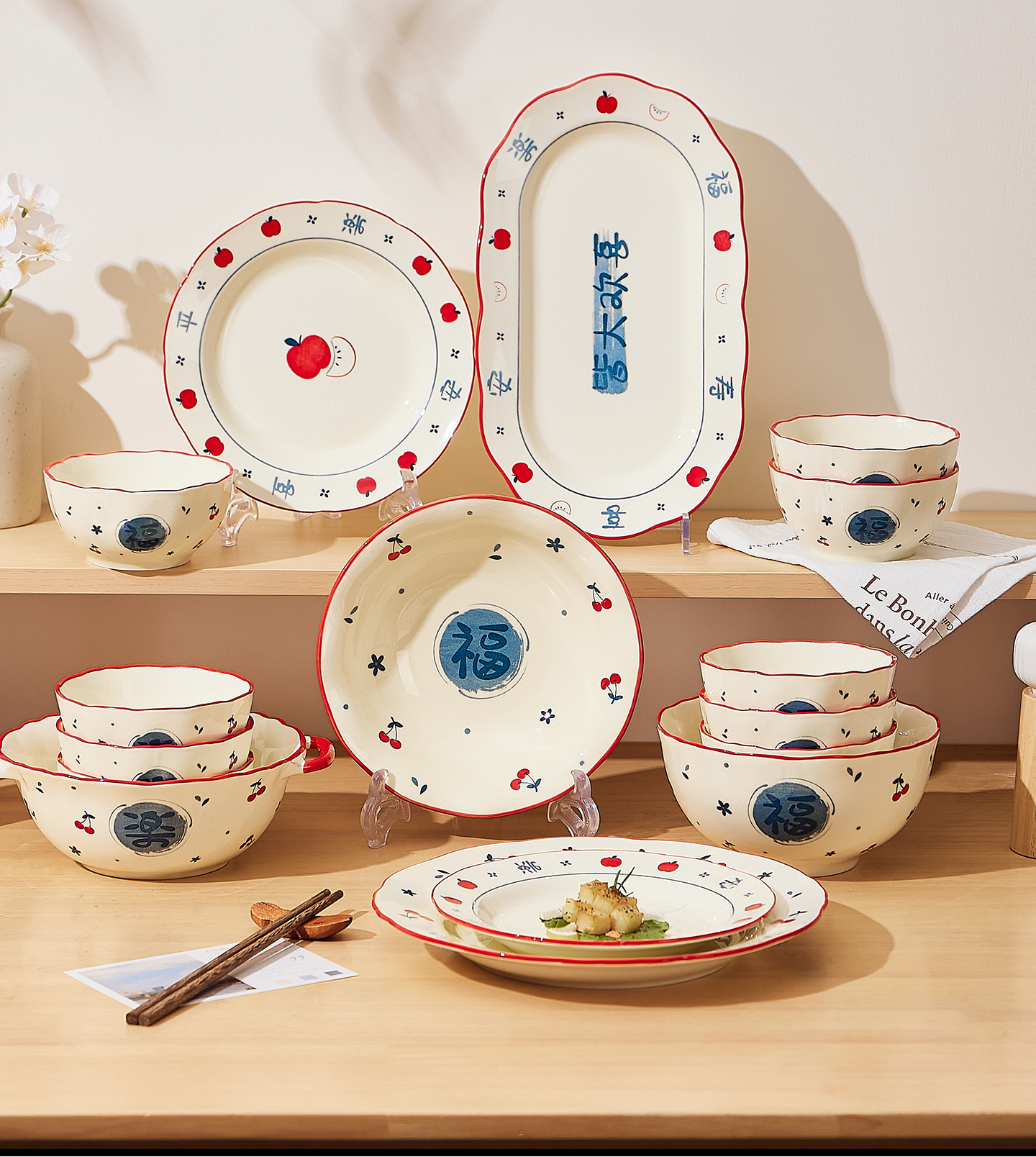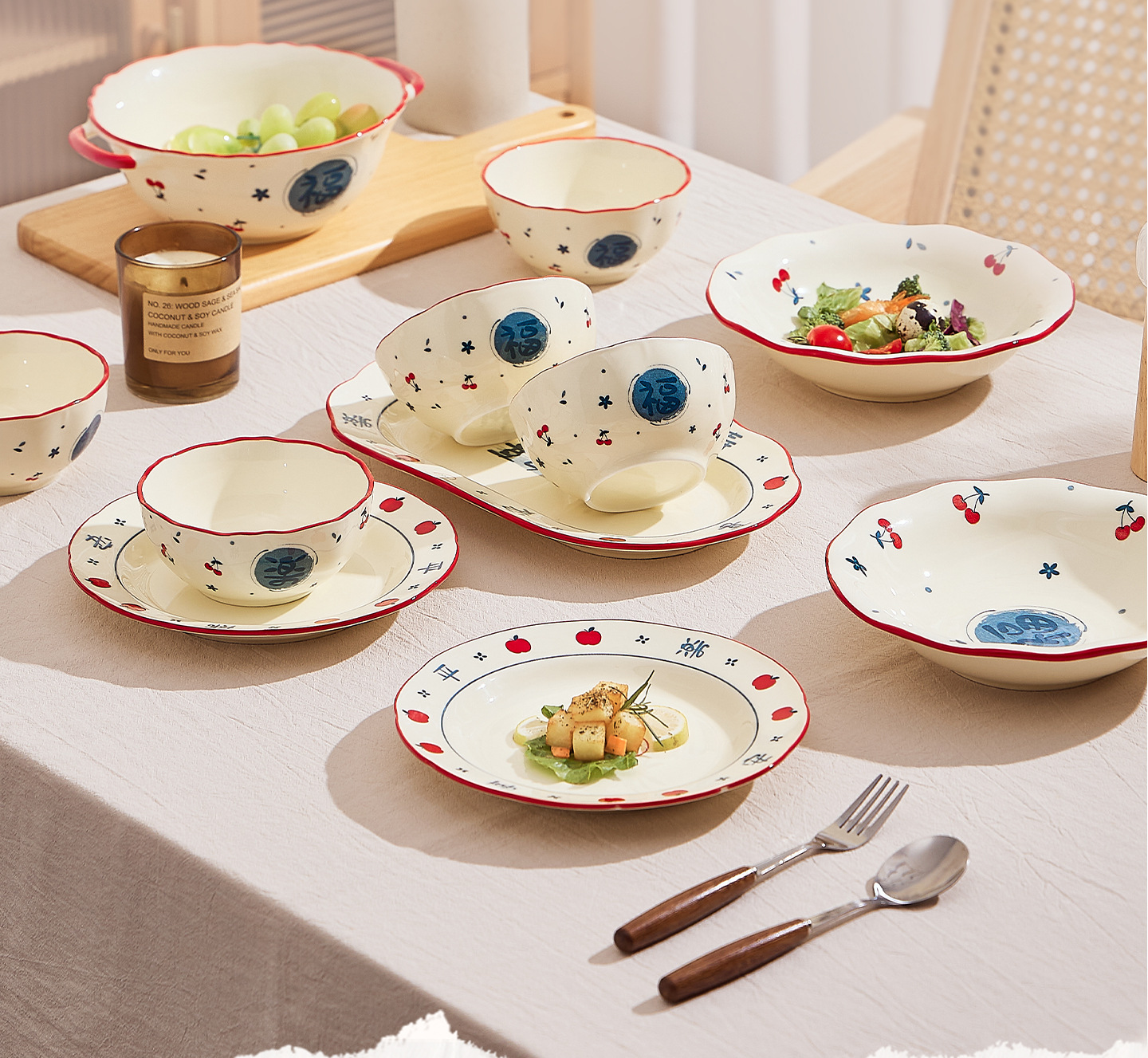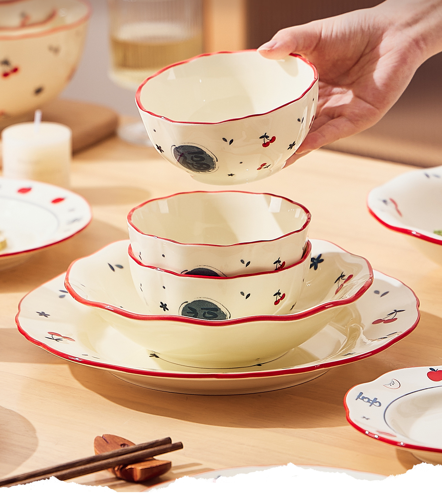 釉下彩陶瓷饭碗家用高颜值2025新款碗盘套装新婚乔迁送礼碗碟套装