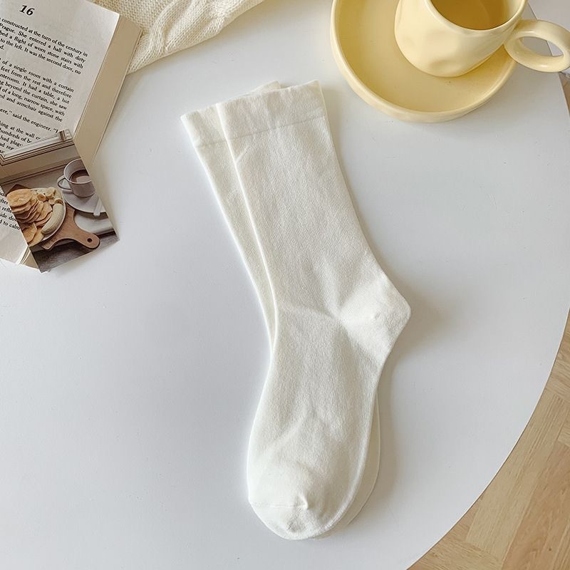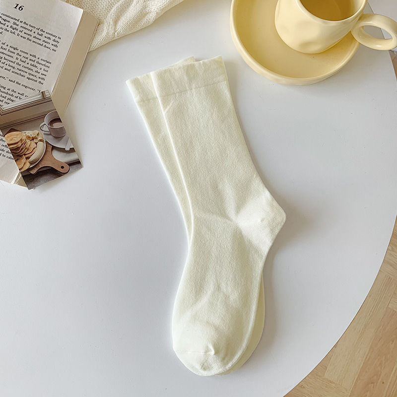 糖果色月子袜中筒袜夏季薄款袜子女ins风简约彩色堆堆袜纯色长袜