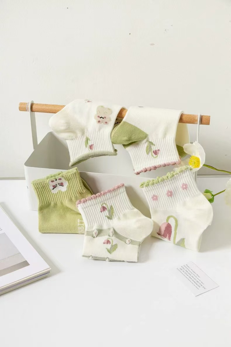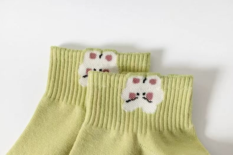 跨境小众设计款袜子女短袜春夏季薄款女士日系可爱学院风绿色短袜