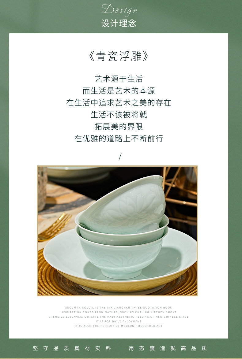 景德镇高档宋氏美学青瓷餐具套装家用新款碗碟套装中式乔迁送礼