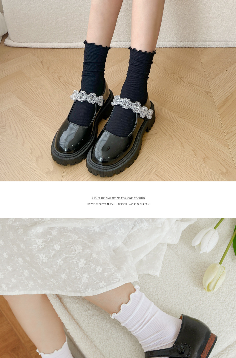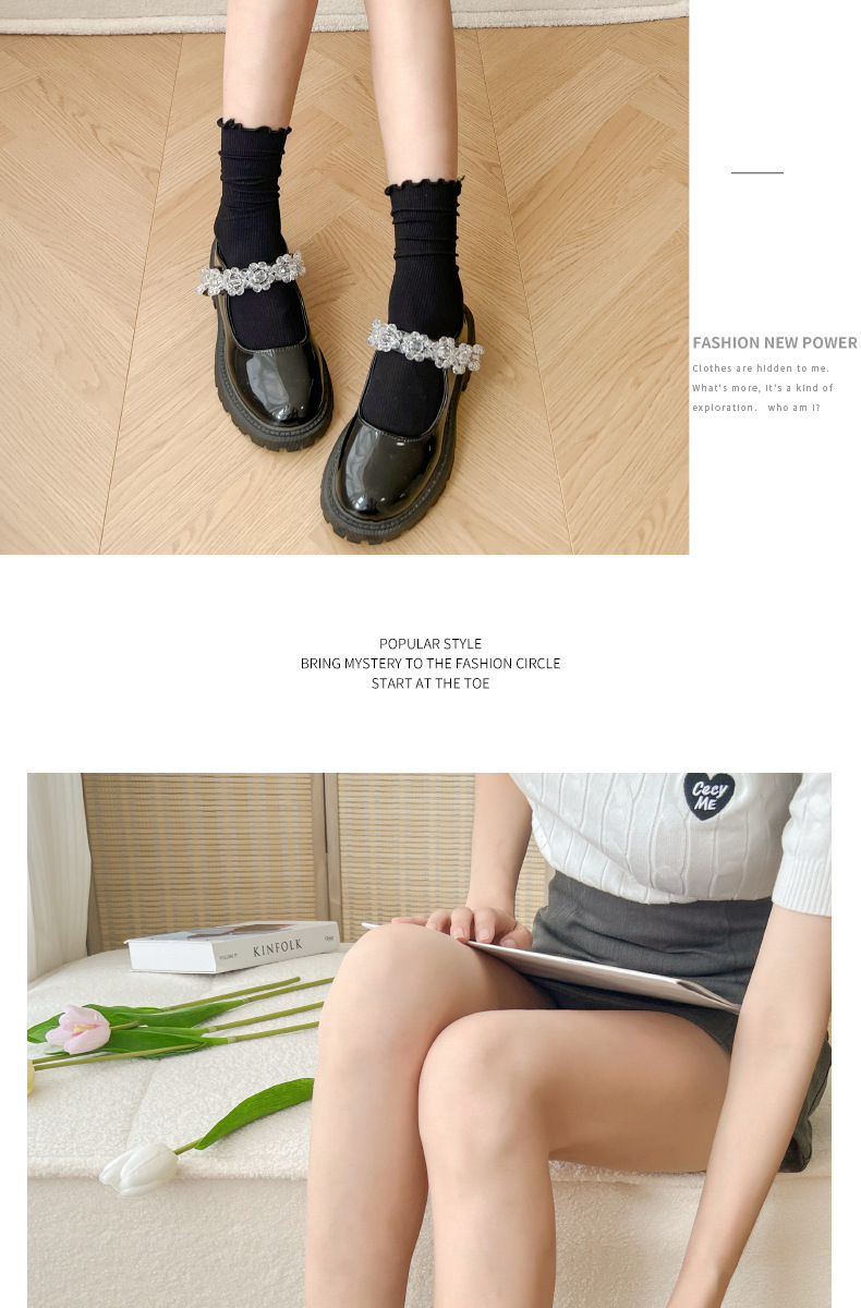 冰冰袜木耳边袜子夏季透气凉感冰丝袜中筒黑白月子袜花边堆堆袜女