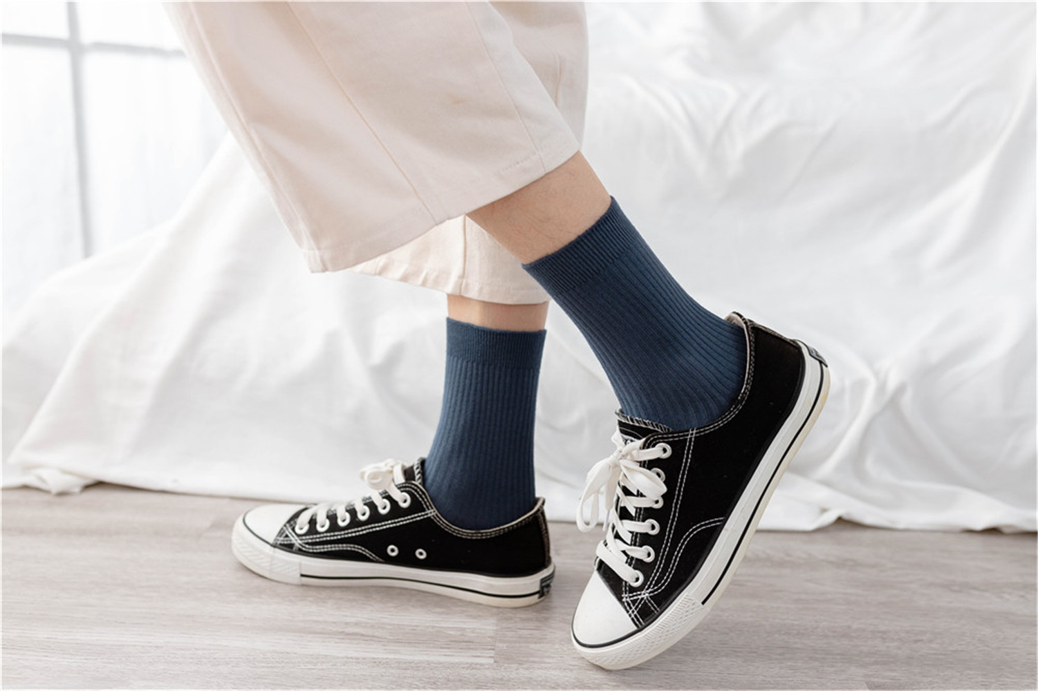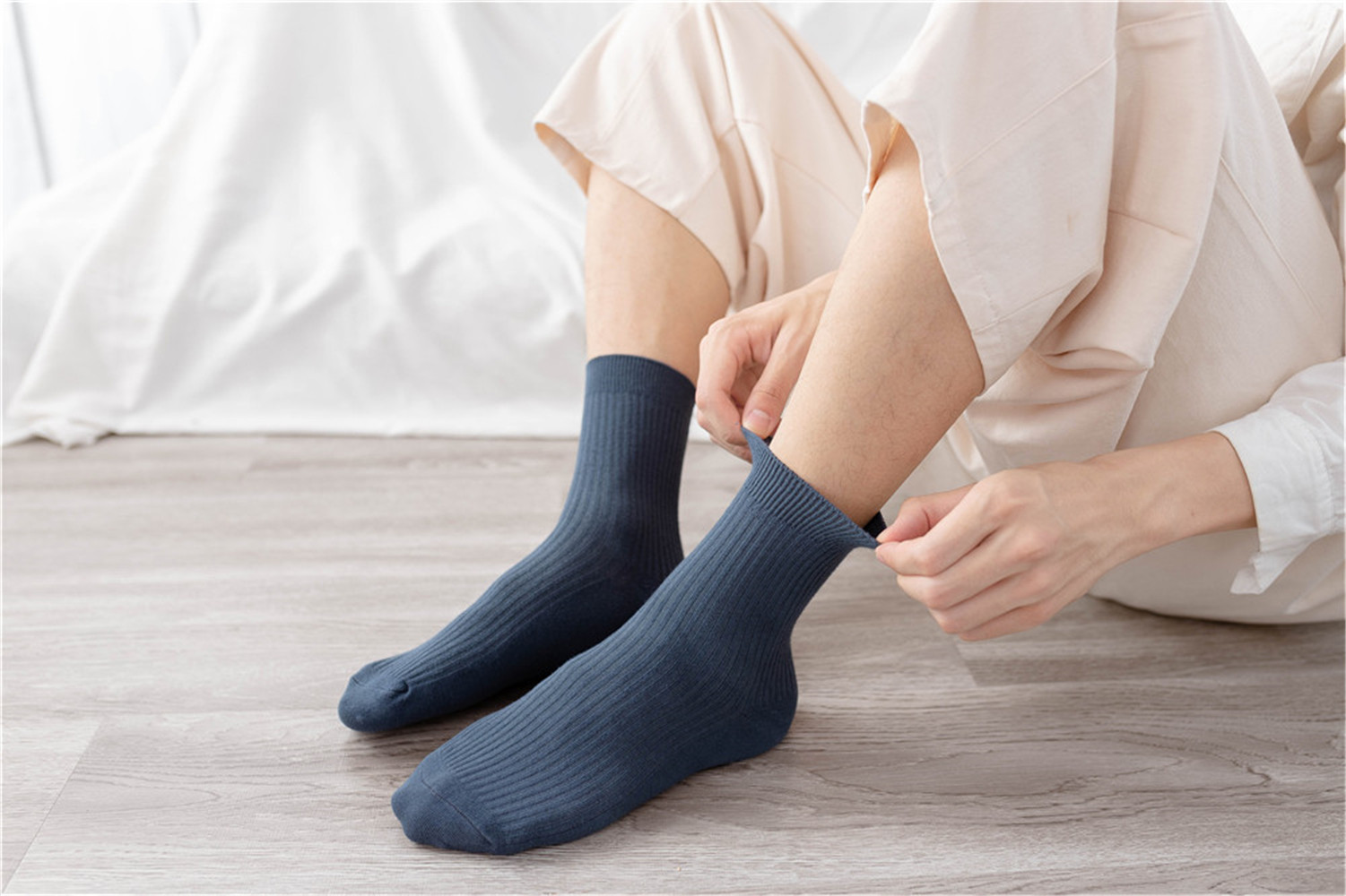 纯棉双针吸汗中筒袜男纯棉袜子男女袜子中筒双针里面全棉袜子厂家