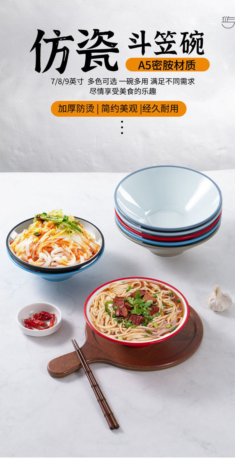 北欧斗笠碗密胺仿瓷餐具创意特色面馆拌面商用拉面碗塑料饭碗菜碗