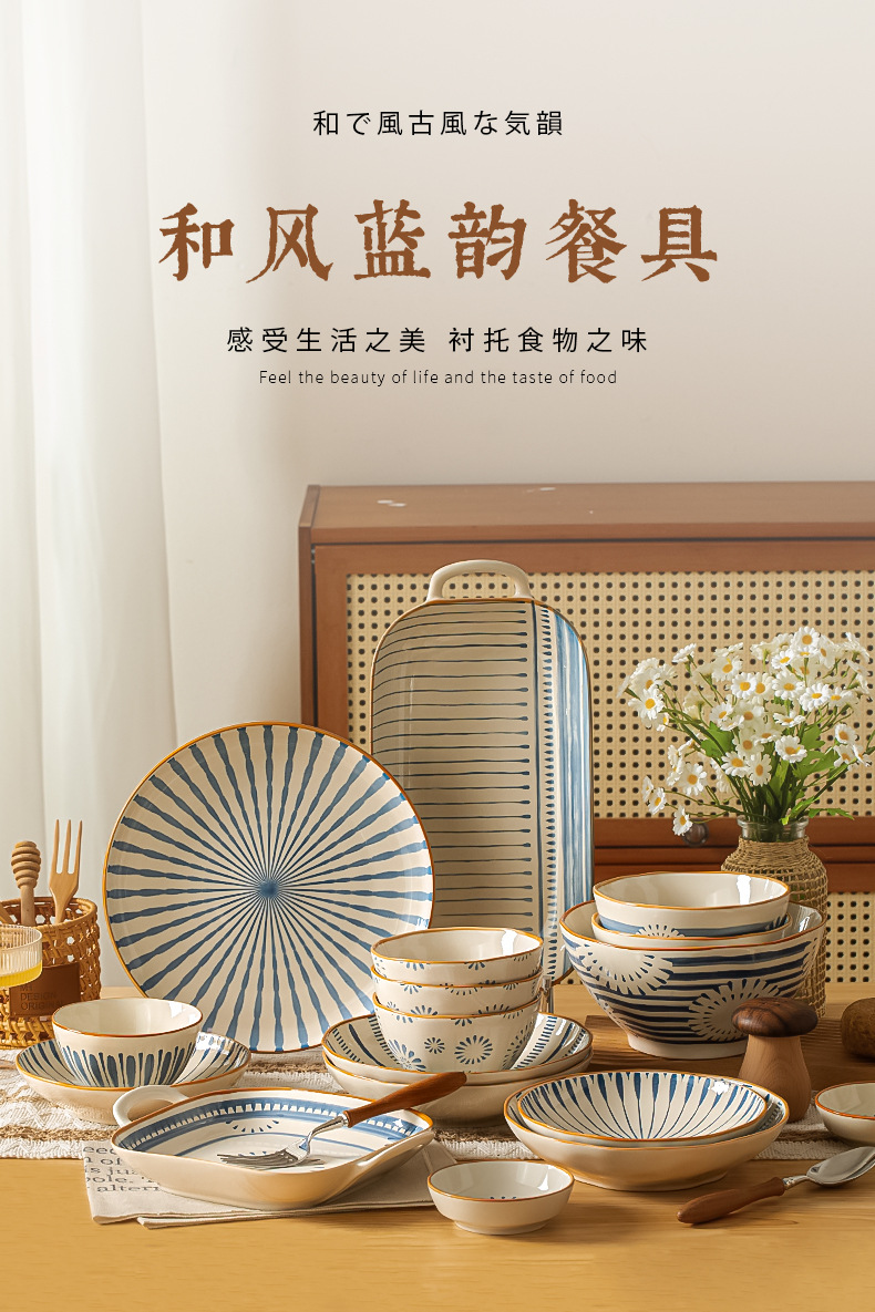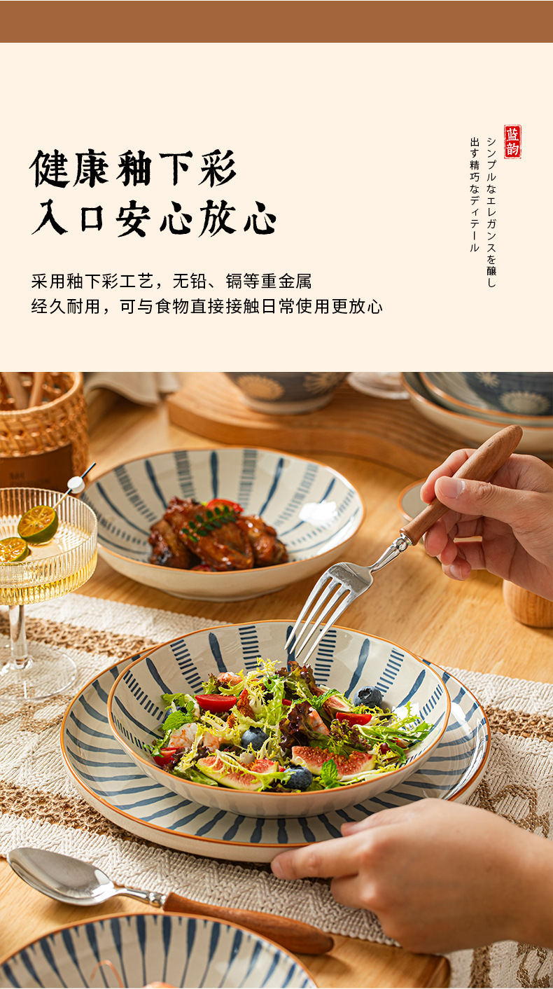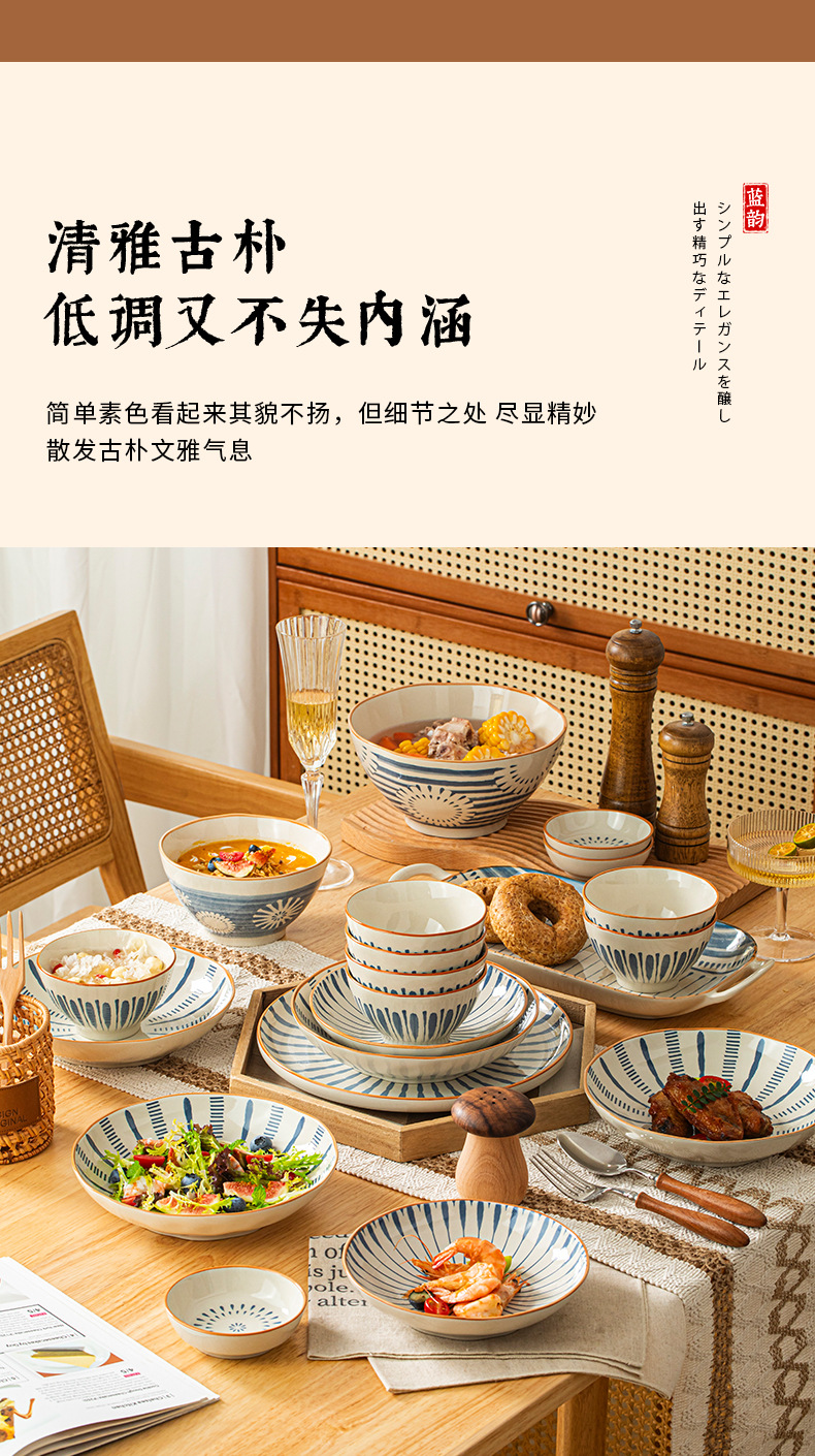 日式餐具套装家用饭碗盘网红釉下彩碗筷汤碗盘子送礼陶瓷碗碟套装