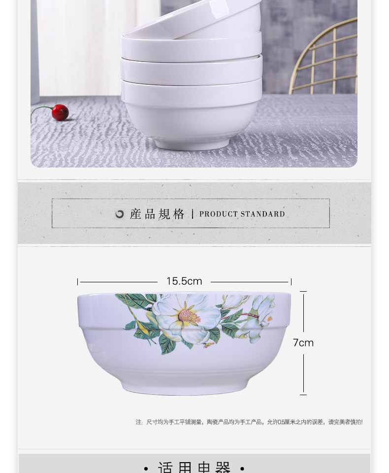6个6英寸面碗 景德镇陶瓷泡面碗大汤碗家用餐具组合大饭碗 可王涛