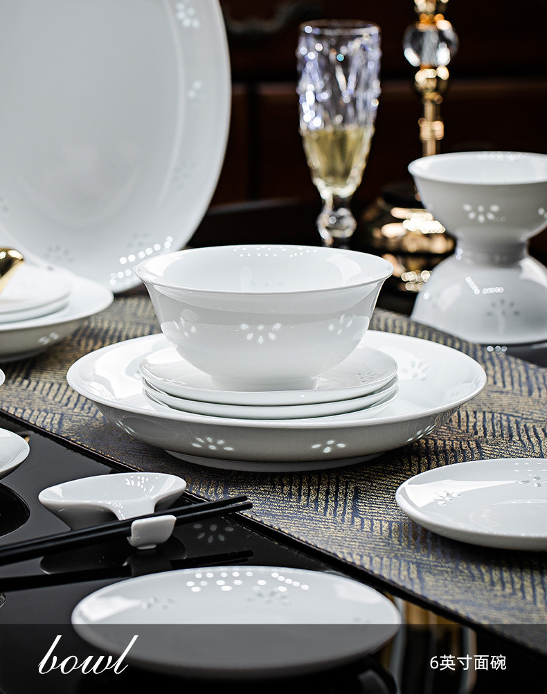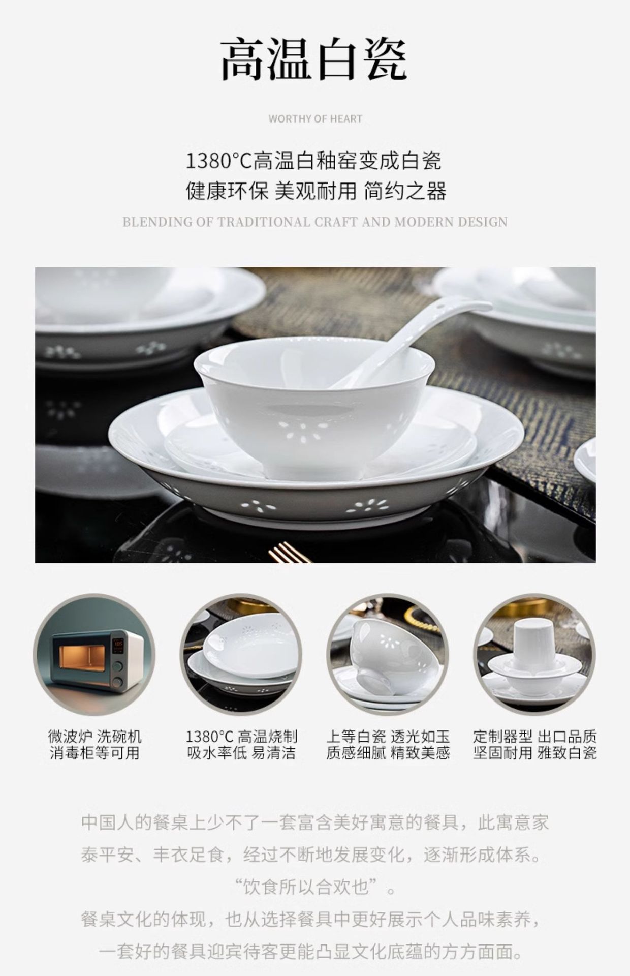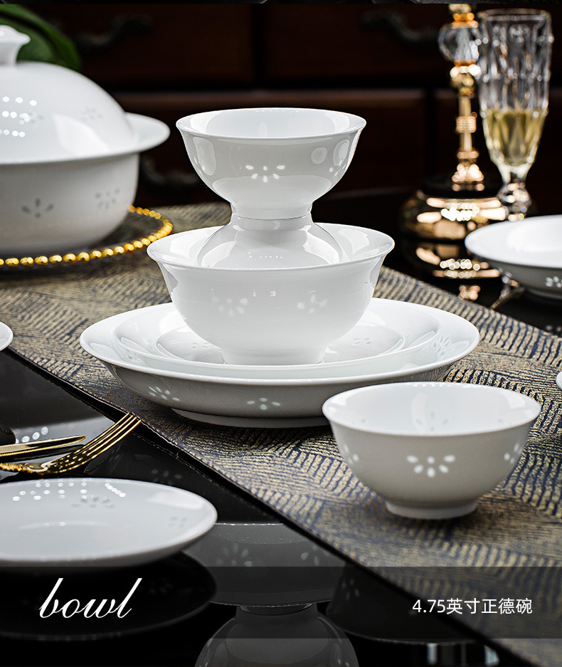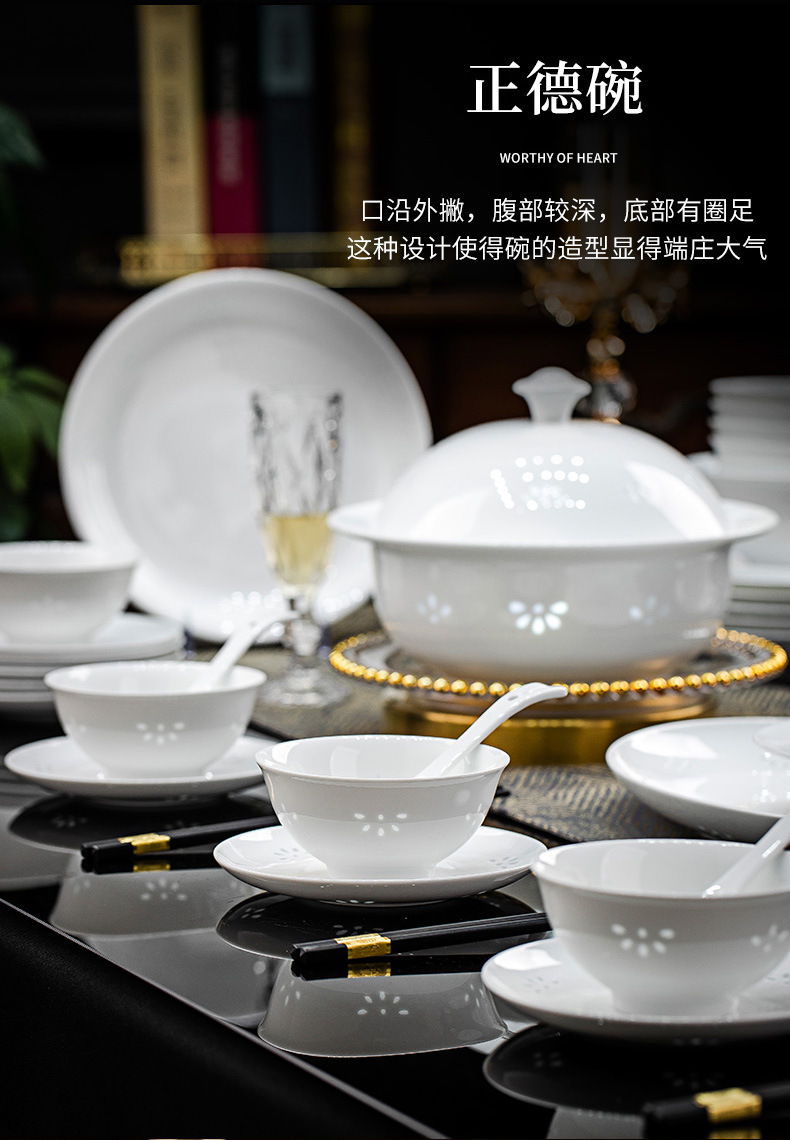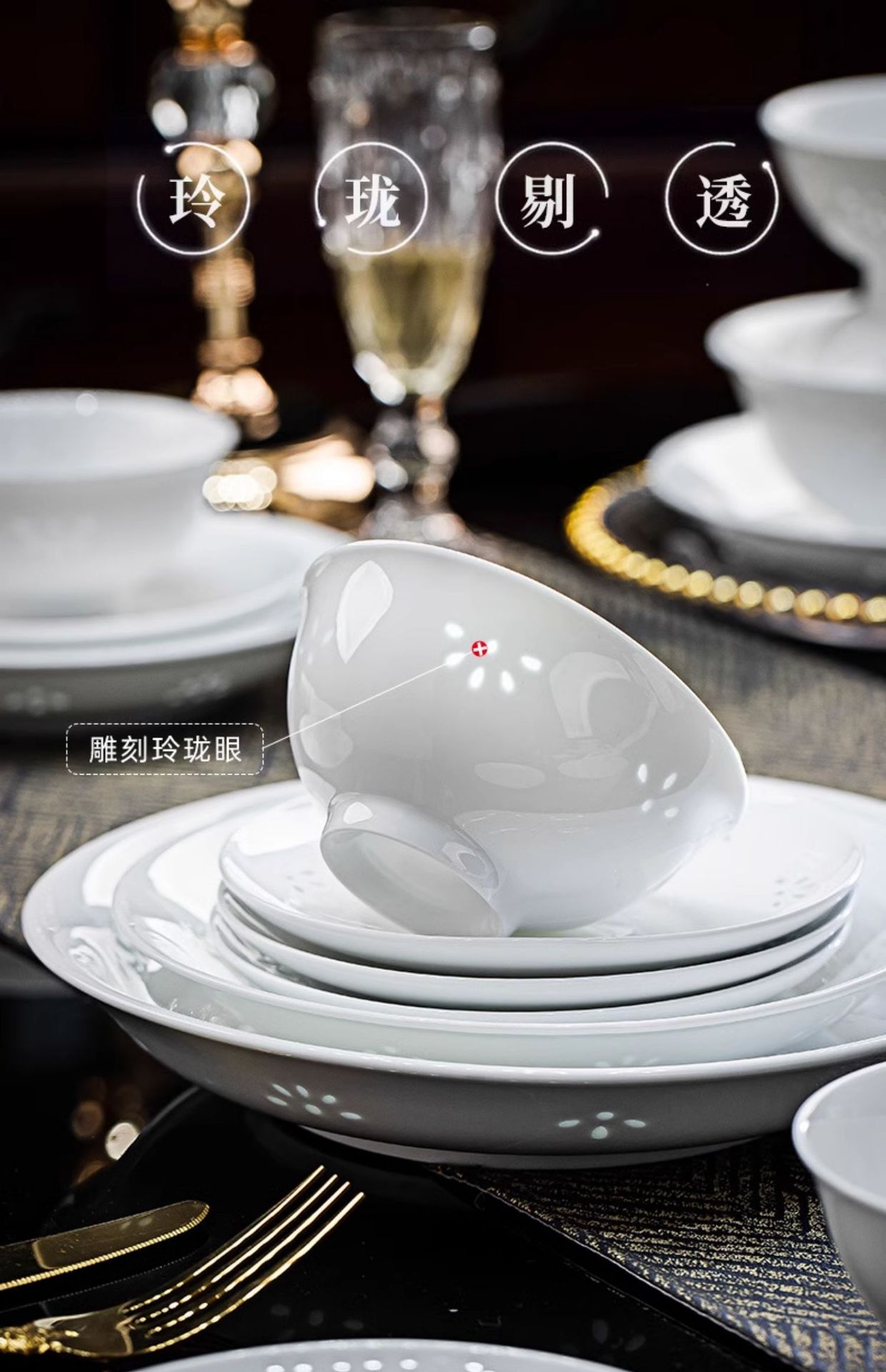 景德镇纯白玲珑餐具家用高温高白瓷碗盘碟高档玲珑瓷餐具可定制