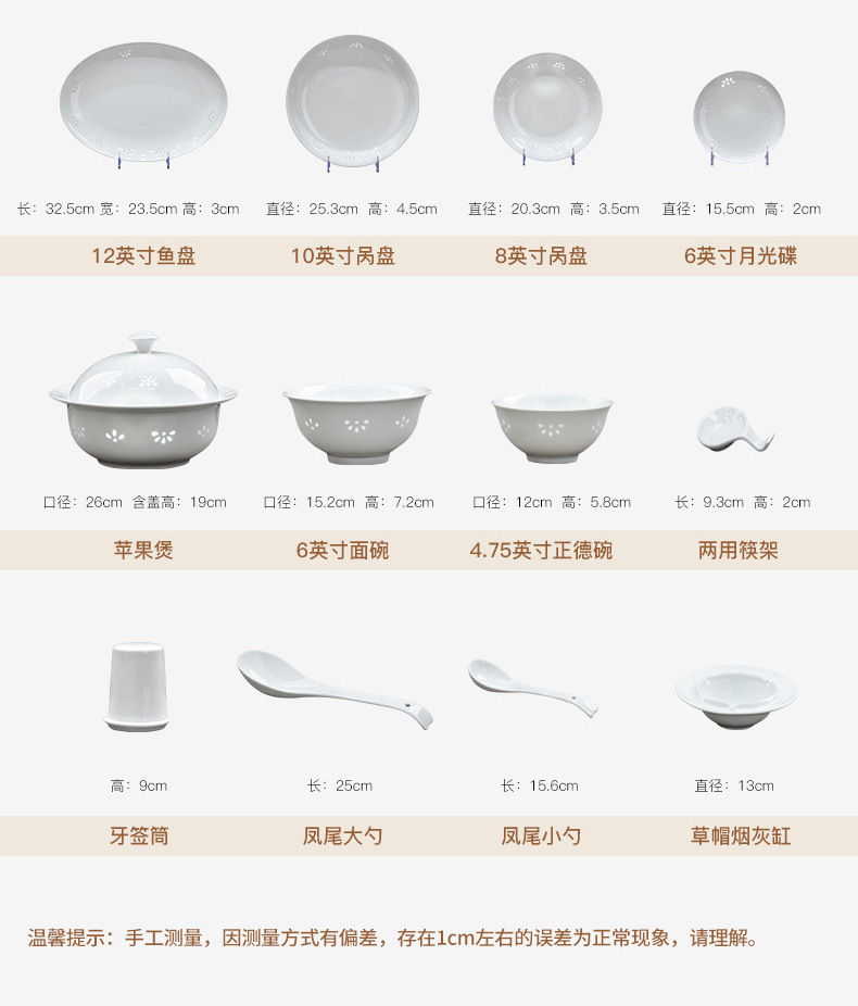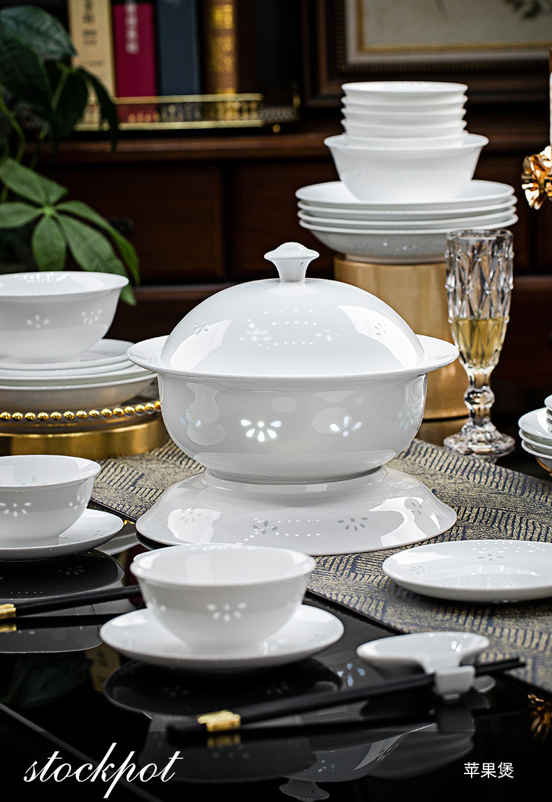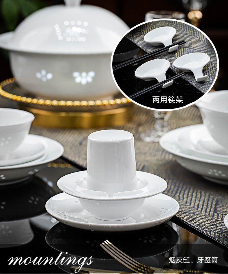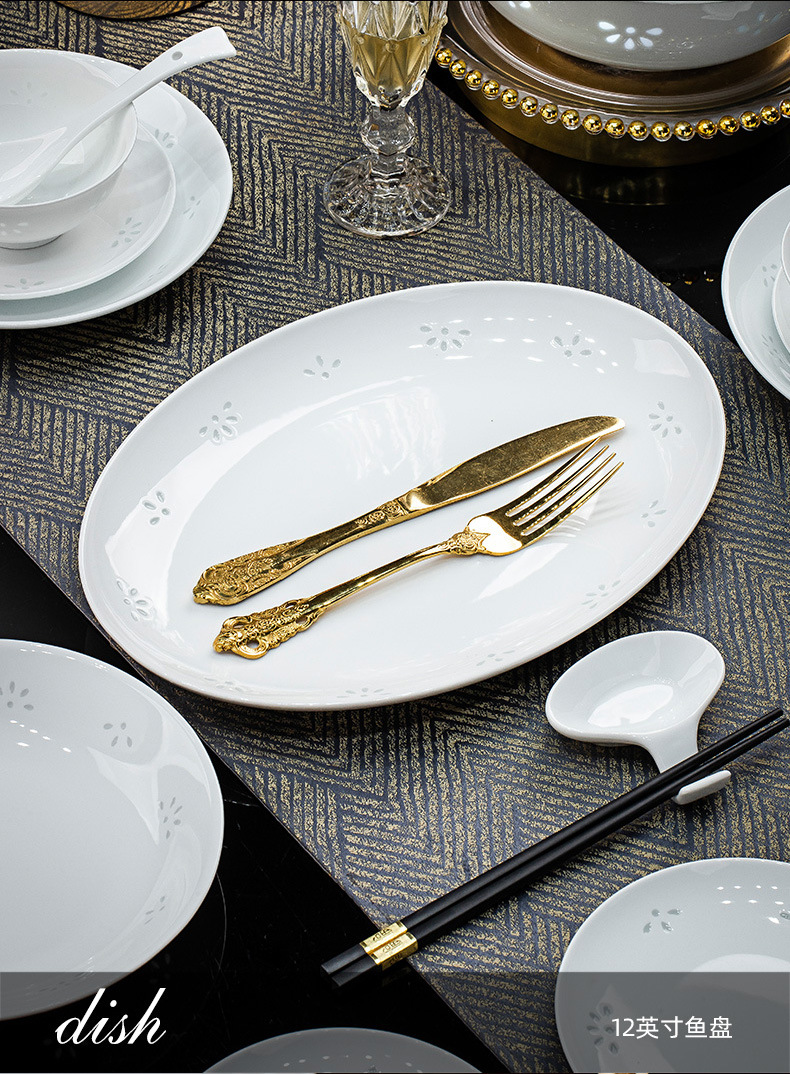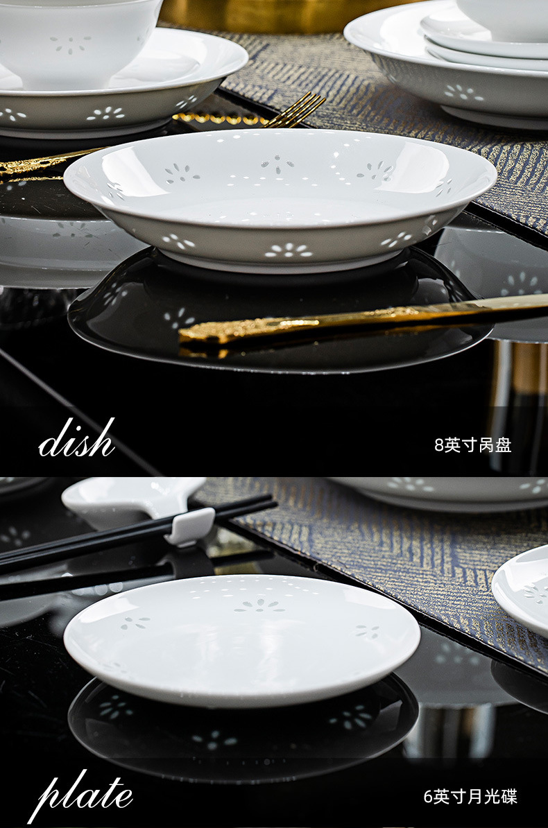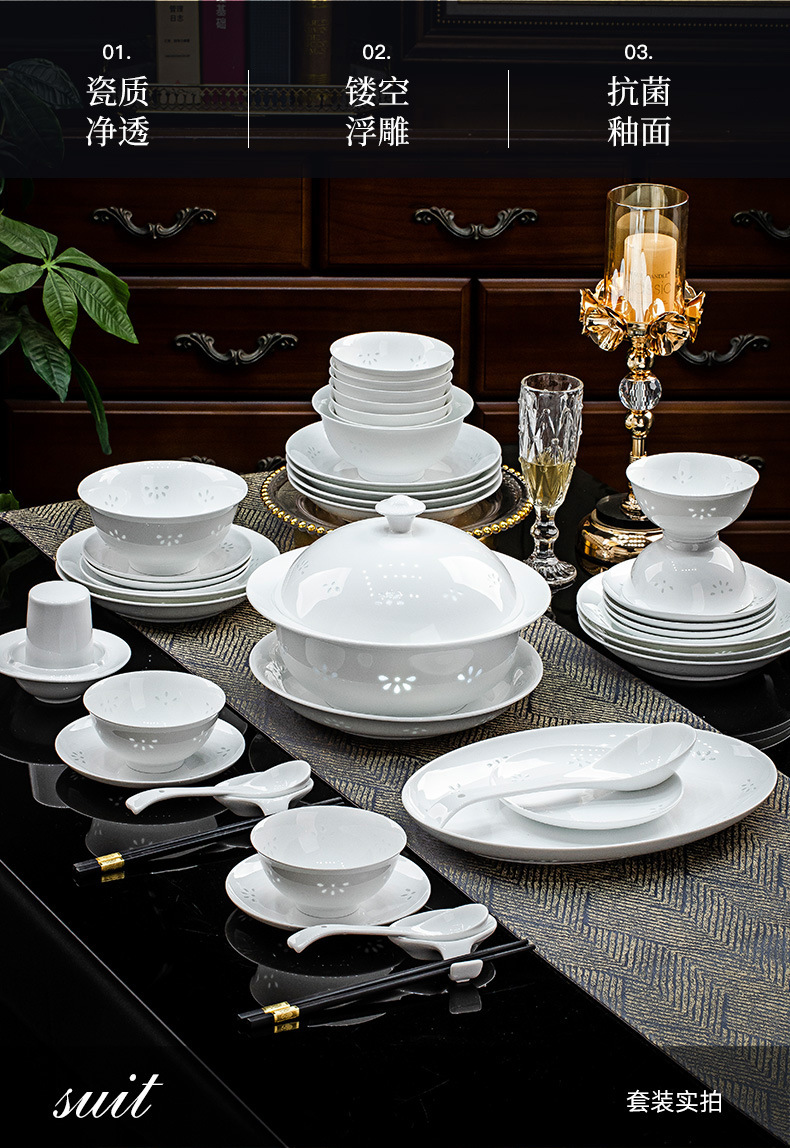 景德镇纯白玲珑餐具家用高温高白瓷碗盘碟高档玲珑瓷餐具可定制