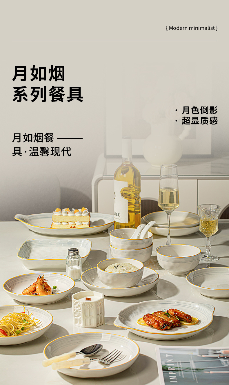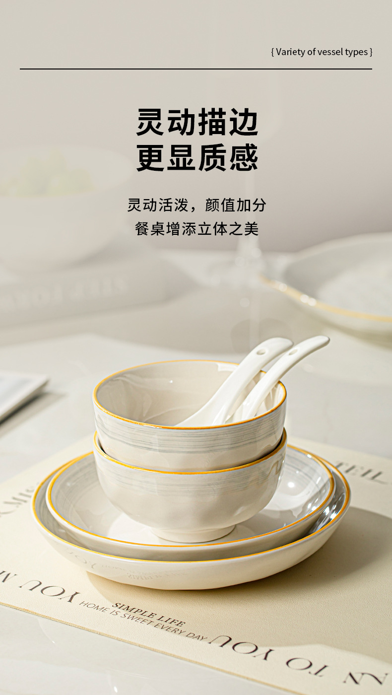 碗碟餐具套装高颜值釉下彩陶瓷碗盘家用乔迁轻奢饭碗乔迁餐具批发