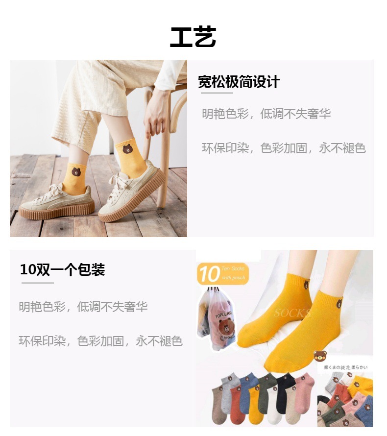 厂货夏季小熊袜子时尚成人男女学生短薄款潮流袜批发独立包装袜子
