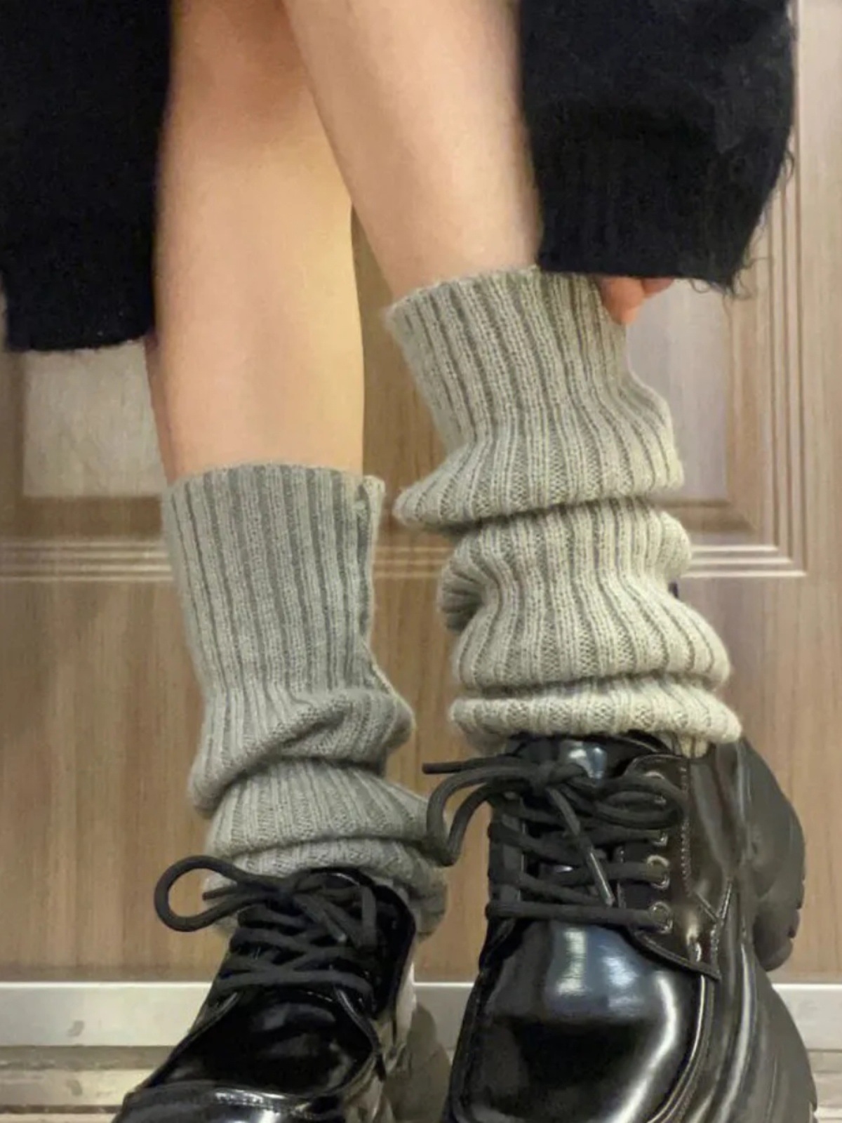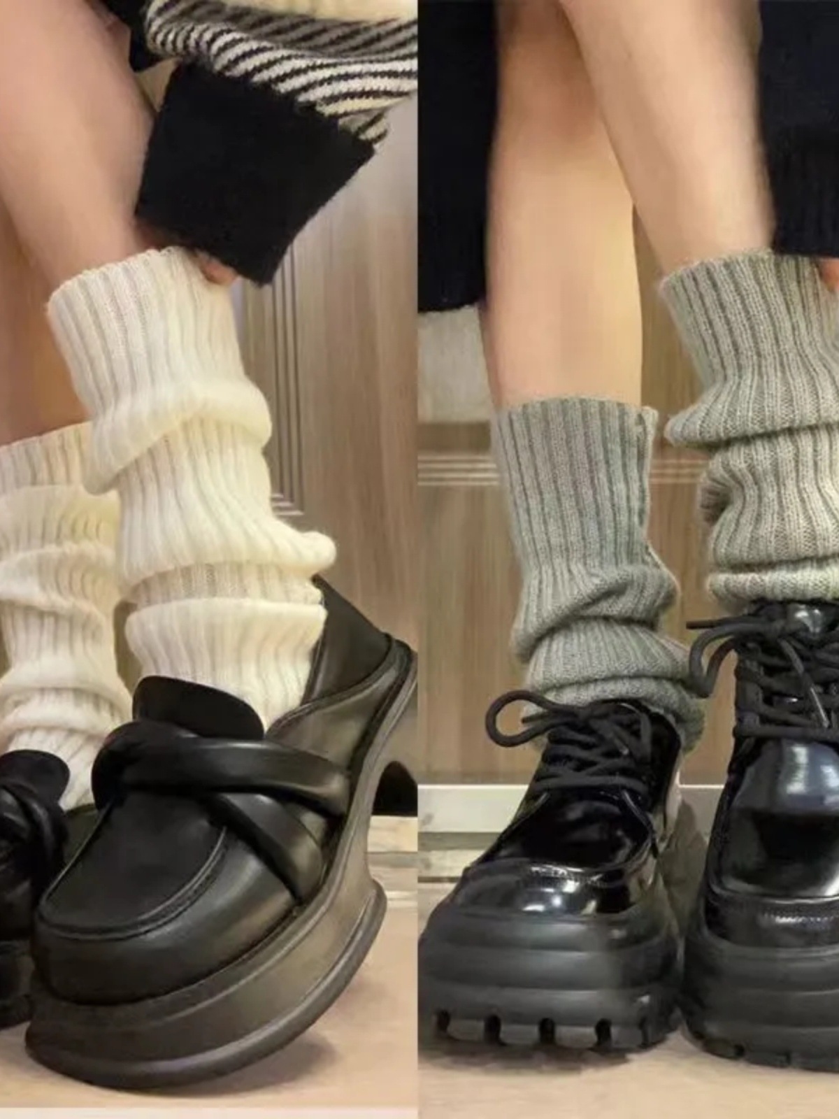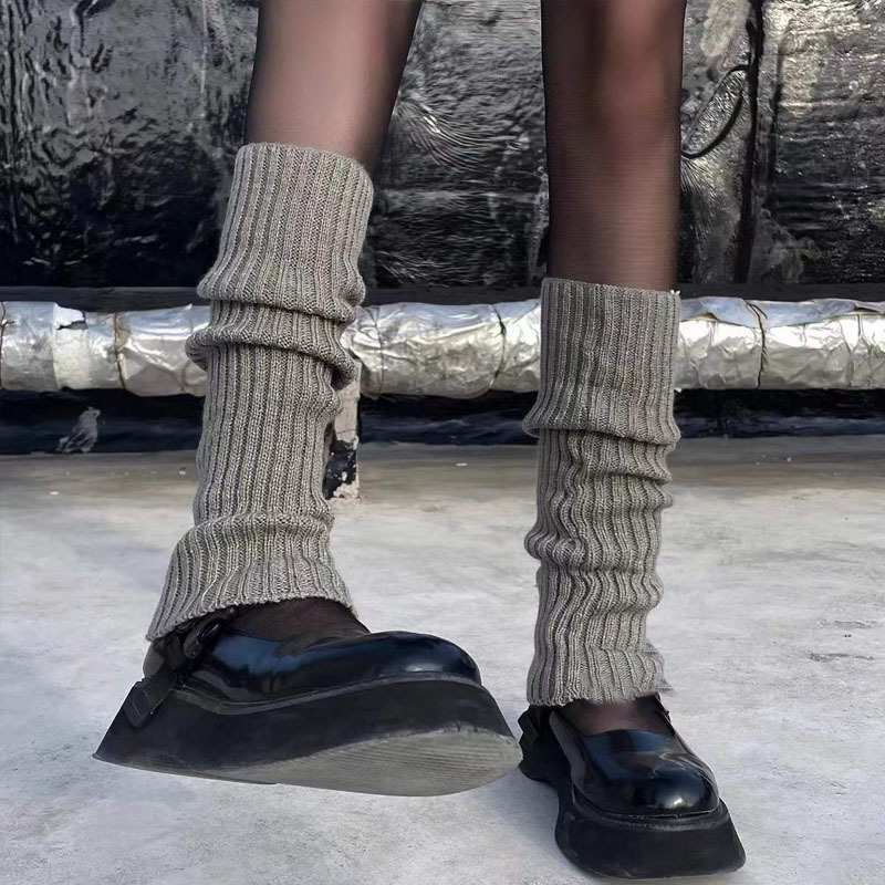 辣妹针织堆堆袜套灰腿套洛丽塔竖条jk白色长筒网红潮中筒袜女y2k