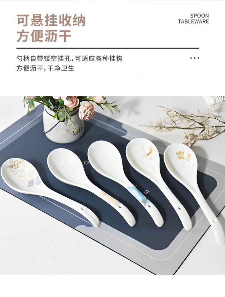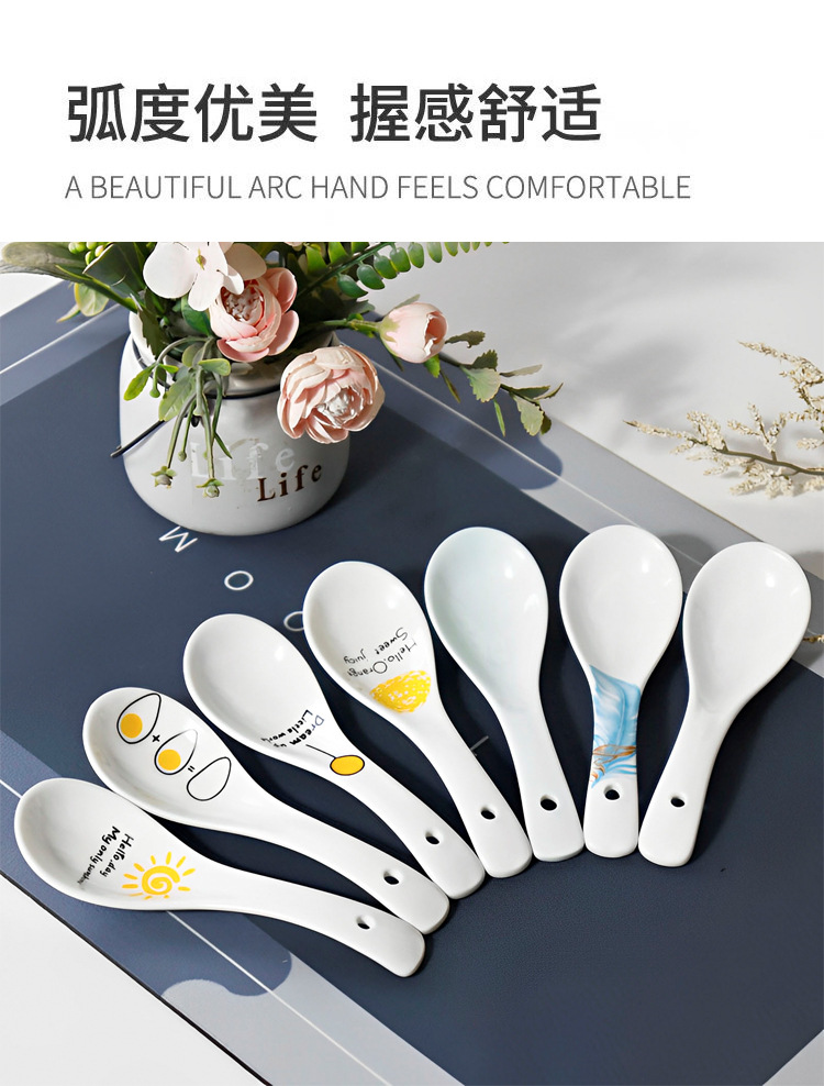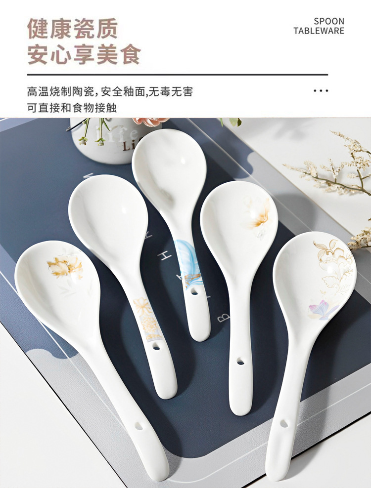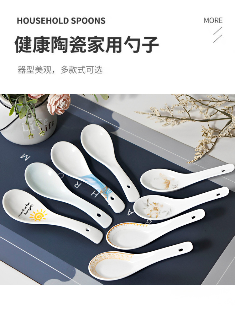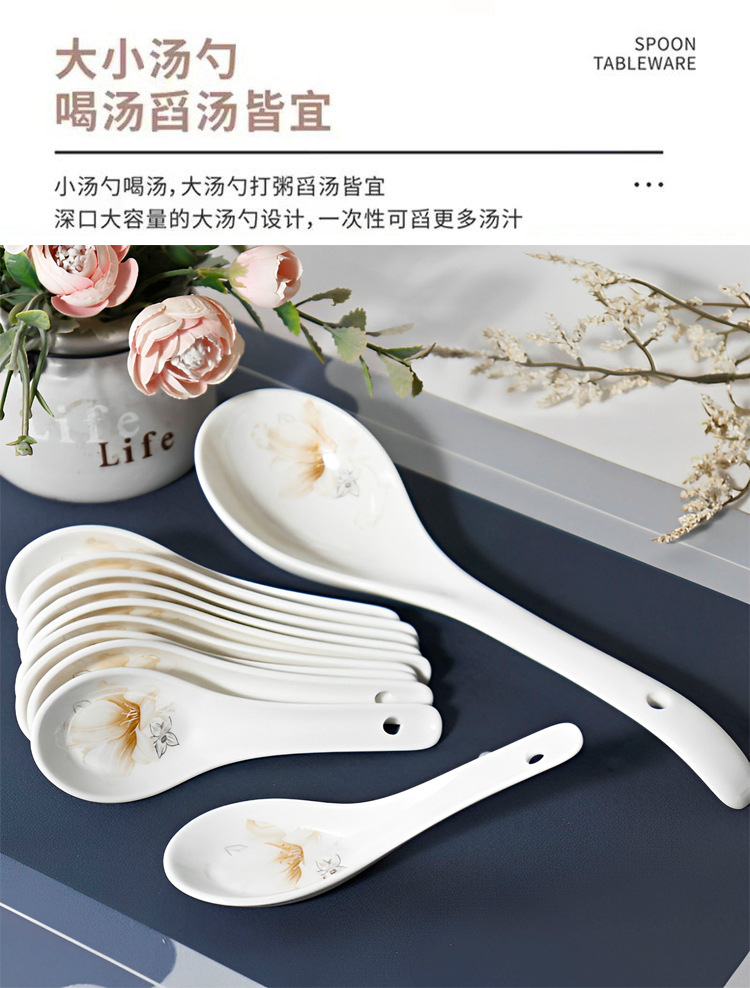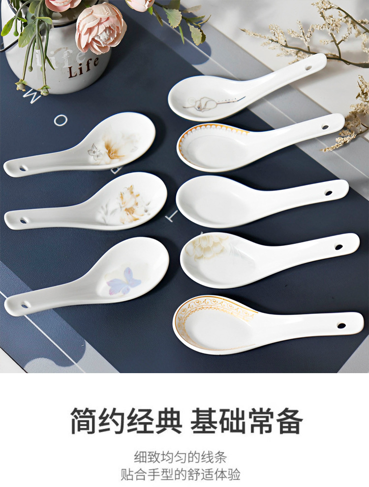 包邮10个陶瓷小勺子家用中式简约小勺大汤勺酒店吃饭喝汤调羹量勺