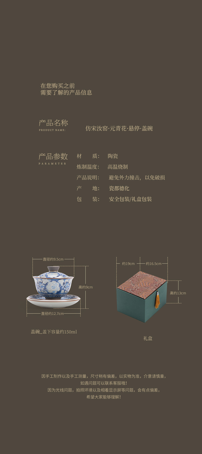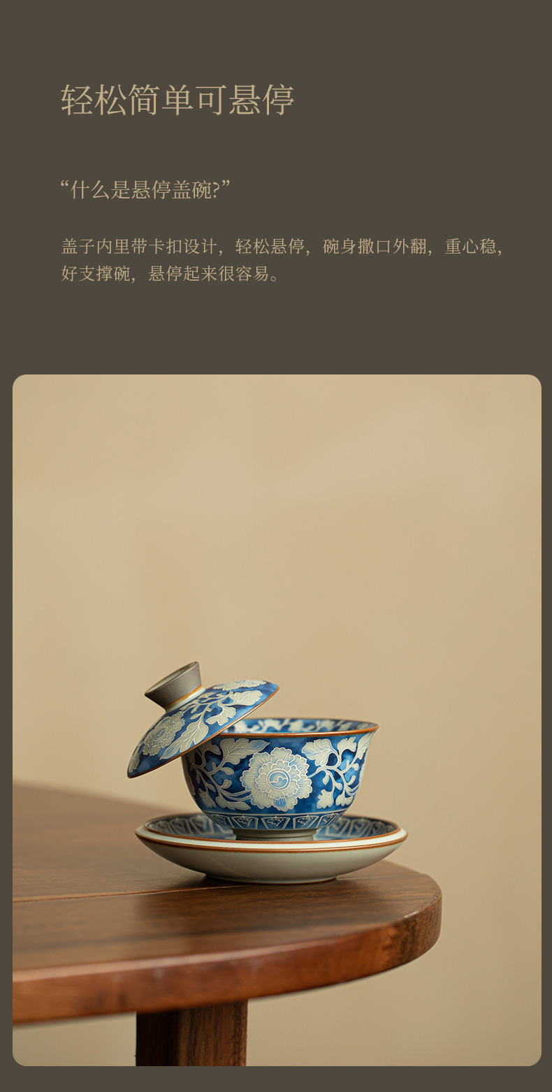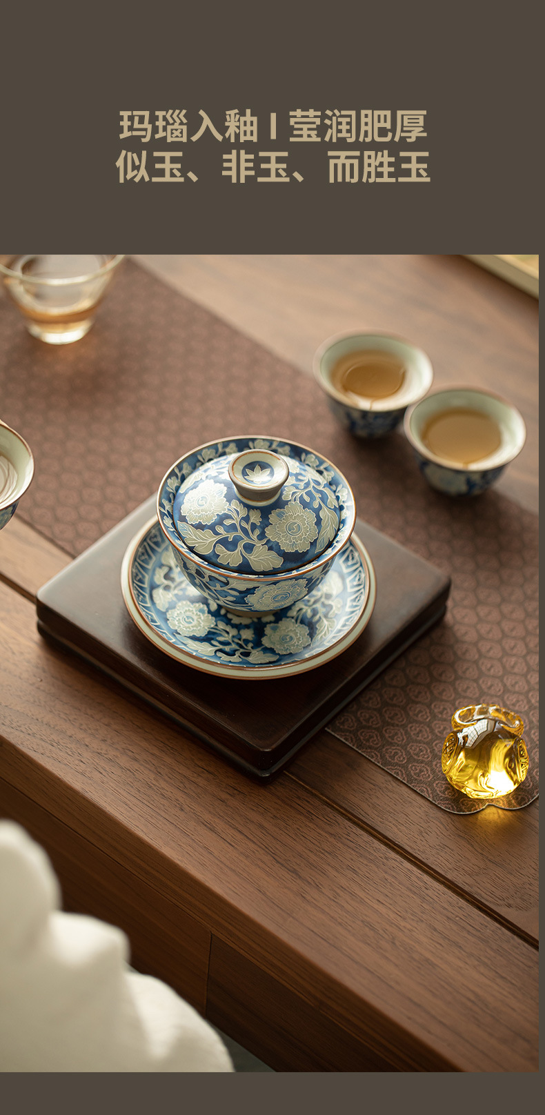 景德镇汝窑元青花三才盖碗陶瓷茶具元宝盖碗泡茶碗闷茶碗开片可养