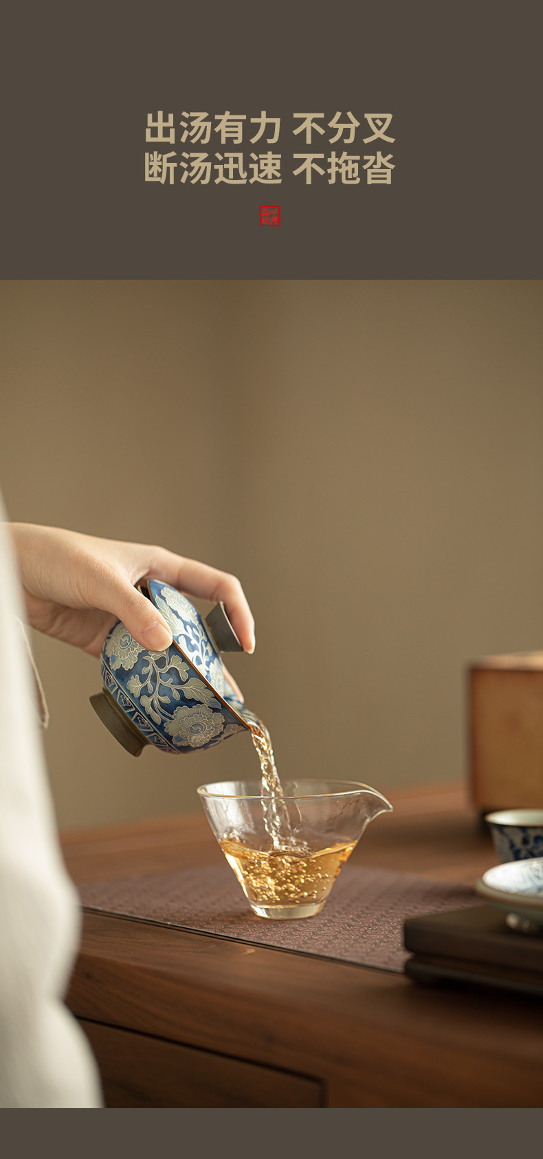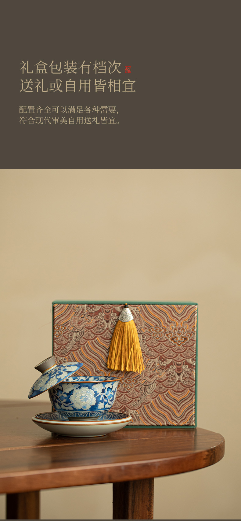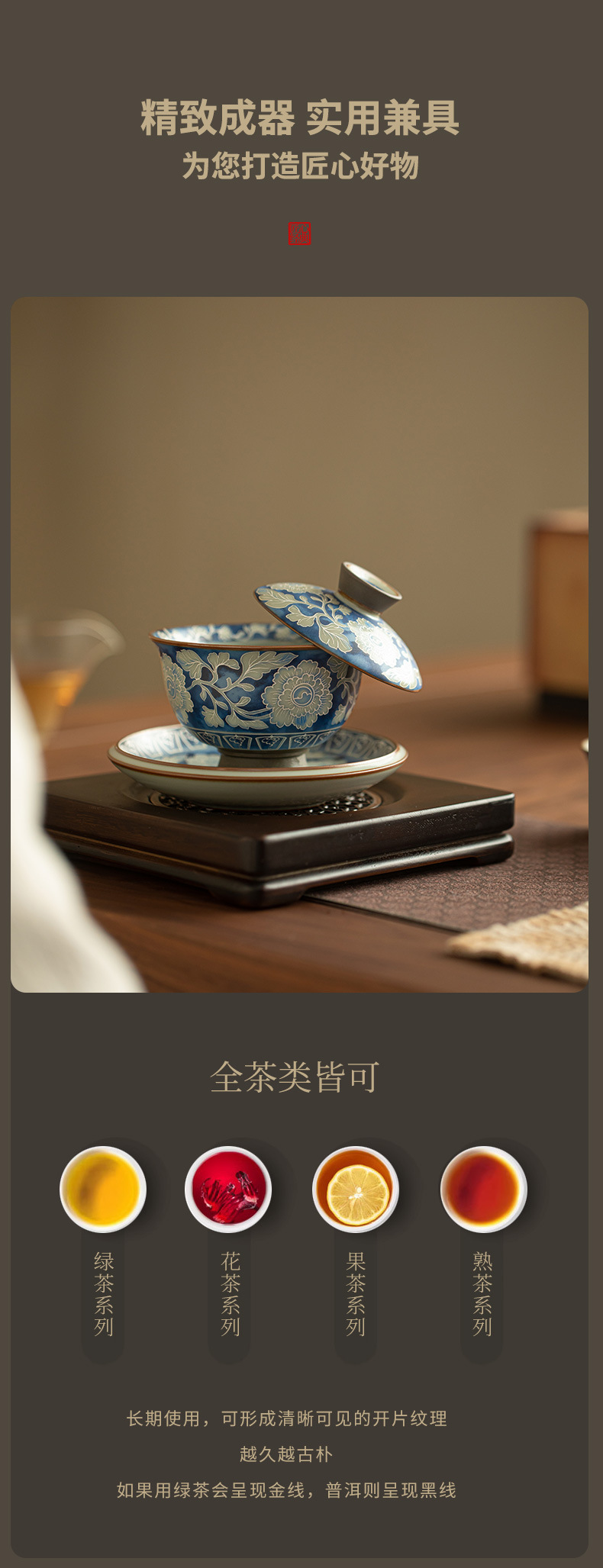 景德镇汝窑元青花三才盖碗陶瓷茶具元宝盖碗泡茶碗闷茶碗开片可养