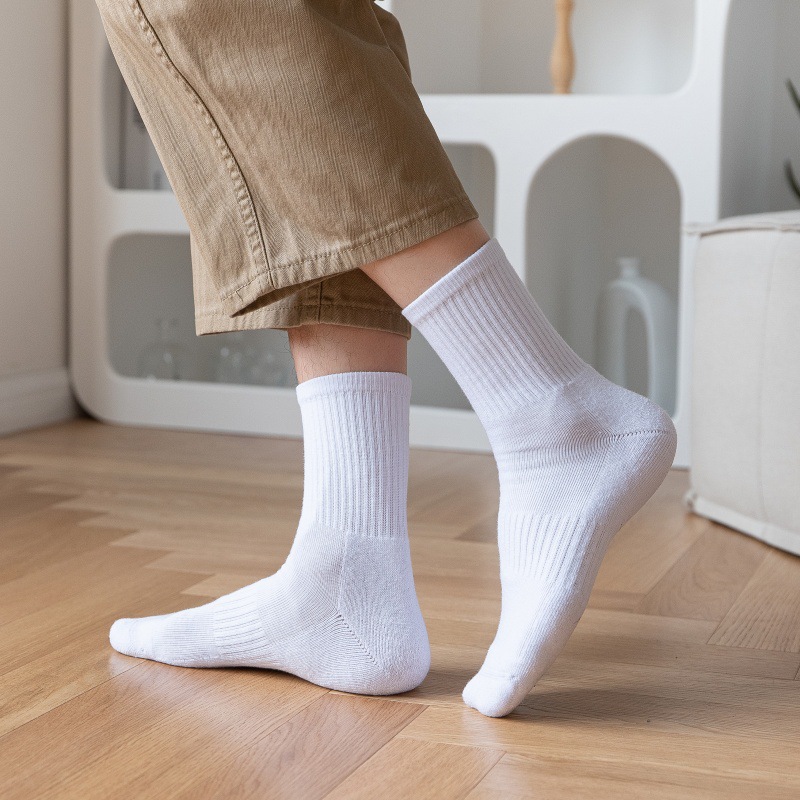 纯棉毛巾底中筒袜加厚运动篮球白色长袜透气吸汗男女纯棉袜子厂家