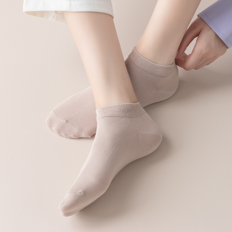 PL长绒棉袜四季透气女士船袜纯棉春夏防滑不掉跟防臭吸汗袜子厂家