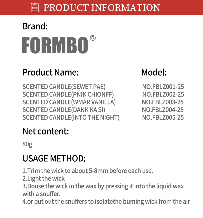 跨境专供 FORMBO香薰蜡烛无烟香氛家用室内卧室祛除异味熏香摆件