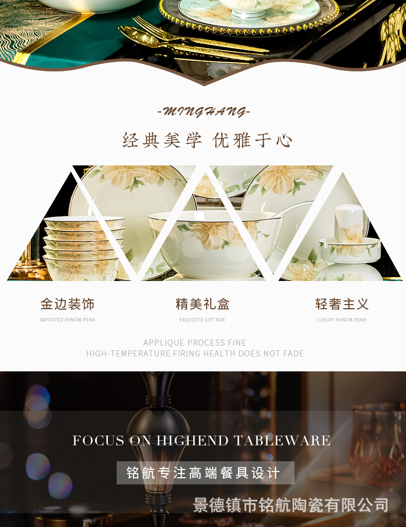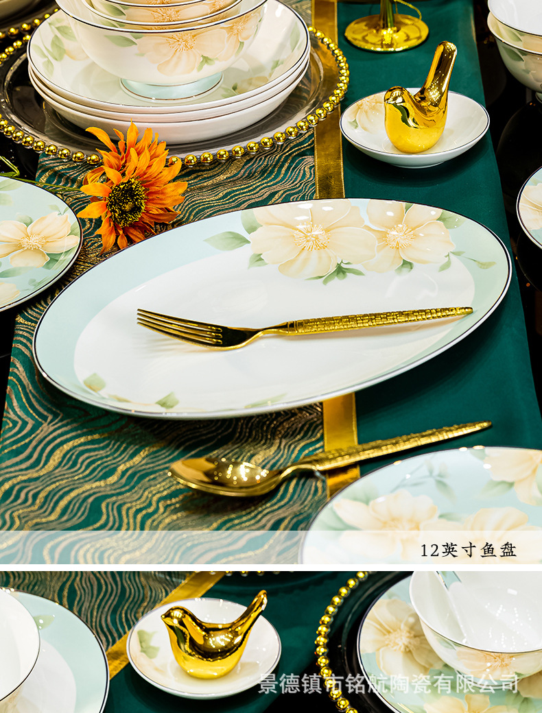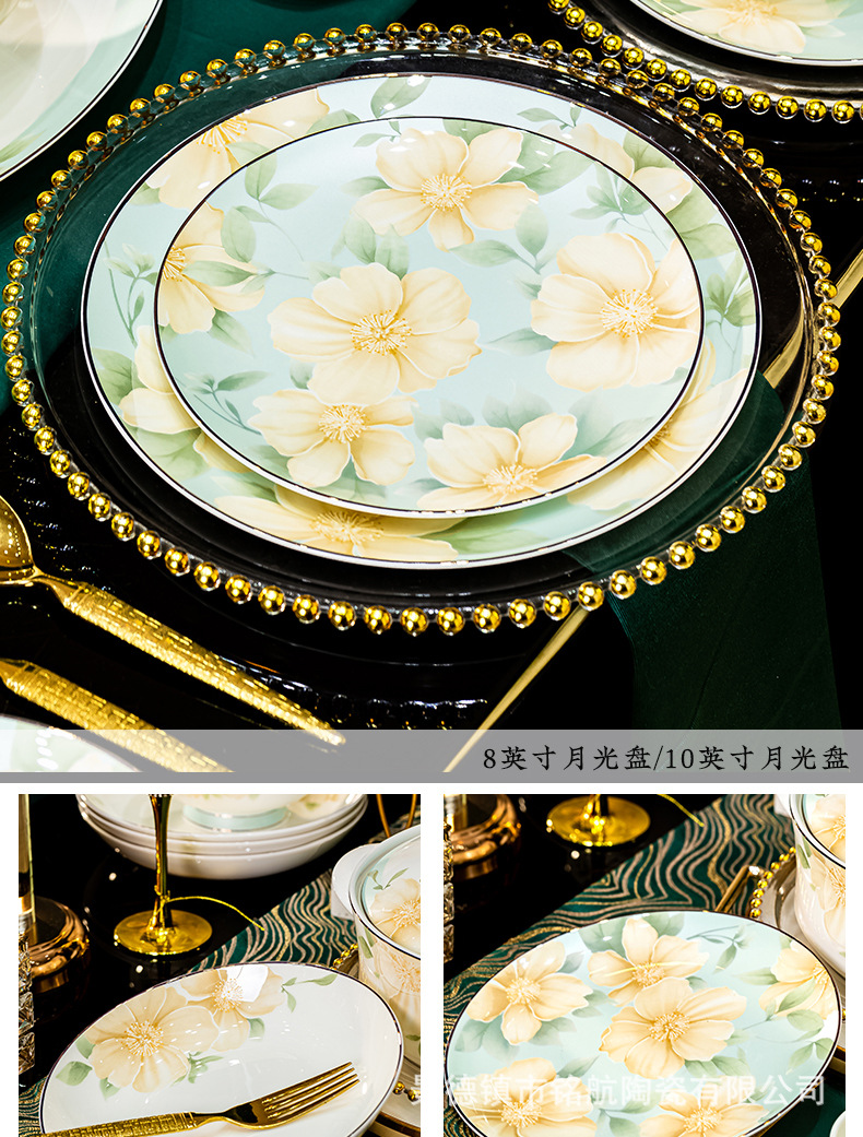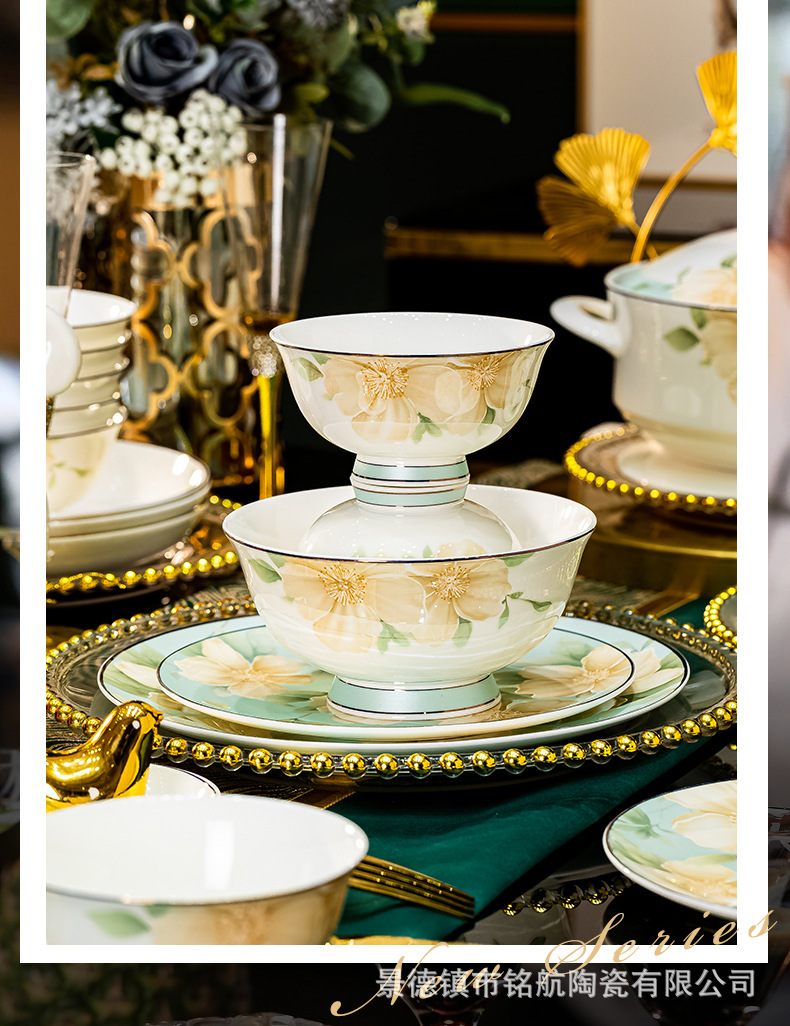 碗 盘 碟批发景德镇陶瓷骨瓷餐具套装家用轻奢碗碟饭碗全套礼品