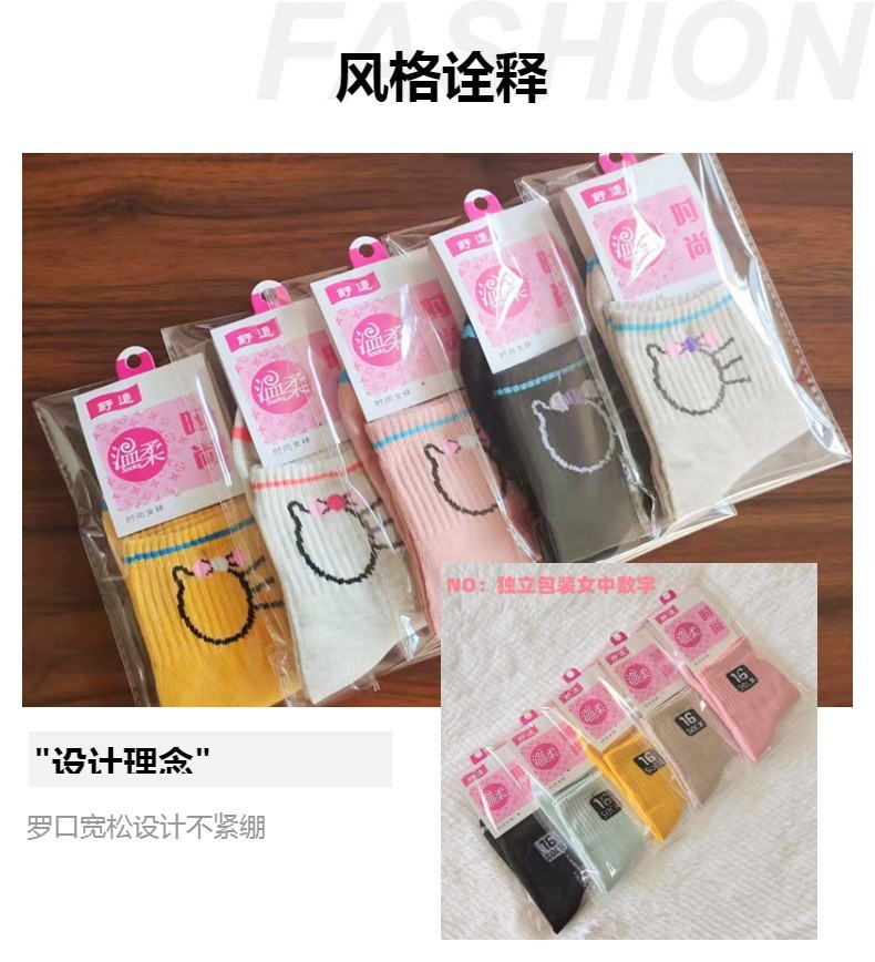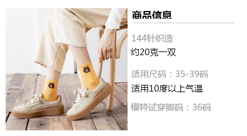 厂货薄款中筒小熊涤棉袜子ins卡通日系袜子批发工厂家
