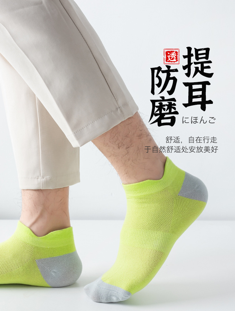 5双包邮纯棉袜子男士短袜夏季薄款低帮网眼船袜透气纯色运动袜子.