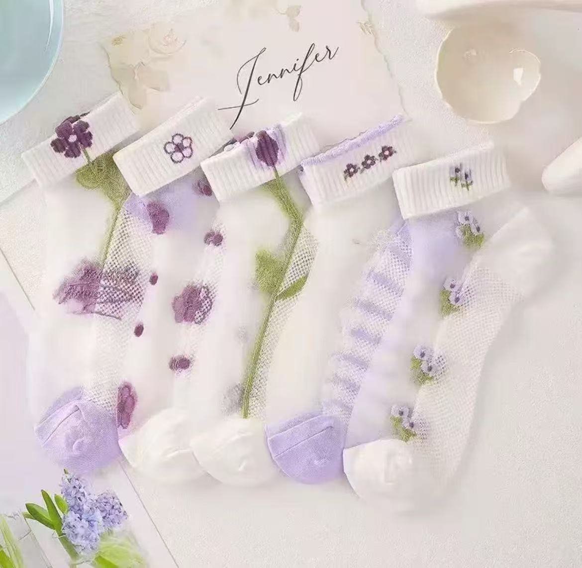 夏季女短袜薄款丝袜玻璃丝花边水晶船袜透气低帮浅口袜花朵卡丝袜