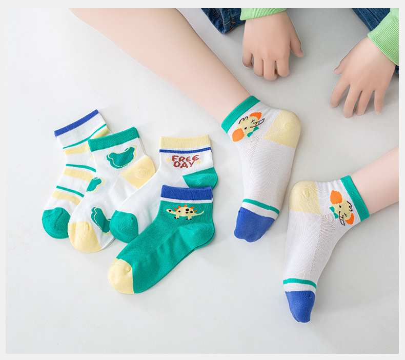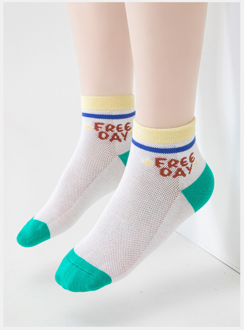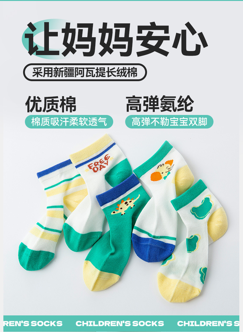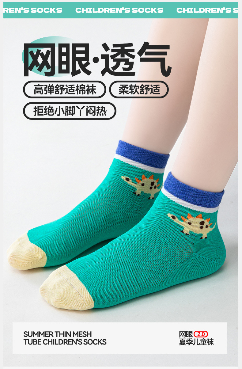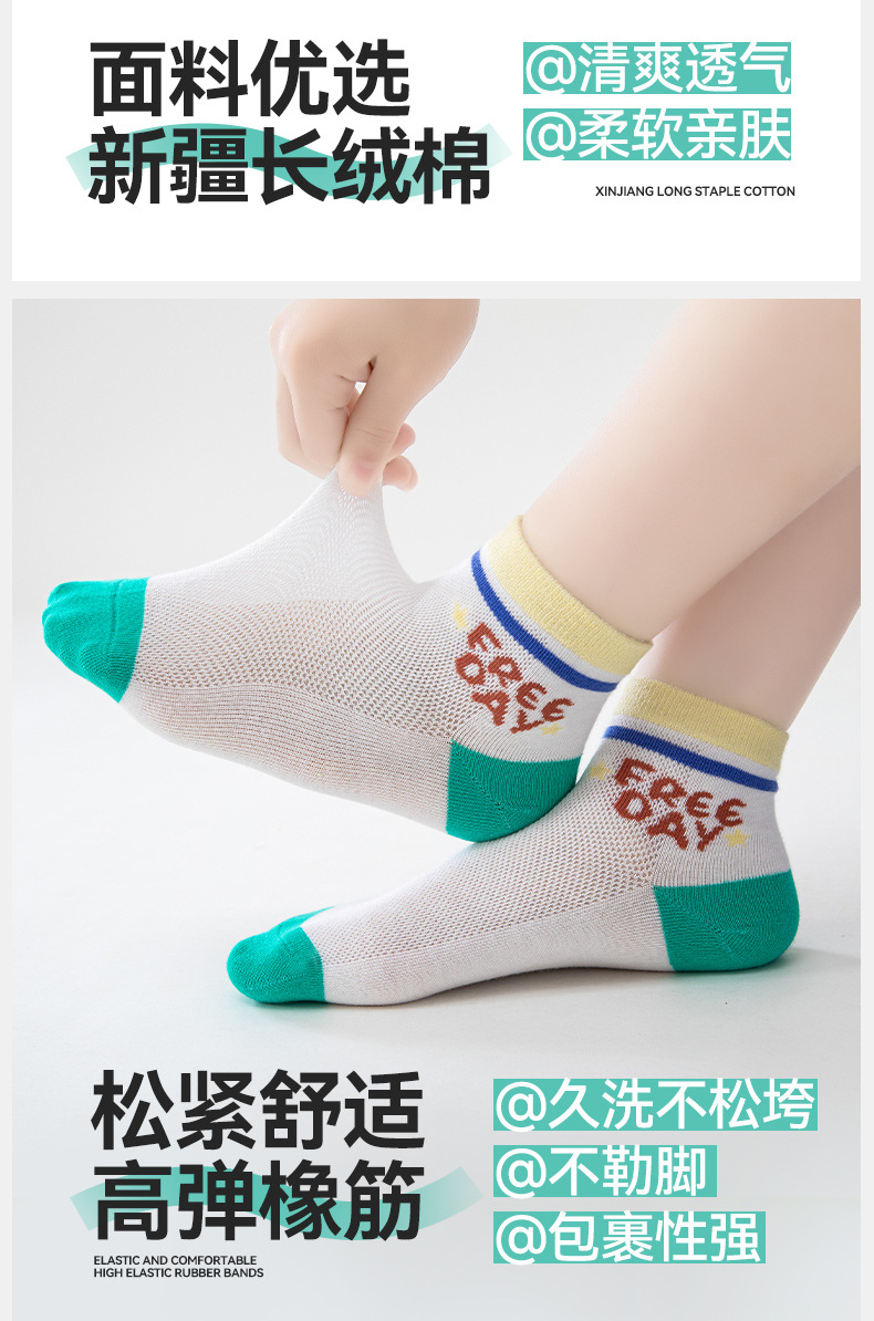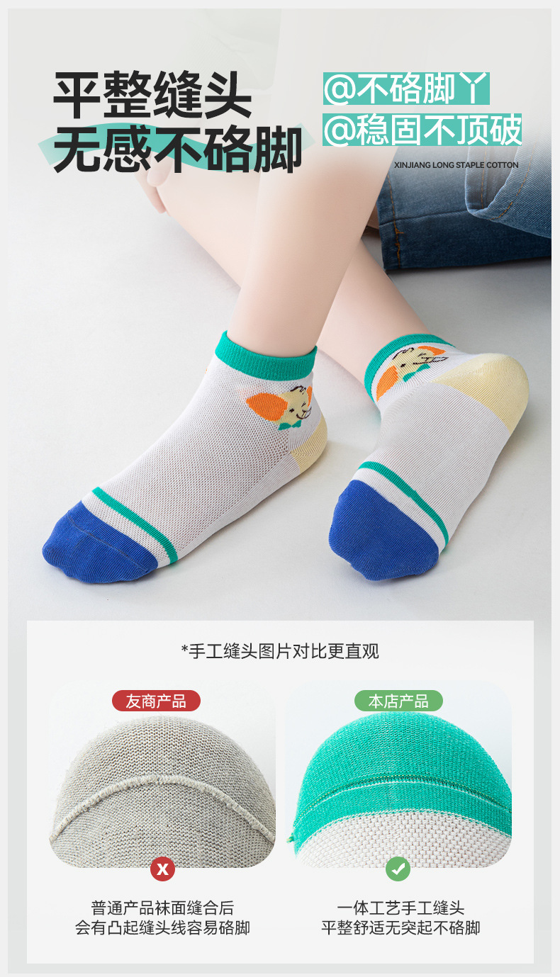 5双新款儿童纯棉袜子春夏超薄袜子网眼透气短袜男女宝宝船袜批发