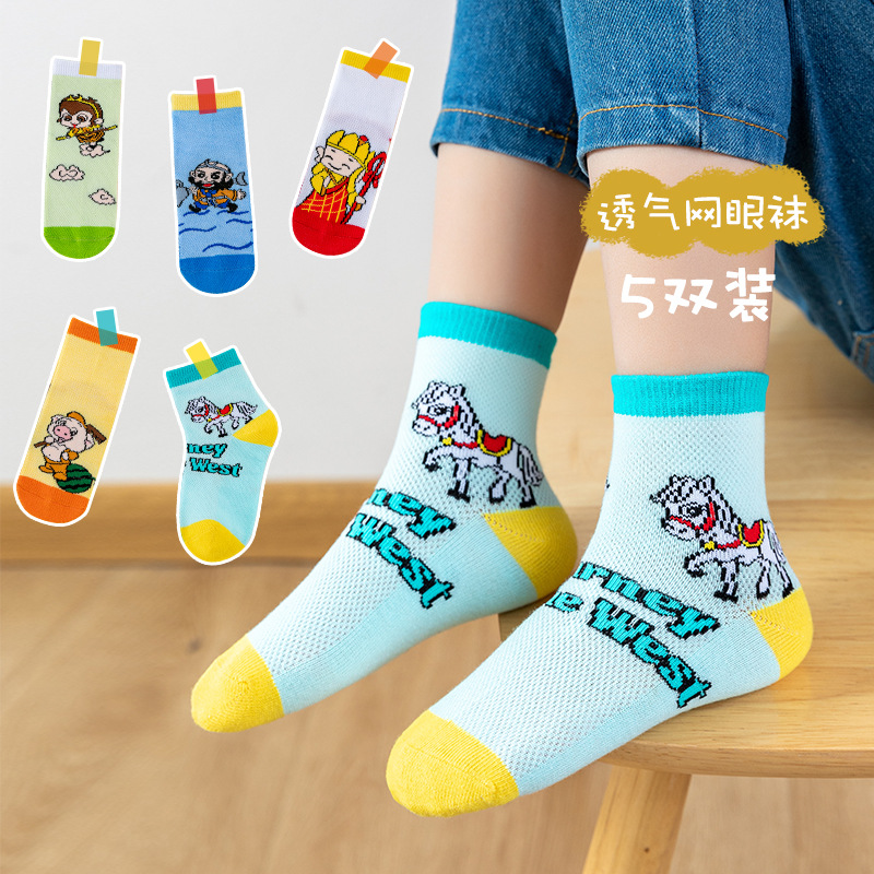 跨镜西游记儿童袜子春夏季薄款棉质网眼透气男童中大童春夏秋船袜