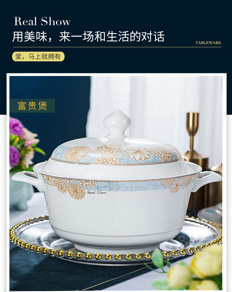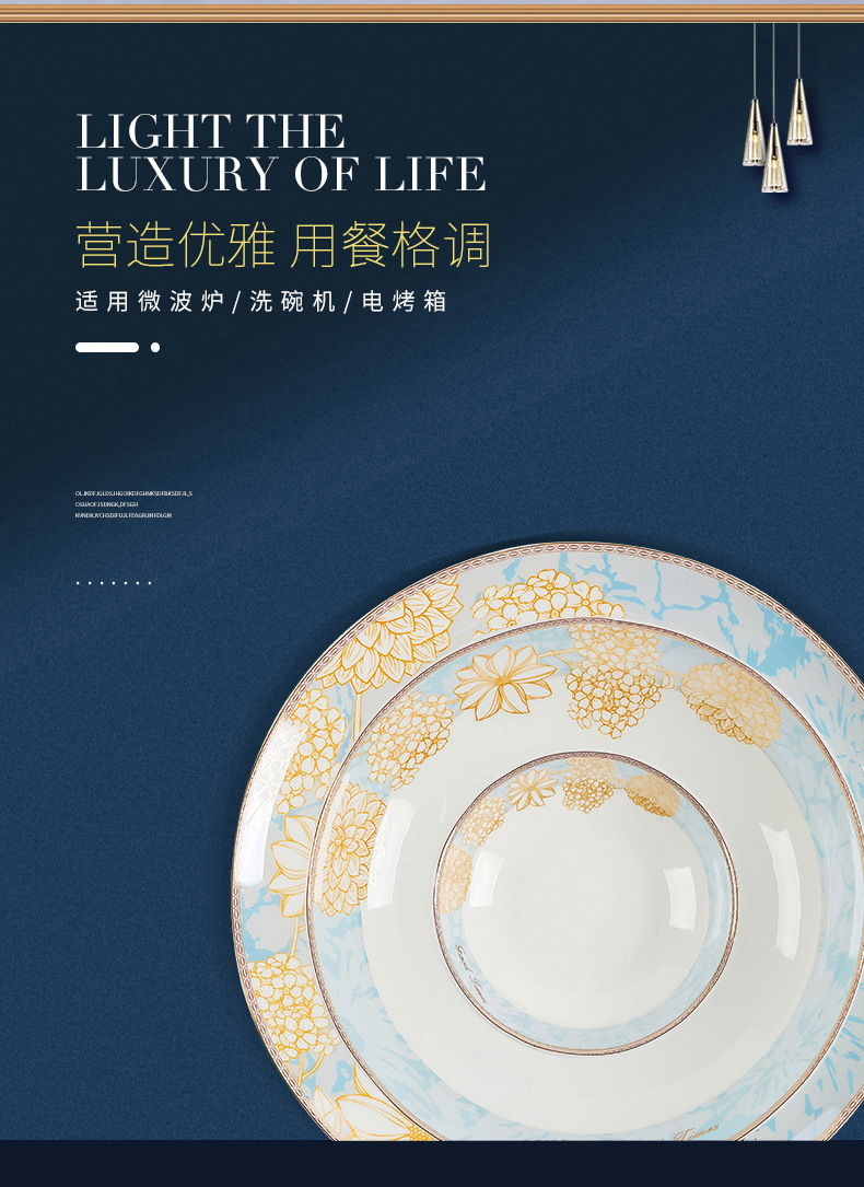 景德镇陶瓷餐具轻奢风碗碟套装家用新家乔迁碗筷欧式碗盘礼盒送礼