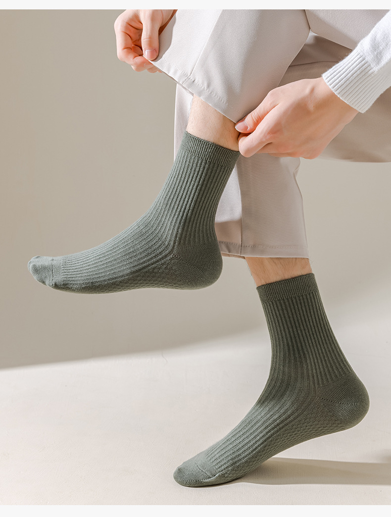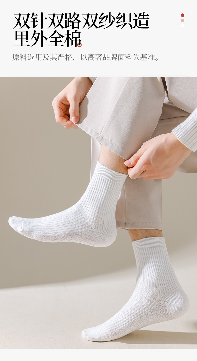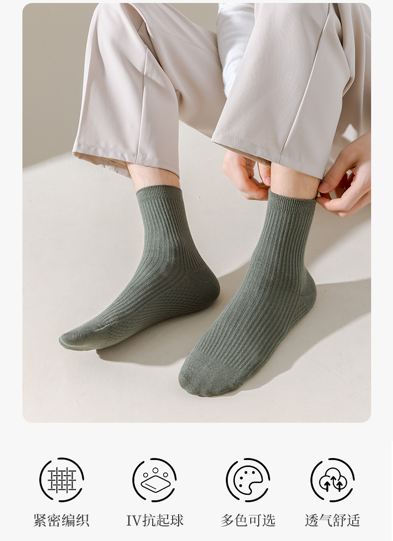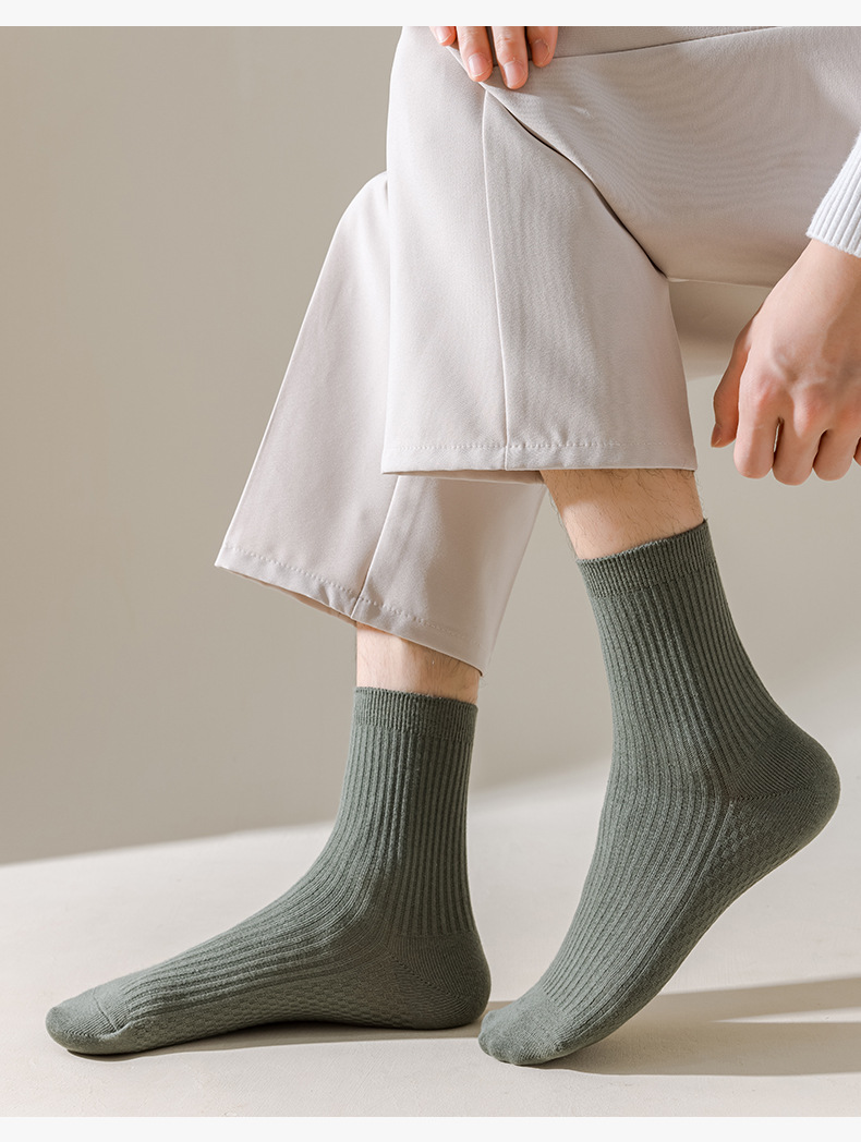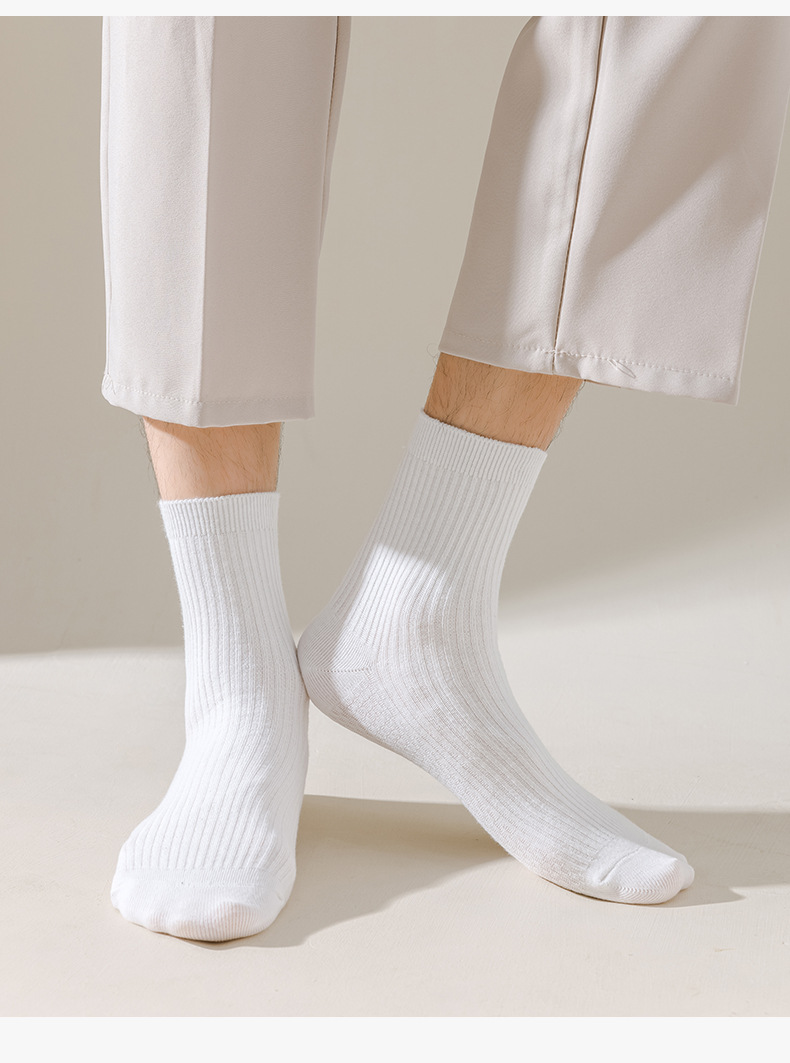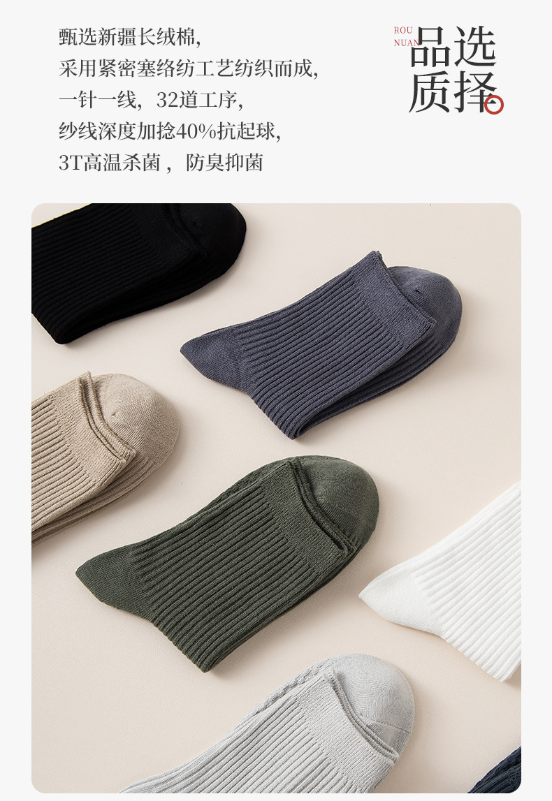 7双包邮长绒棉新款双针纯棉袜子中筒男士运动袜纯色商务袜子批发
