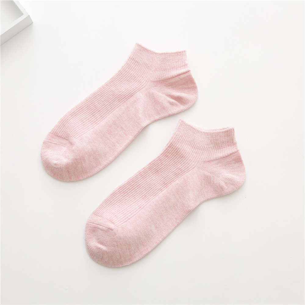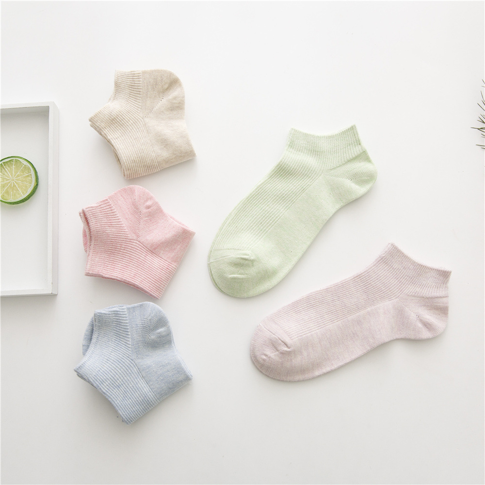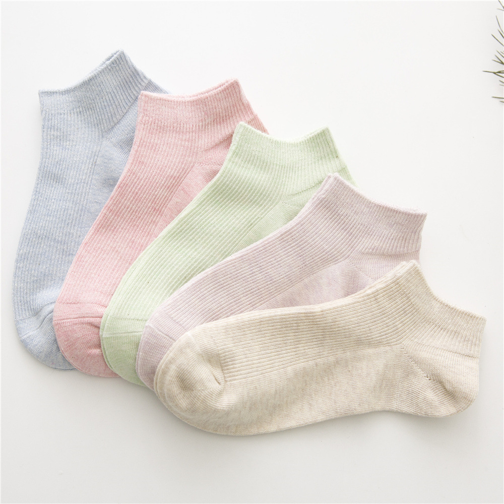 【5双】纯色双针糖果袜全棉女素色吸汗船袜隐形袜厂家袜子批发