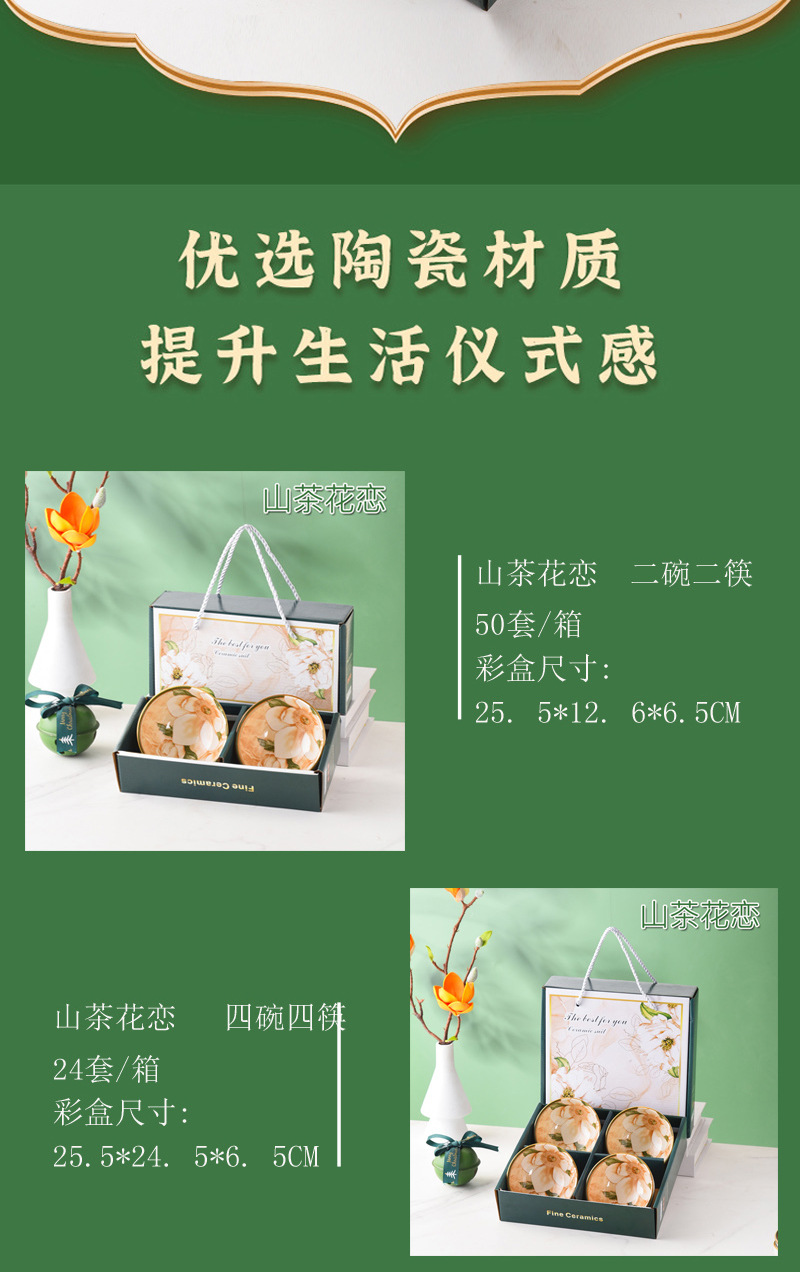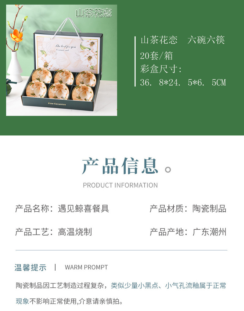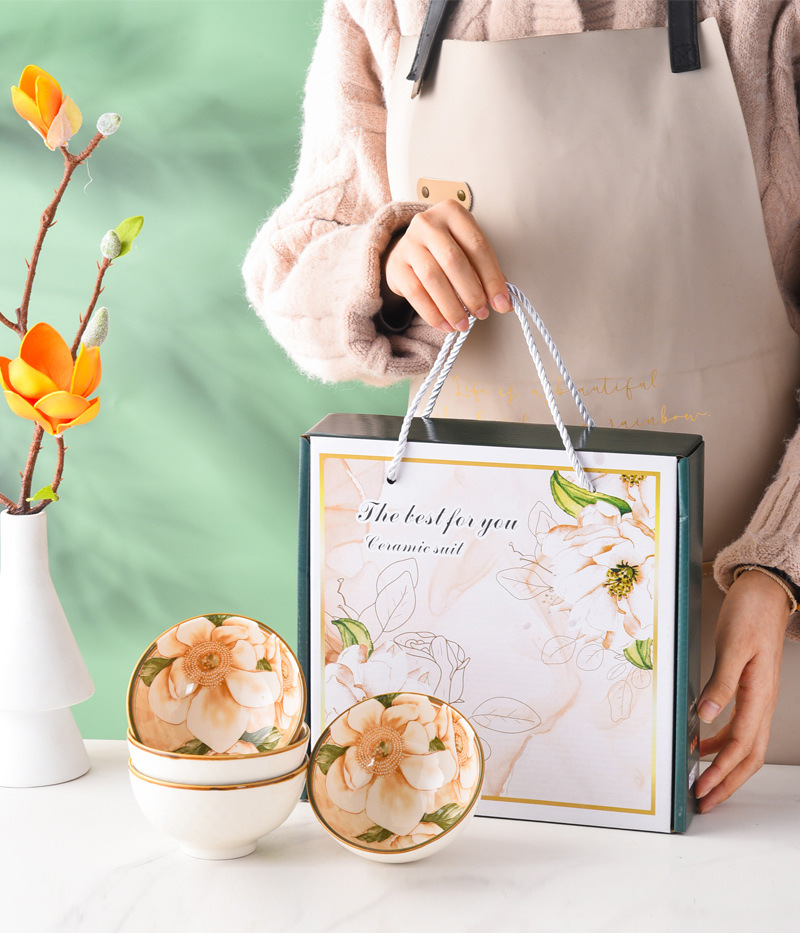 跨境清新风碗筷套装简约礼盒装高档碗盘碟陶瓷碗餐具实用礼品批发