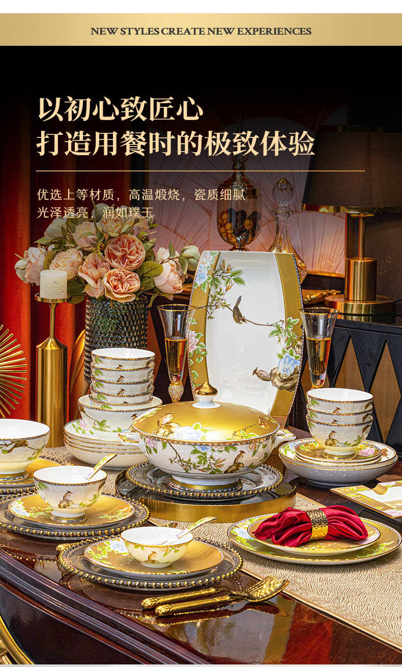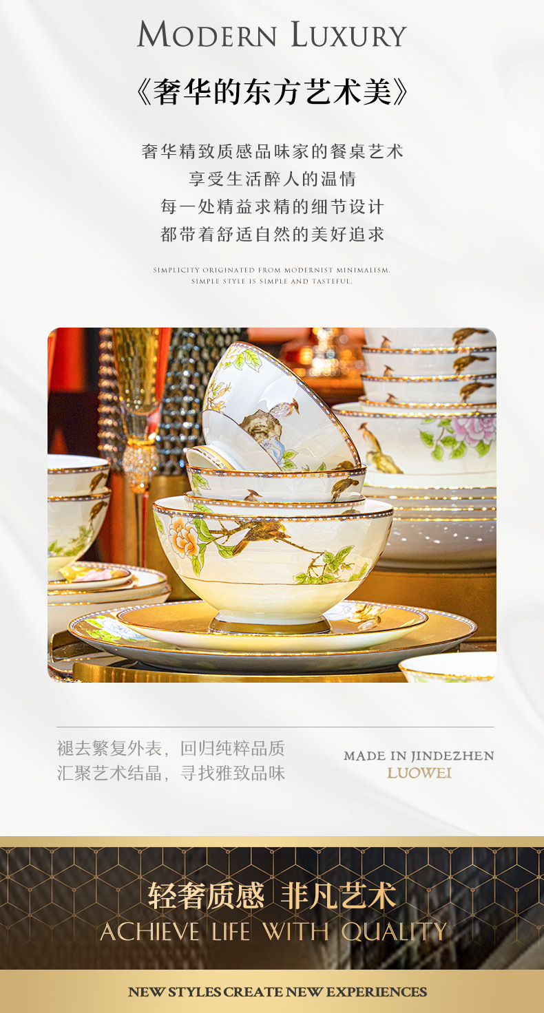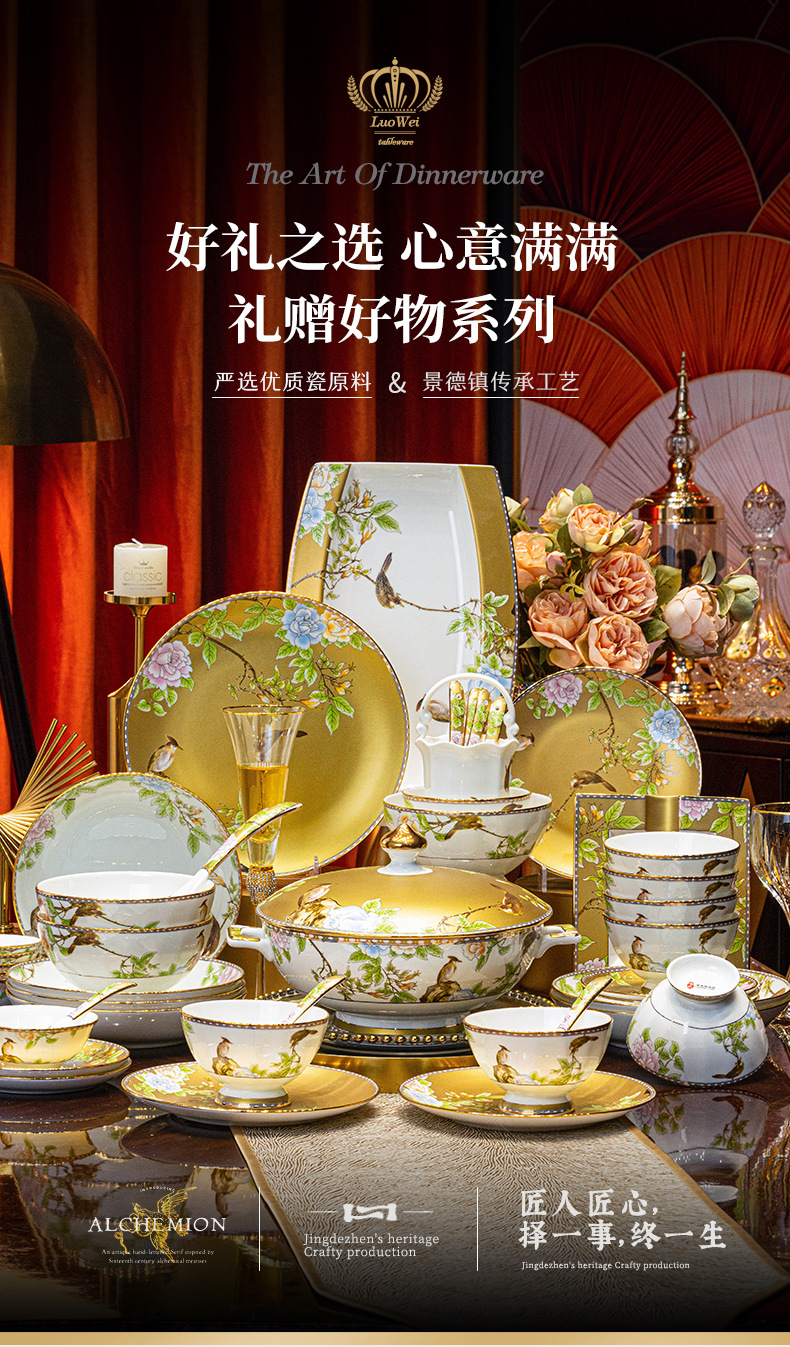 景德镇骨瓷餐具定制礼品套装碗碟盘家用中式轻奢乔迁新居新婚礼物