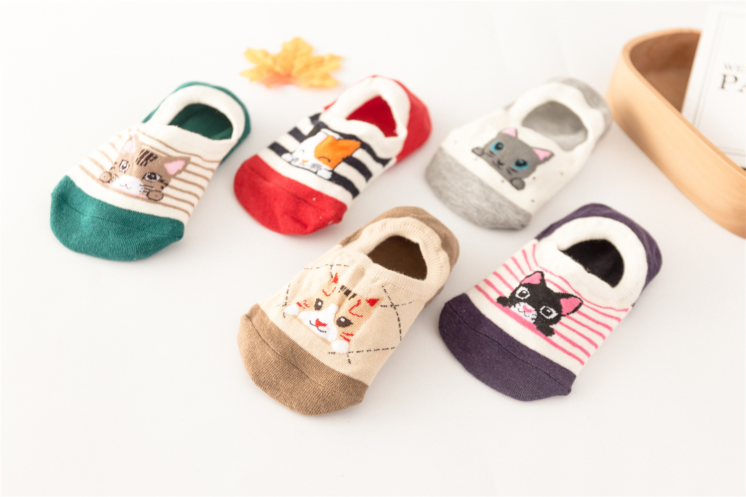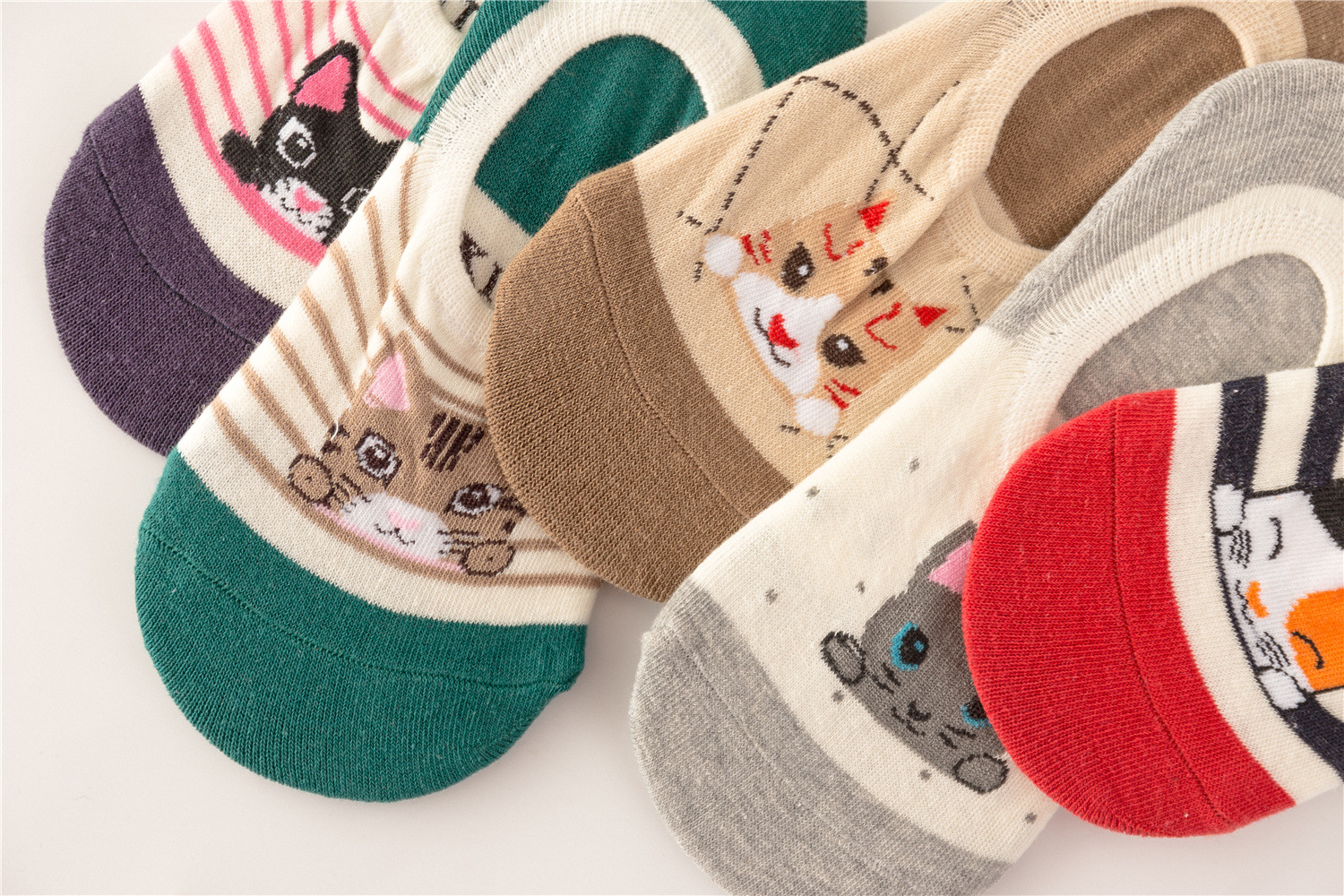 【5双包邮】全棉防臭隐形猫咪透气可爱日系夏季女士袜子批发厂家
